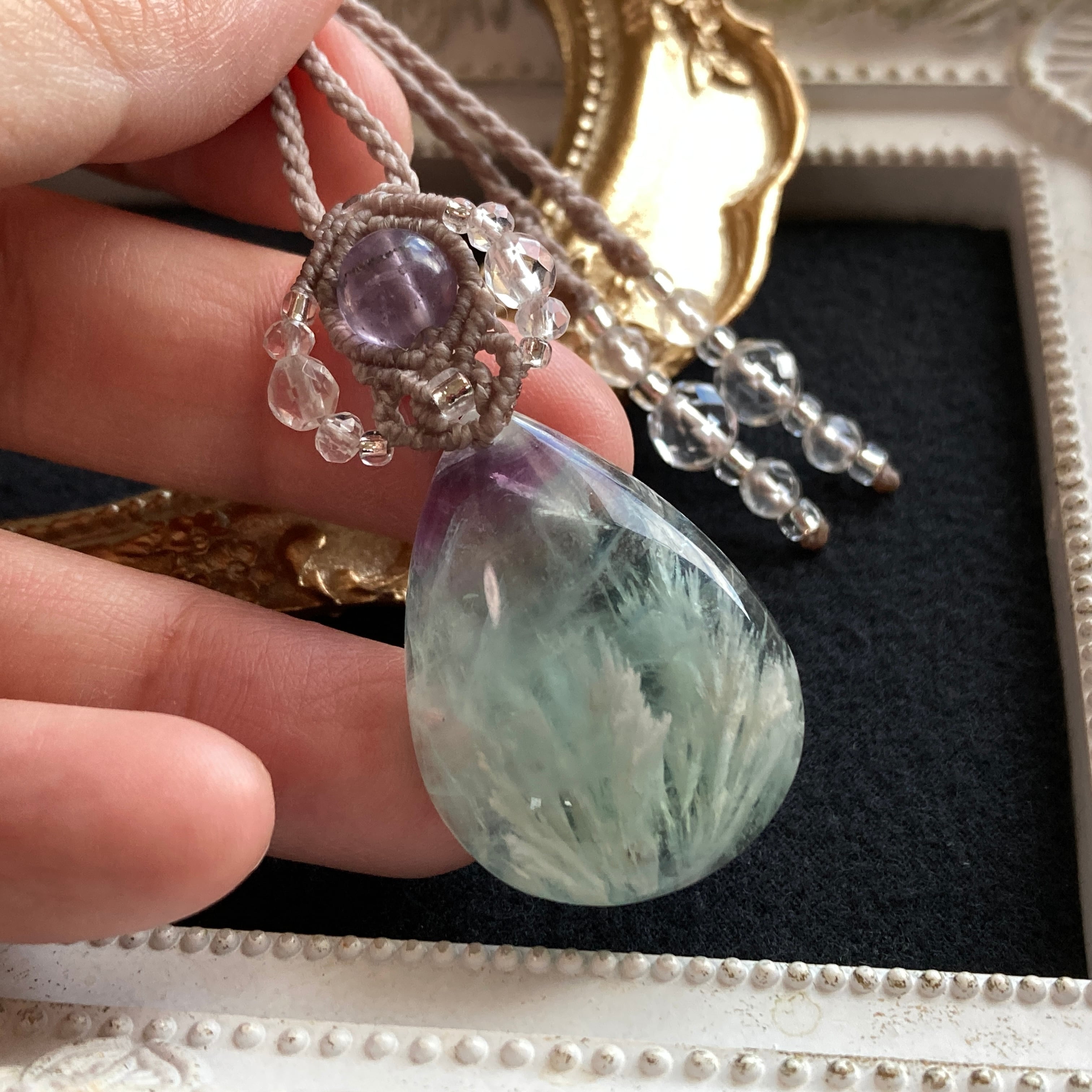 【エンジェルフェザーインフローライト マクラメネックレス】