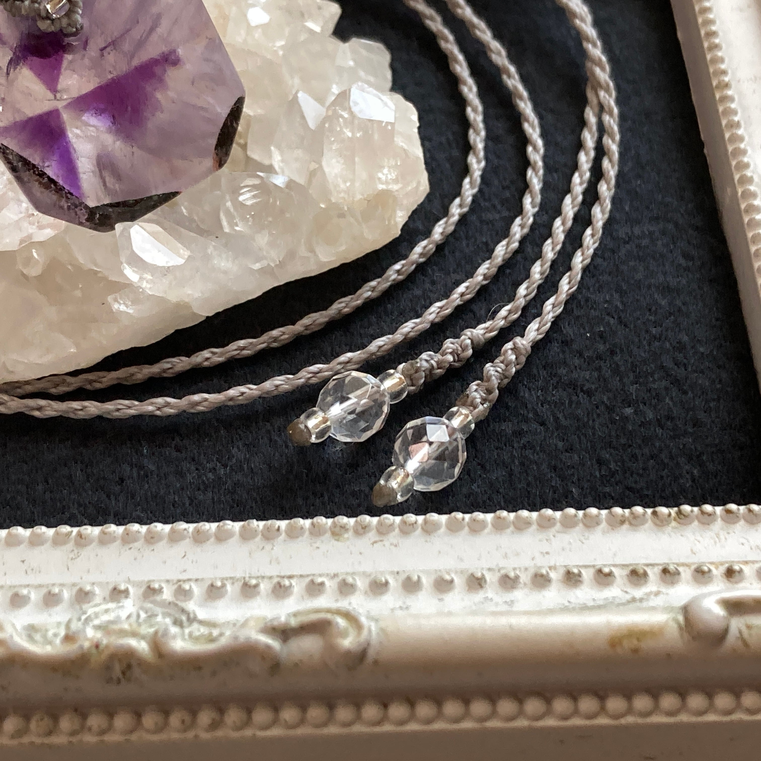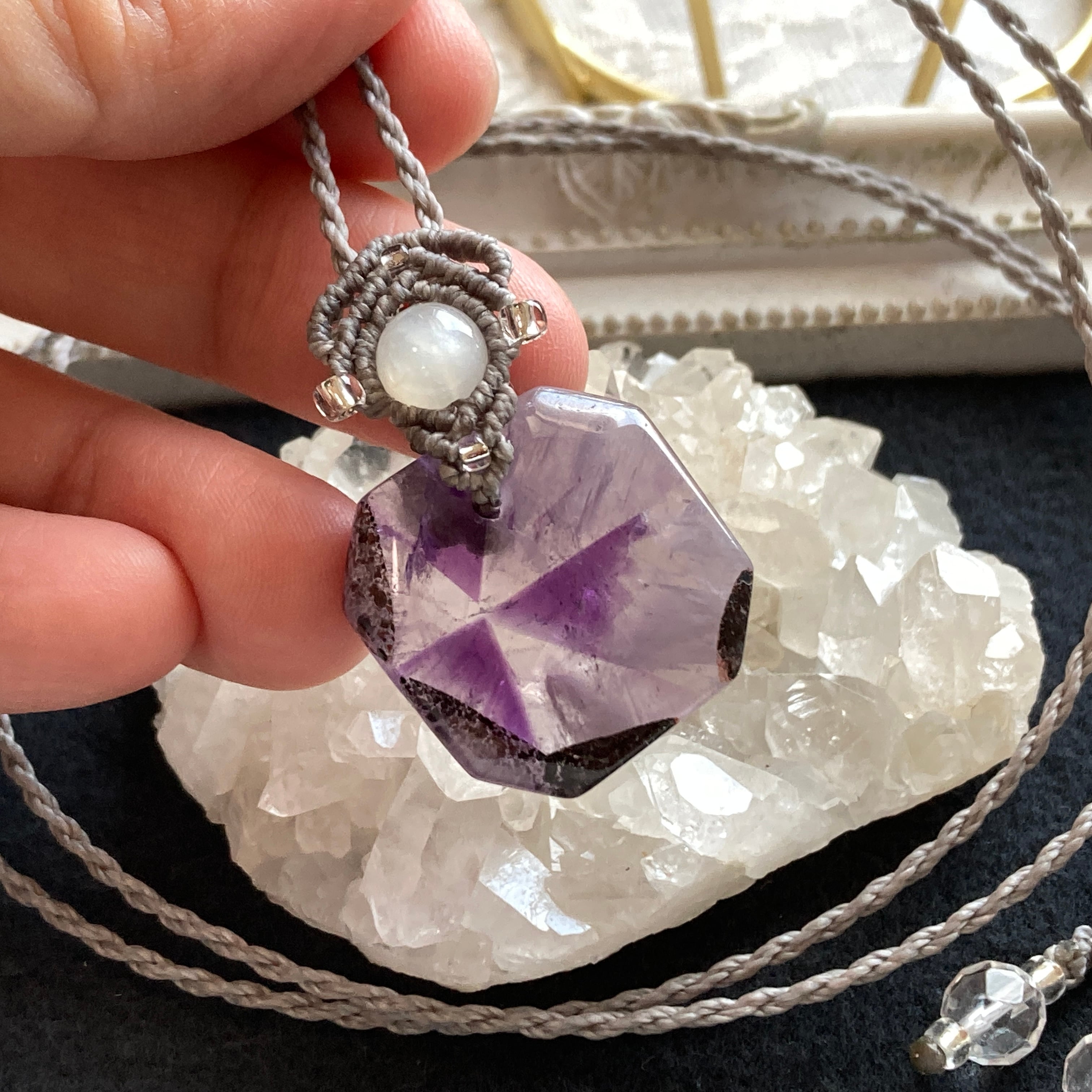 【Masquerade *Petit*】アメジスト(トラピッチェ模様) マクラメ編みネックレス
