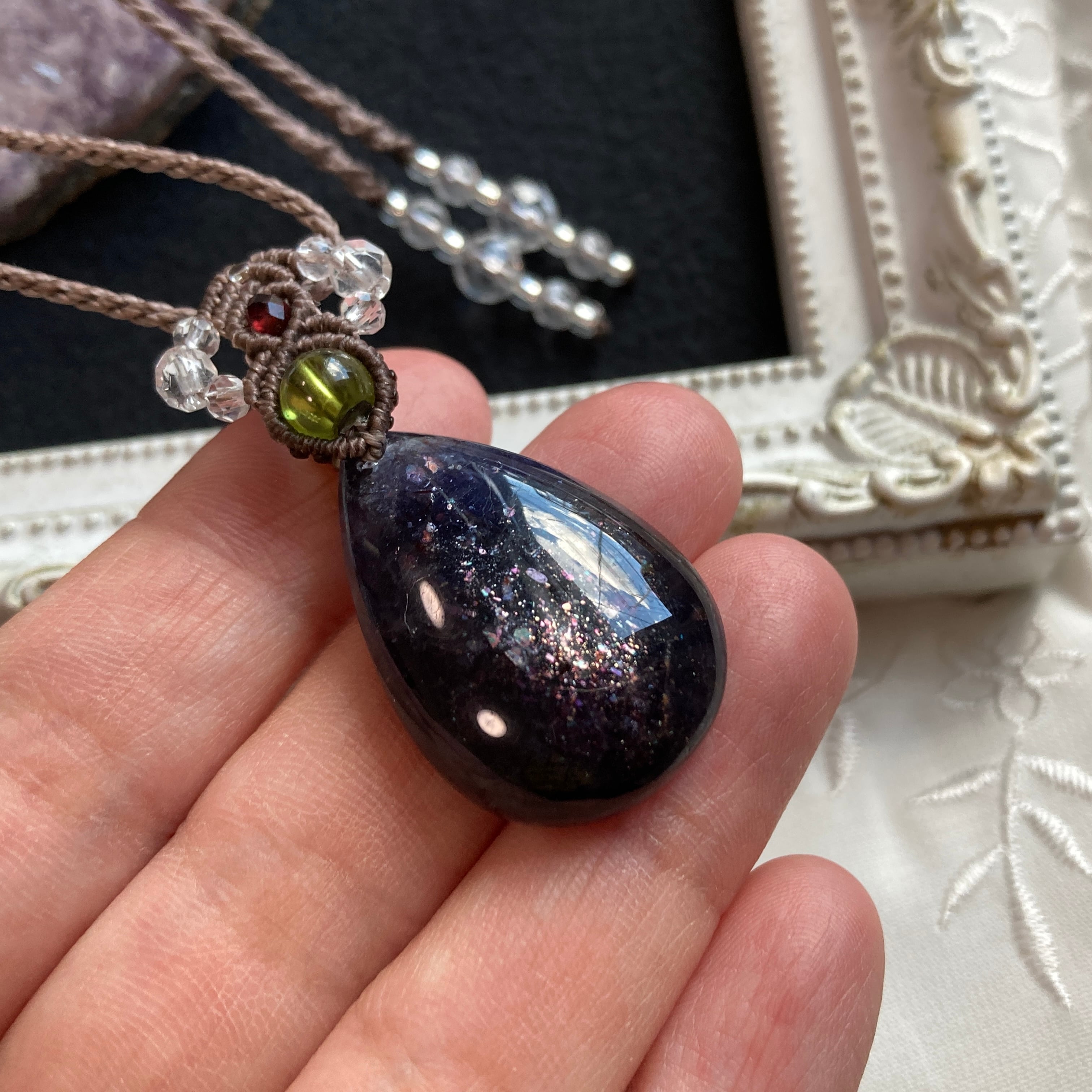 アイオライトサンストーン マクラメネックレス 金属アレルギー対応 ネックレス