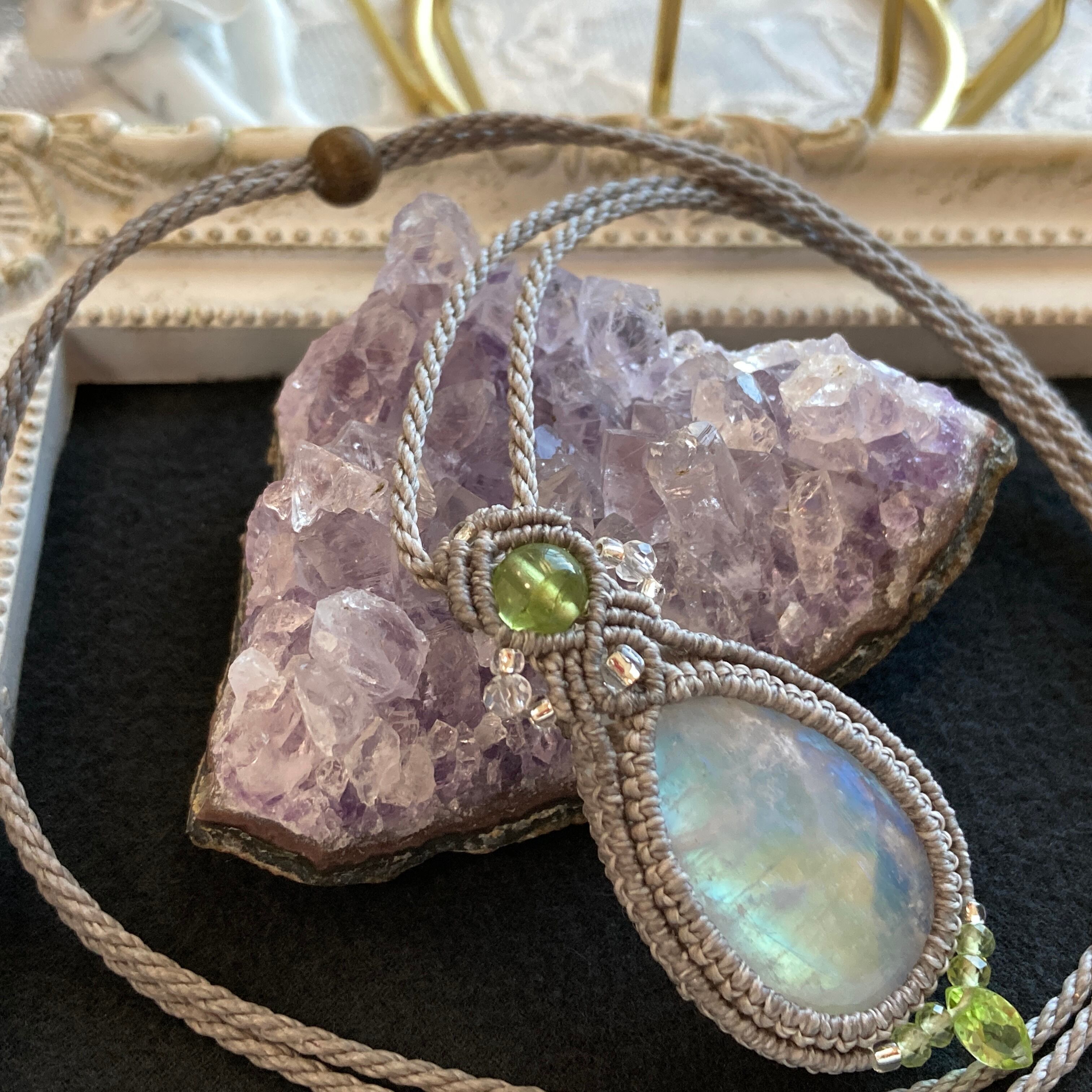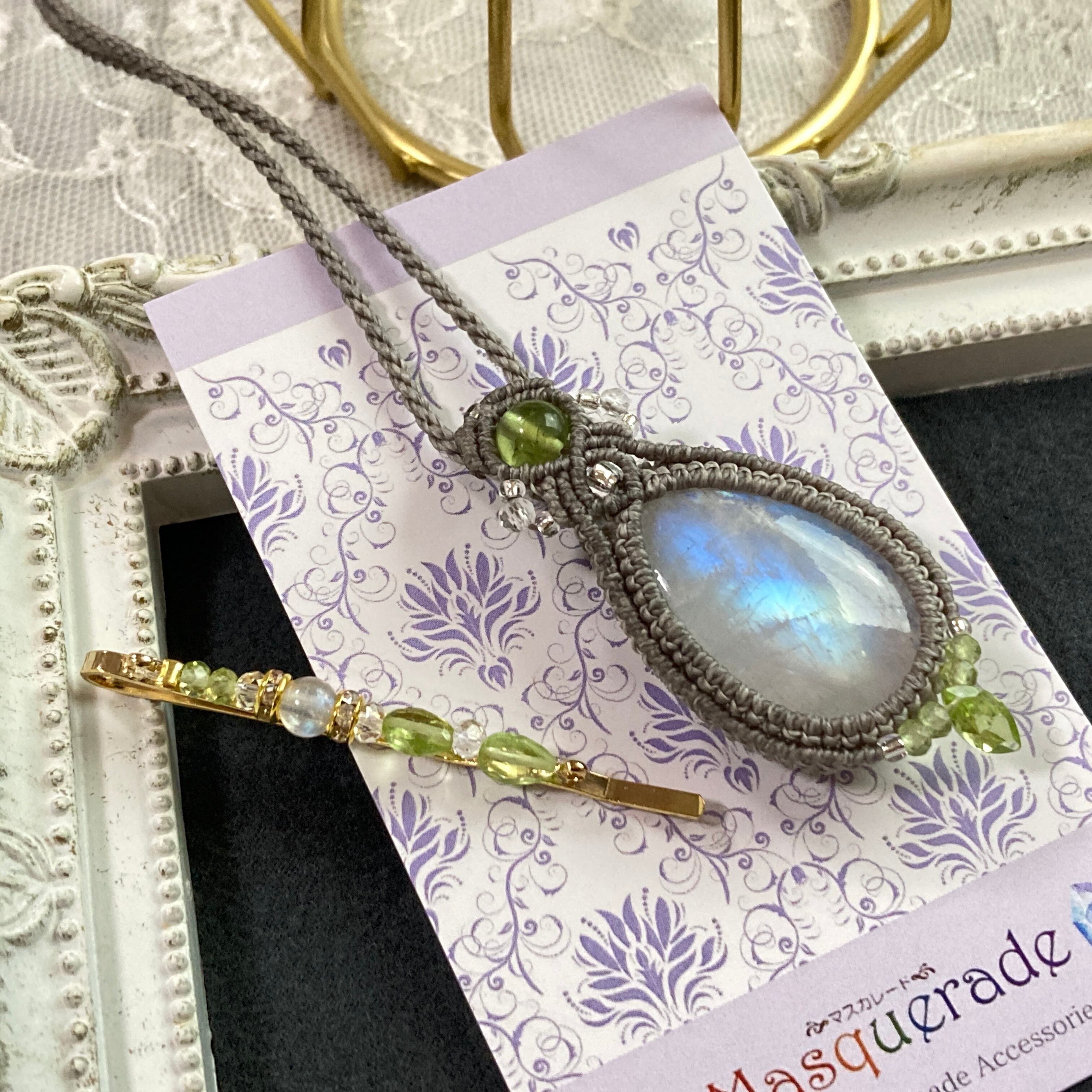 【8月誕生石】ペリドット×レインボームーンストーン ネックレス Masquerade Birthstone Collection