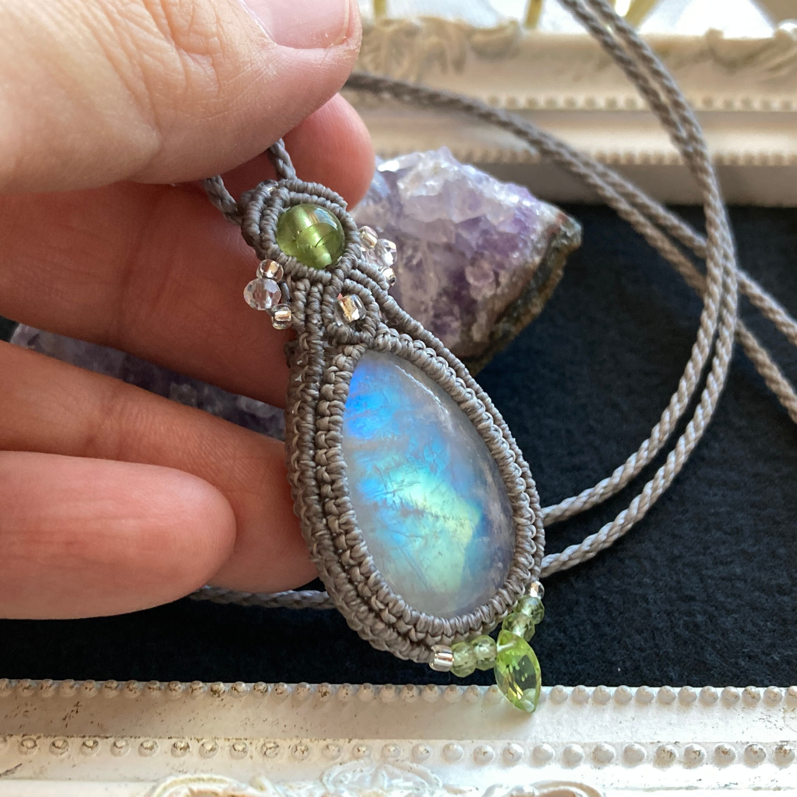 ※こちらの商品はペンダントトップに、マクラメ編みの首紐をおつけしており、