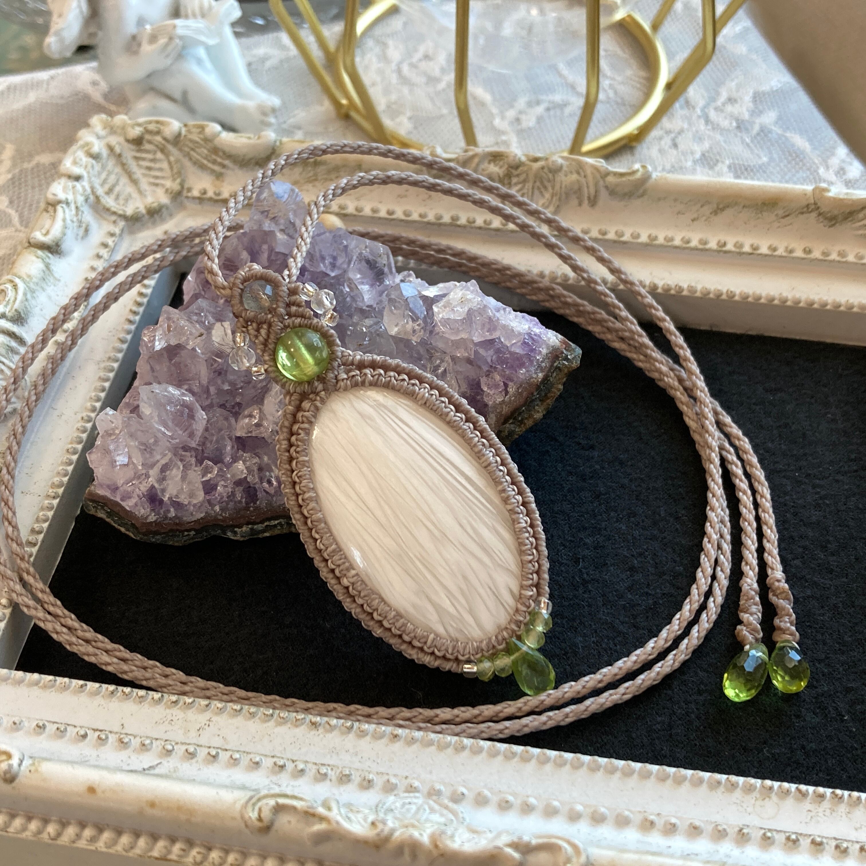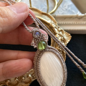 ※こちらの商品はペンダントトップに、マクラメ編みの首紐をおつけしており、