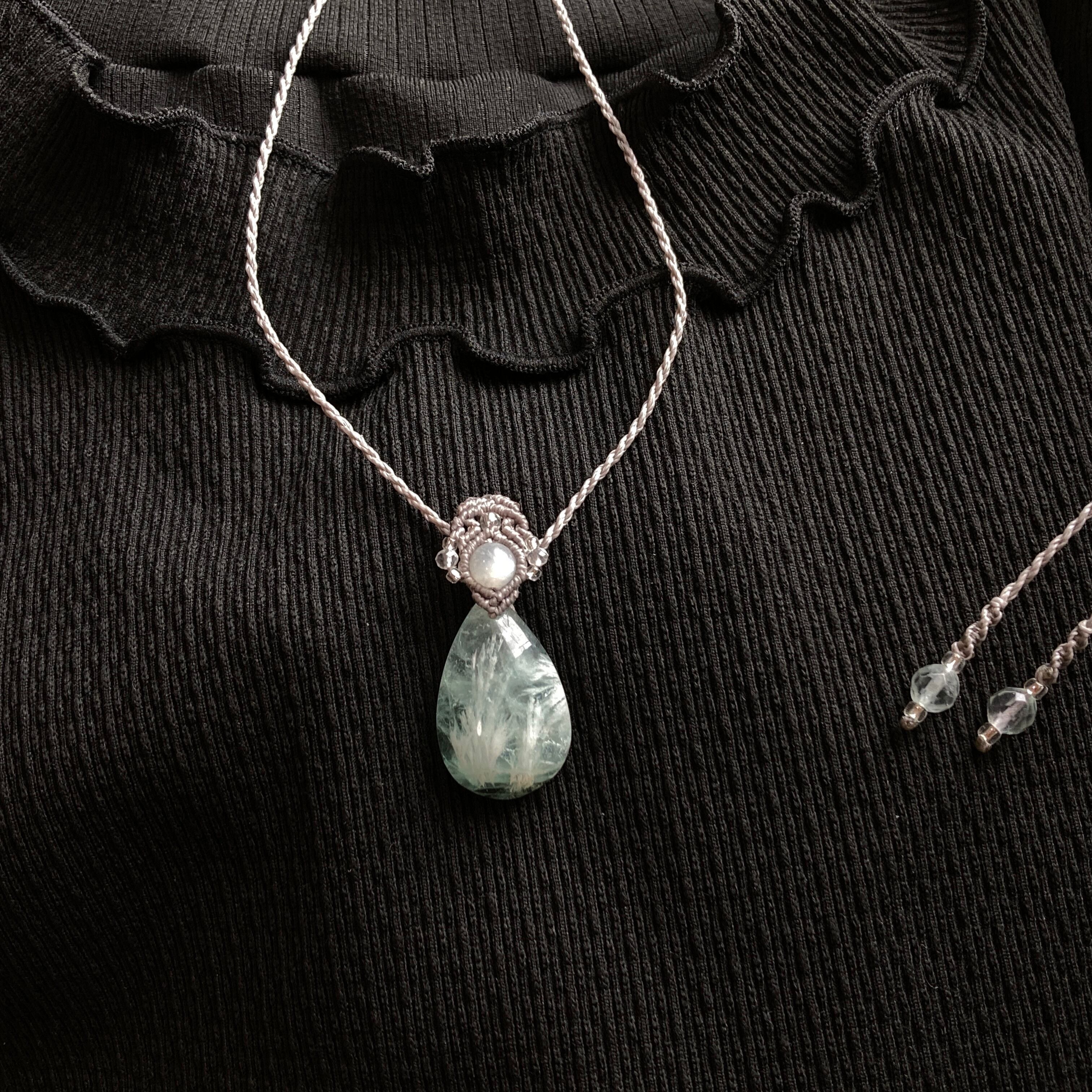 【Masquerade *Petit*】エンジェルフェザーフローライト マクラメ編みネックレス