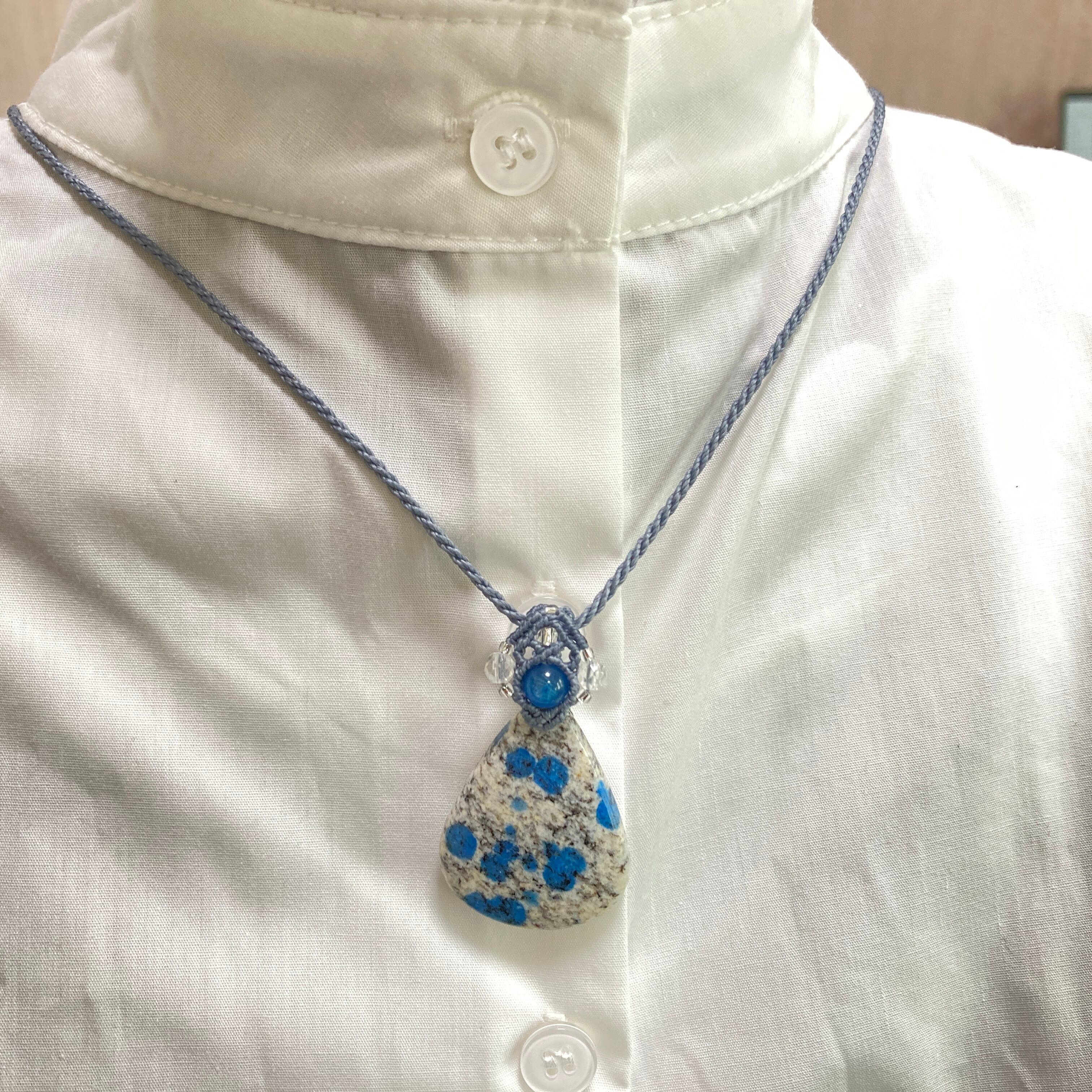 K2ストーン(アズライトイングラナイト)マクラメネックレス 金属アレルギー対応 ネックレス
