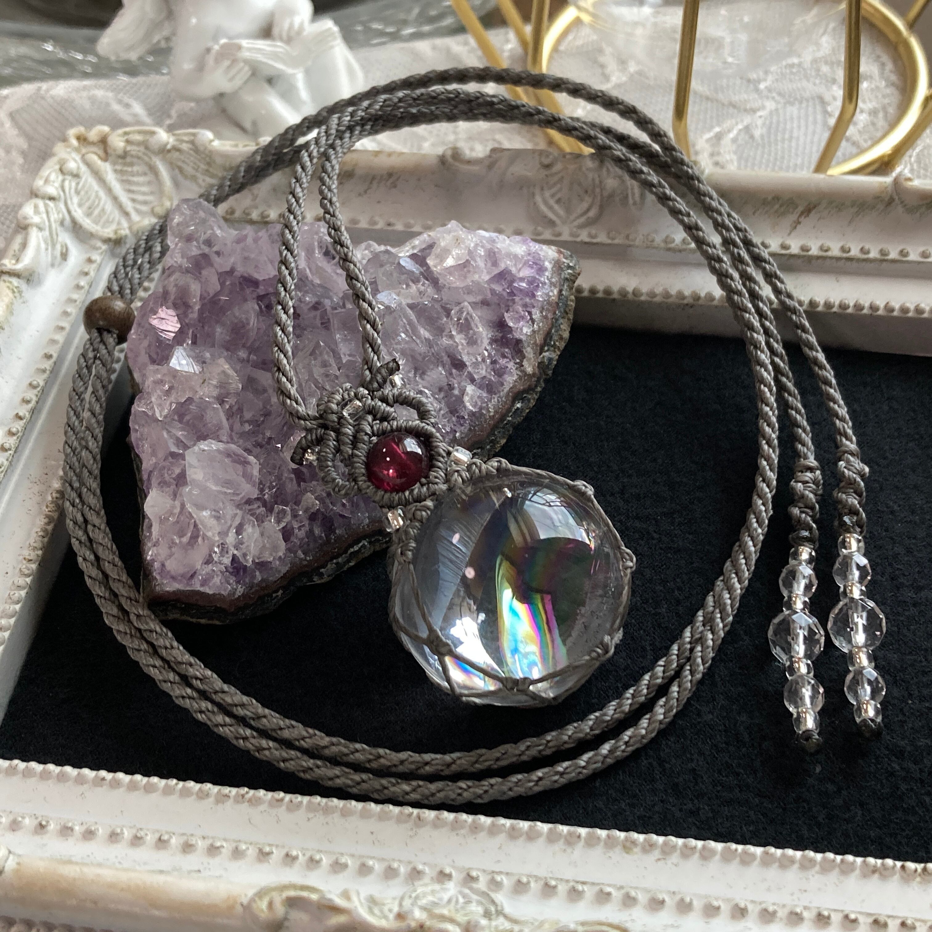 アイリスクォーツ(虹入り水晶) 天然石マクラメ編みネックレス