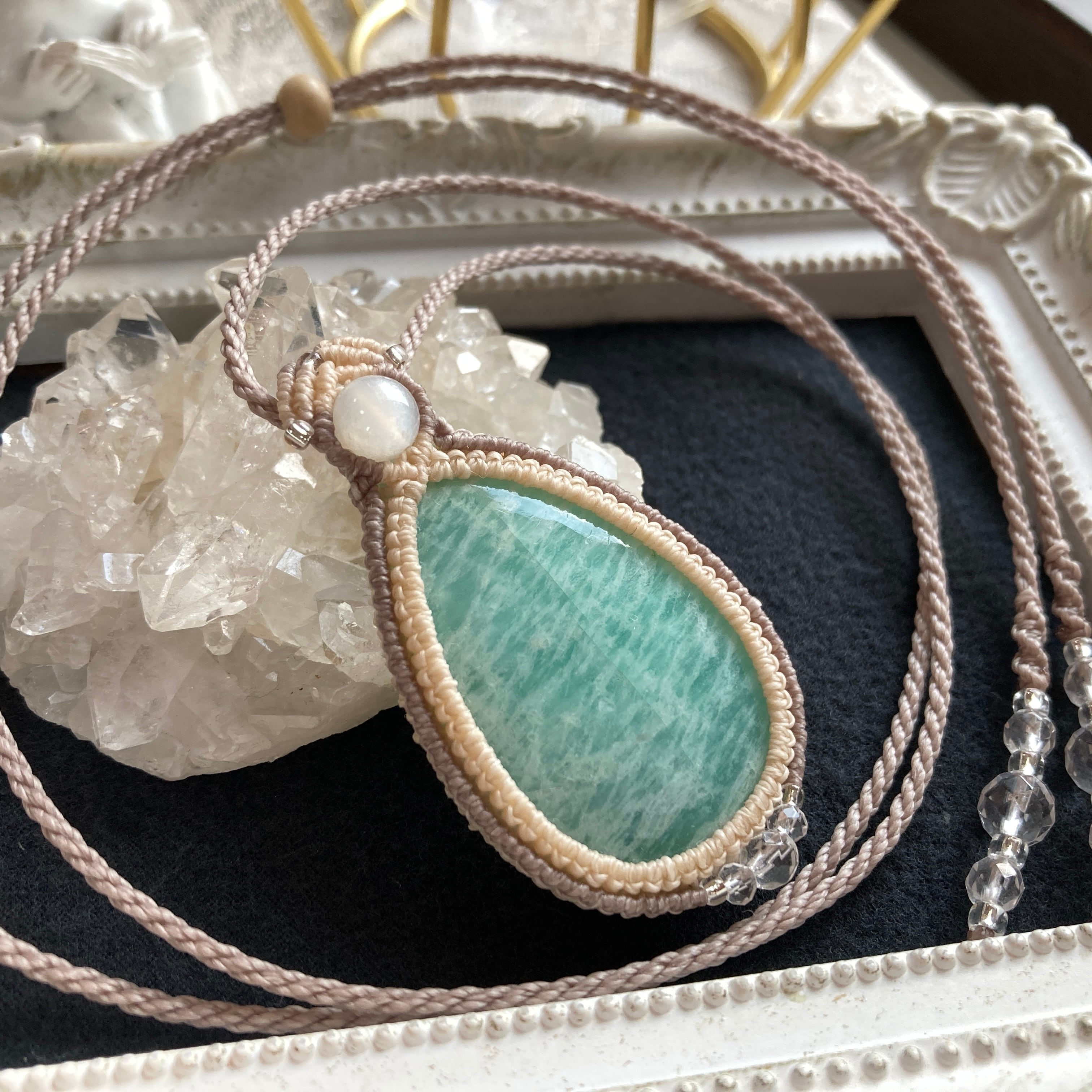 シャイニーアマゾナイト(ライトカラー)マクラメネックレス 金属アレルギー対応 ネックレス
