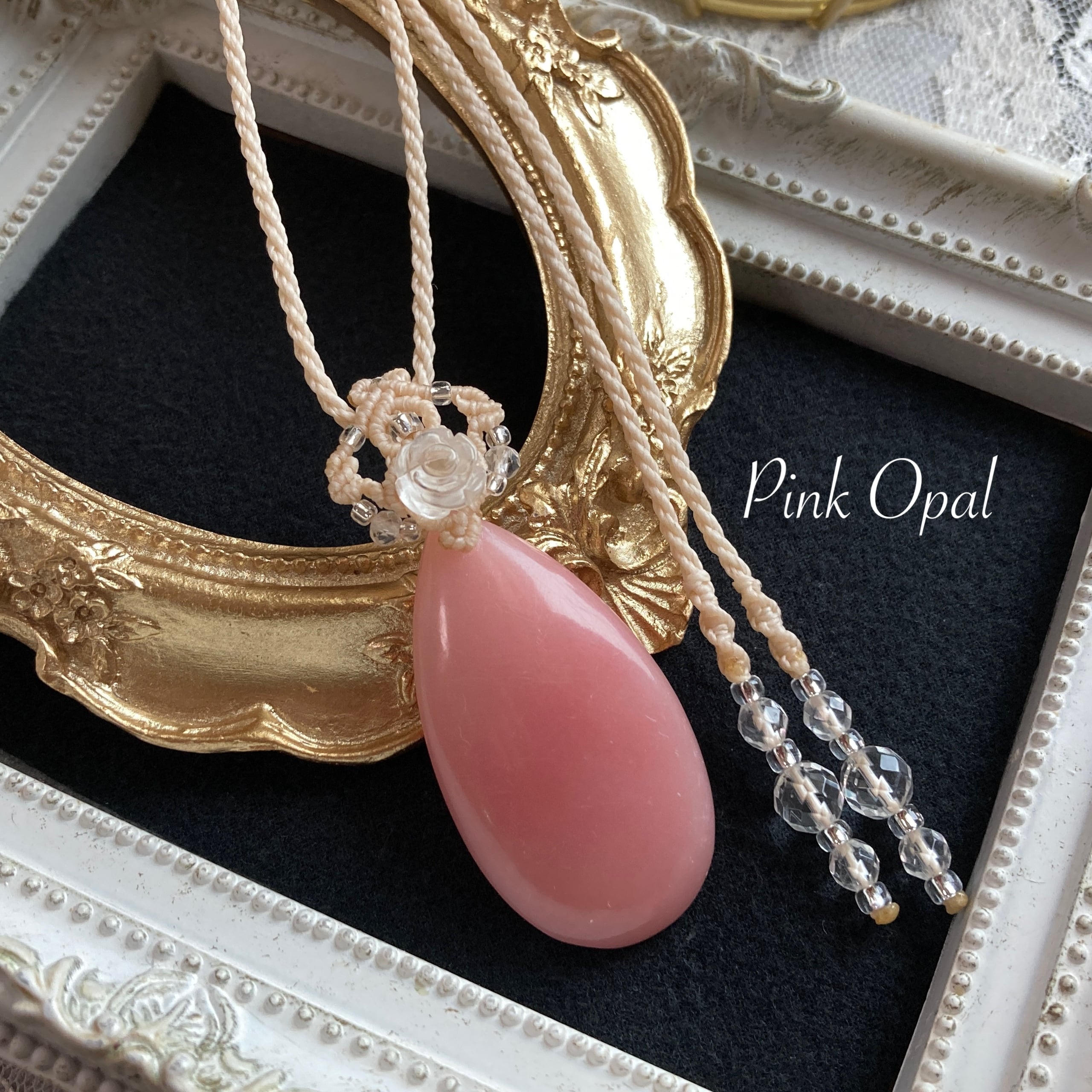 ペルー産☆ピンクオパール マクラメネックレス 金属アレルギー対応 ネックレス