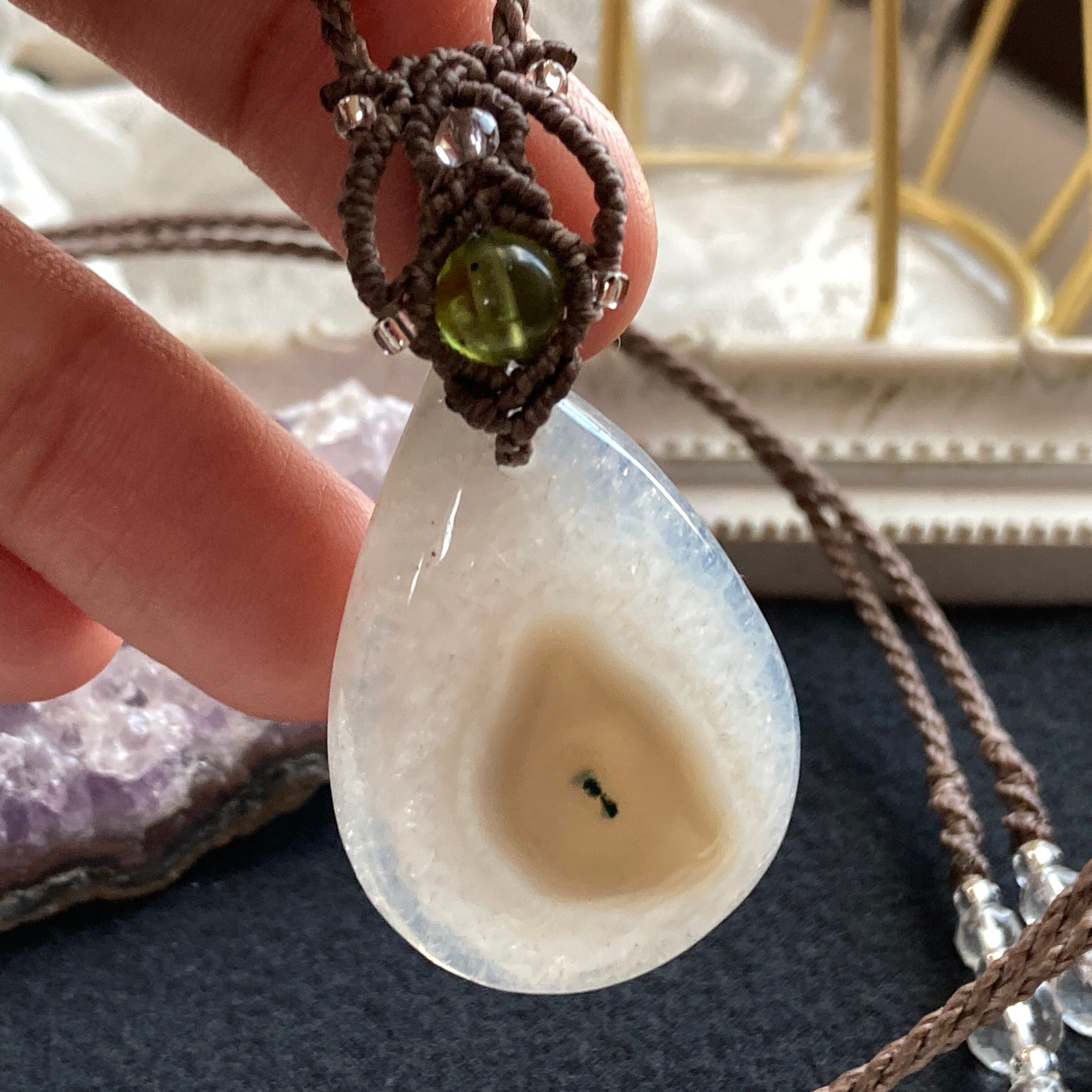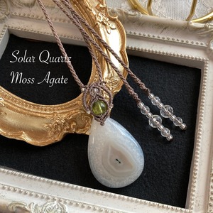 ソーラークォーツ ×モスアゲート マクラメネックレス 金属アレルギー対応 ネックレス