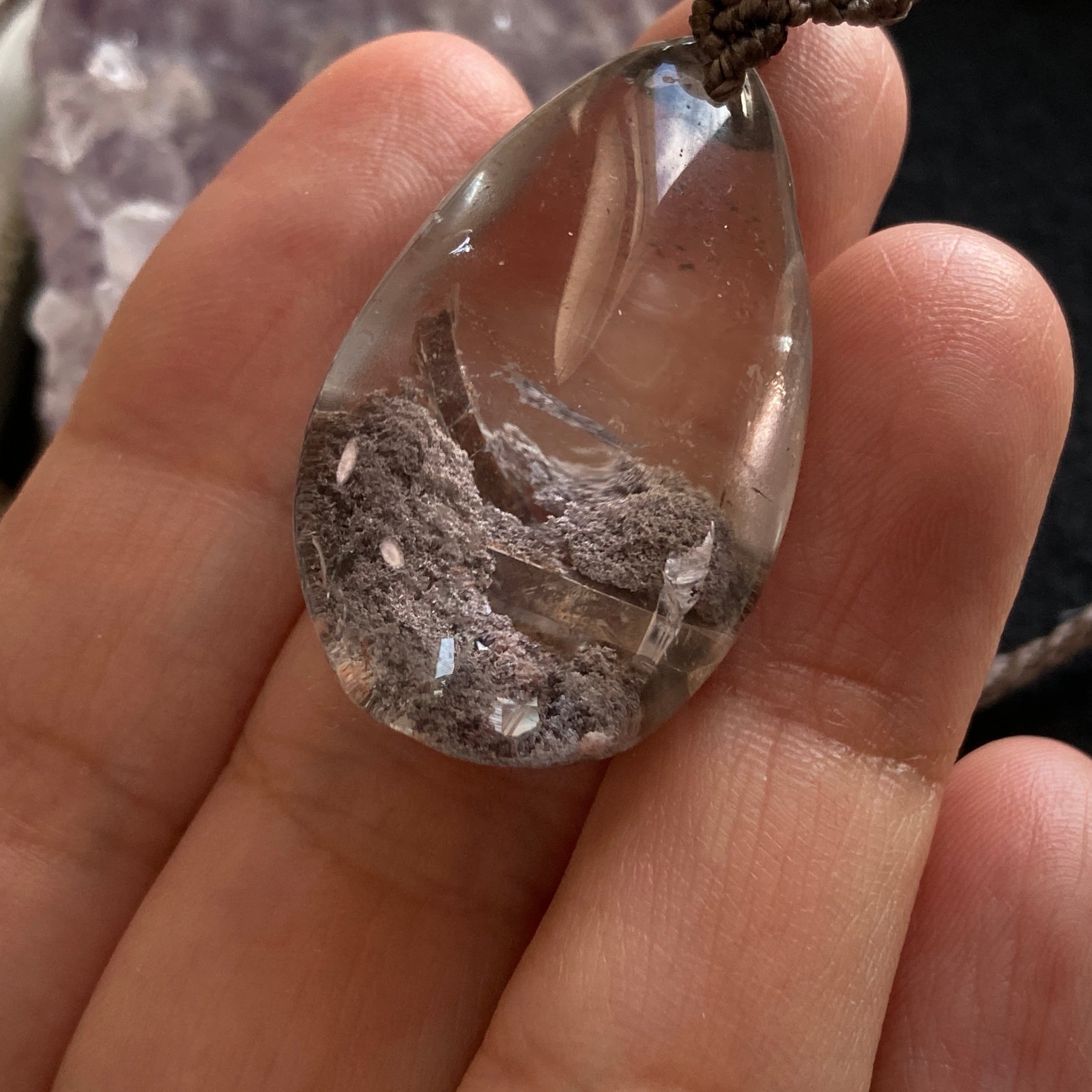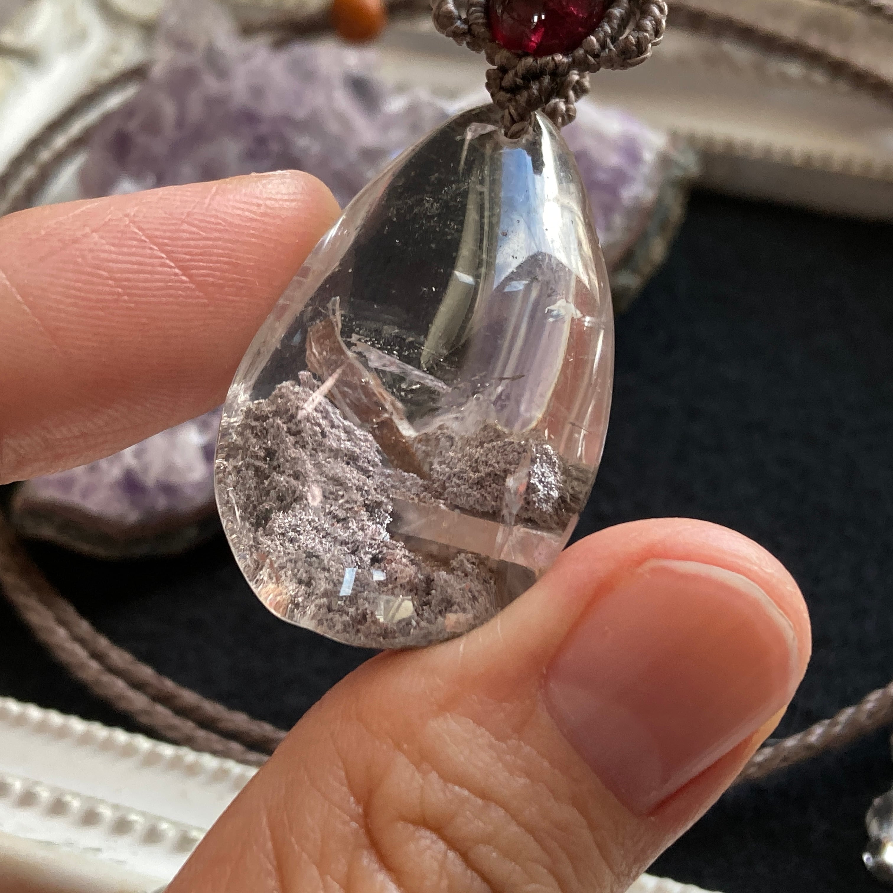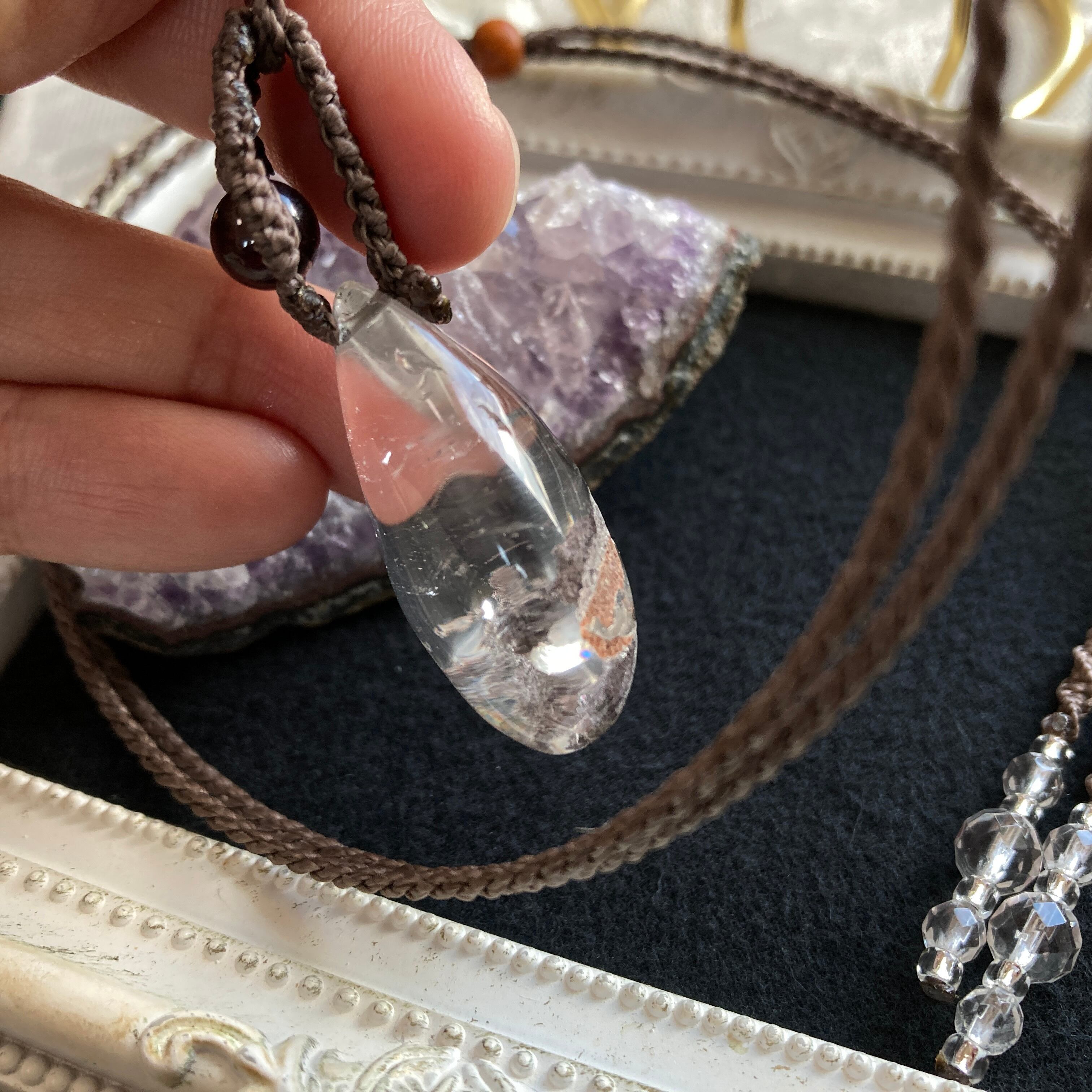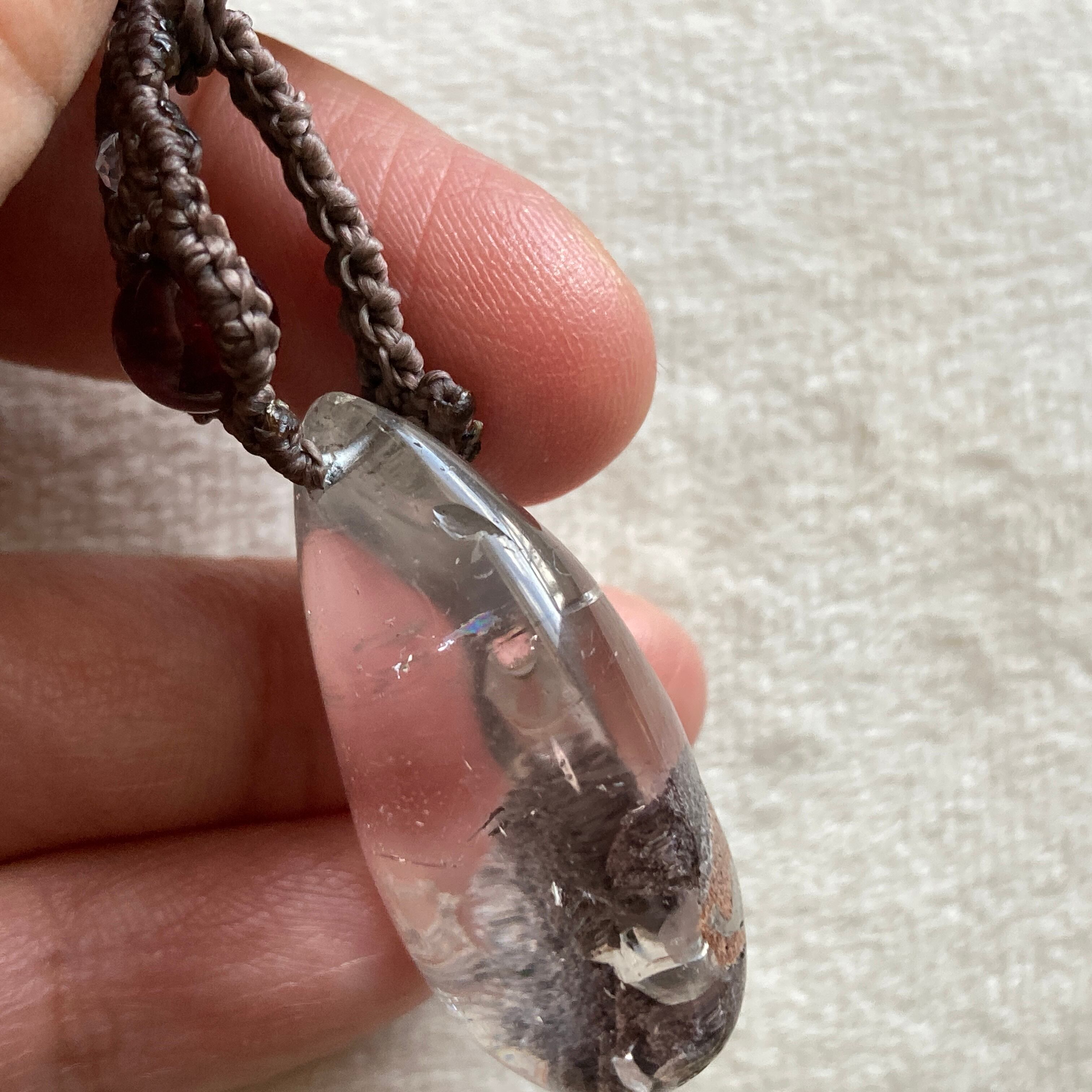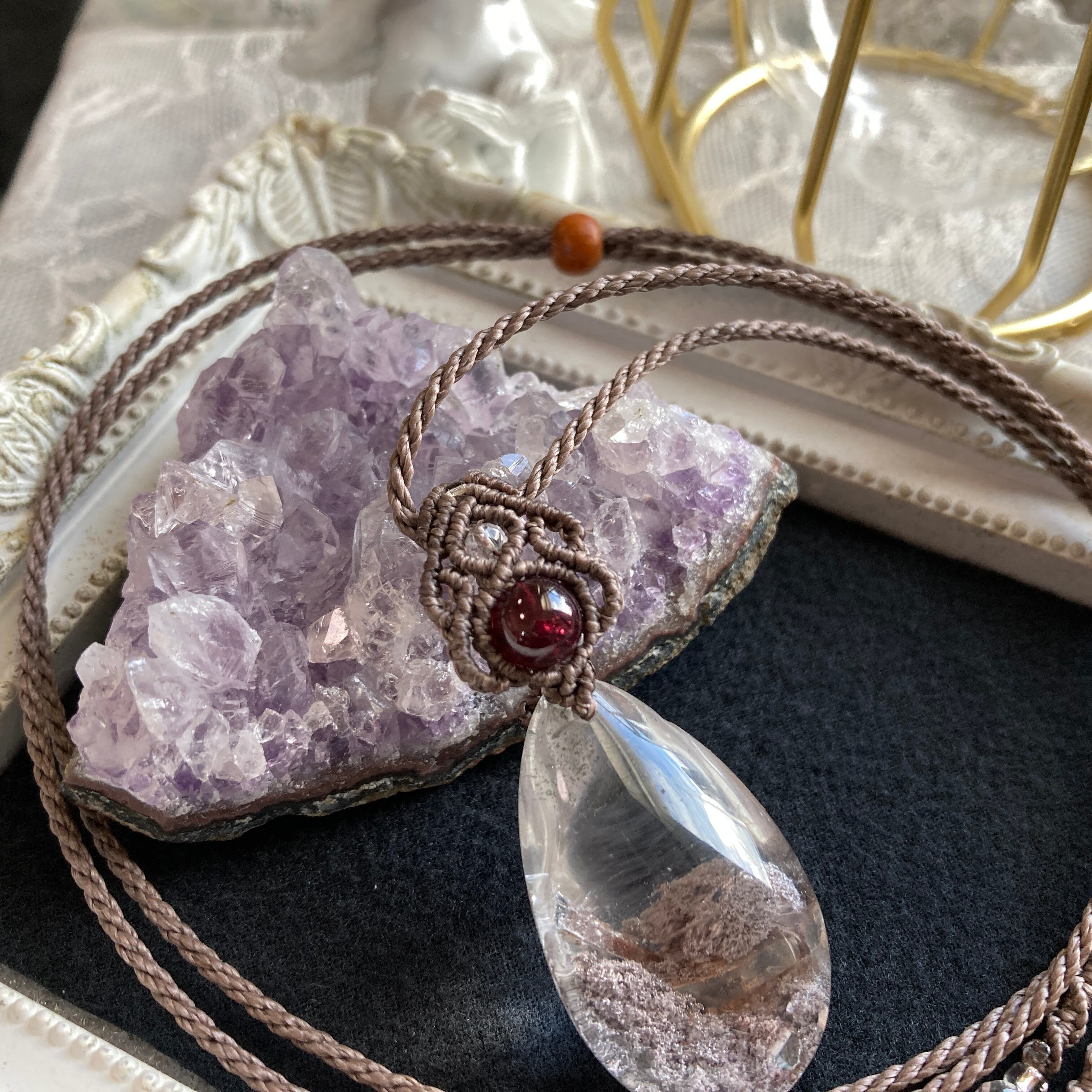 【ガーデンクォーツ×貫入水晶マクラメネックレス】