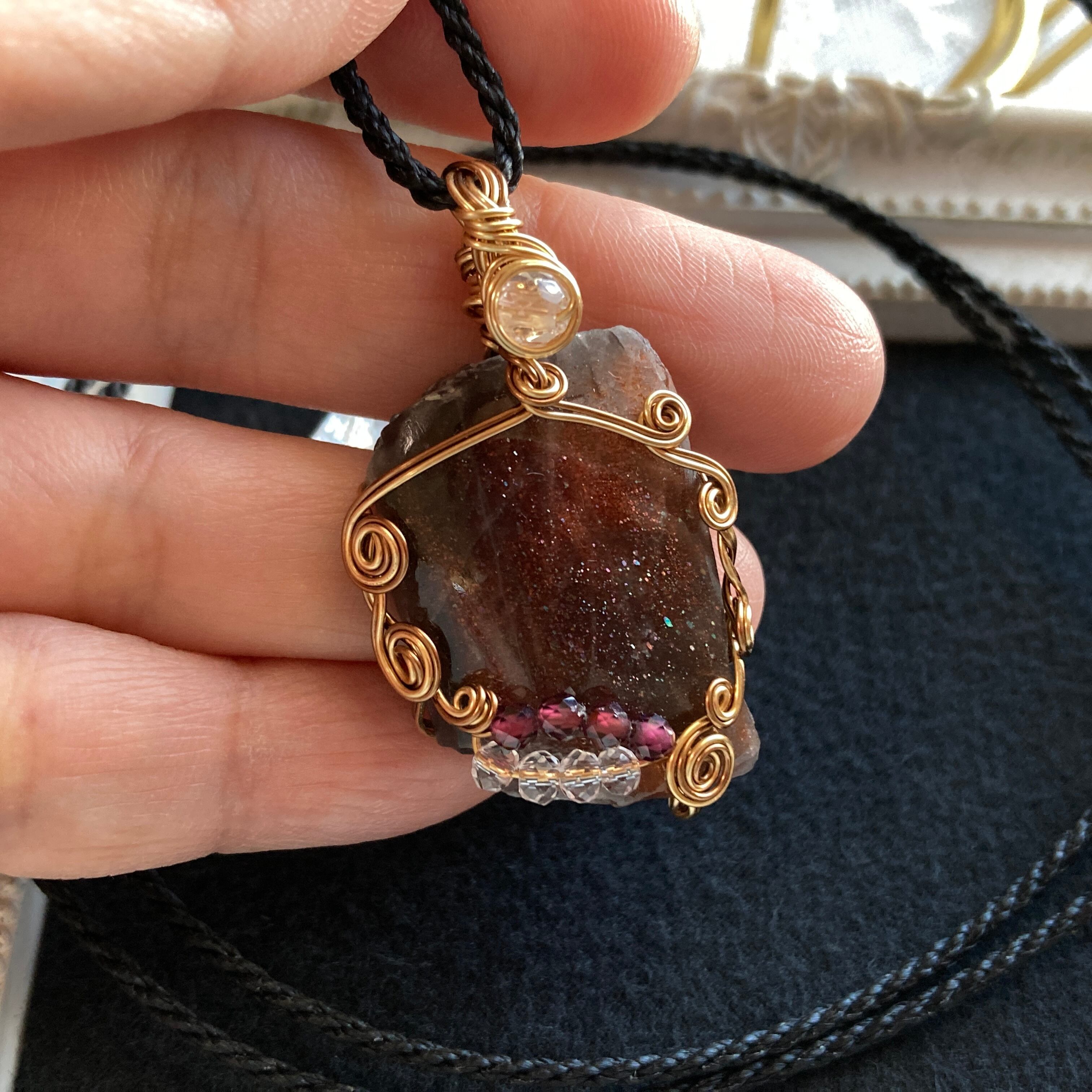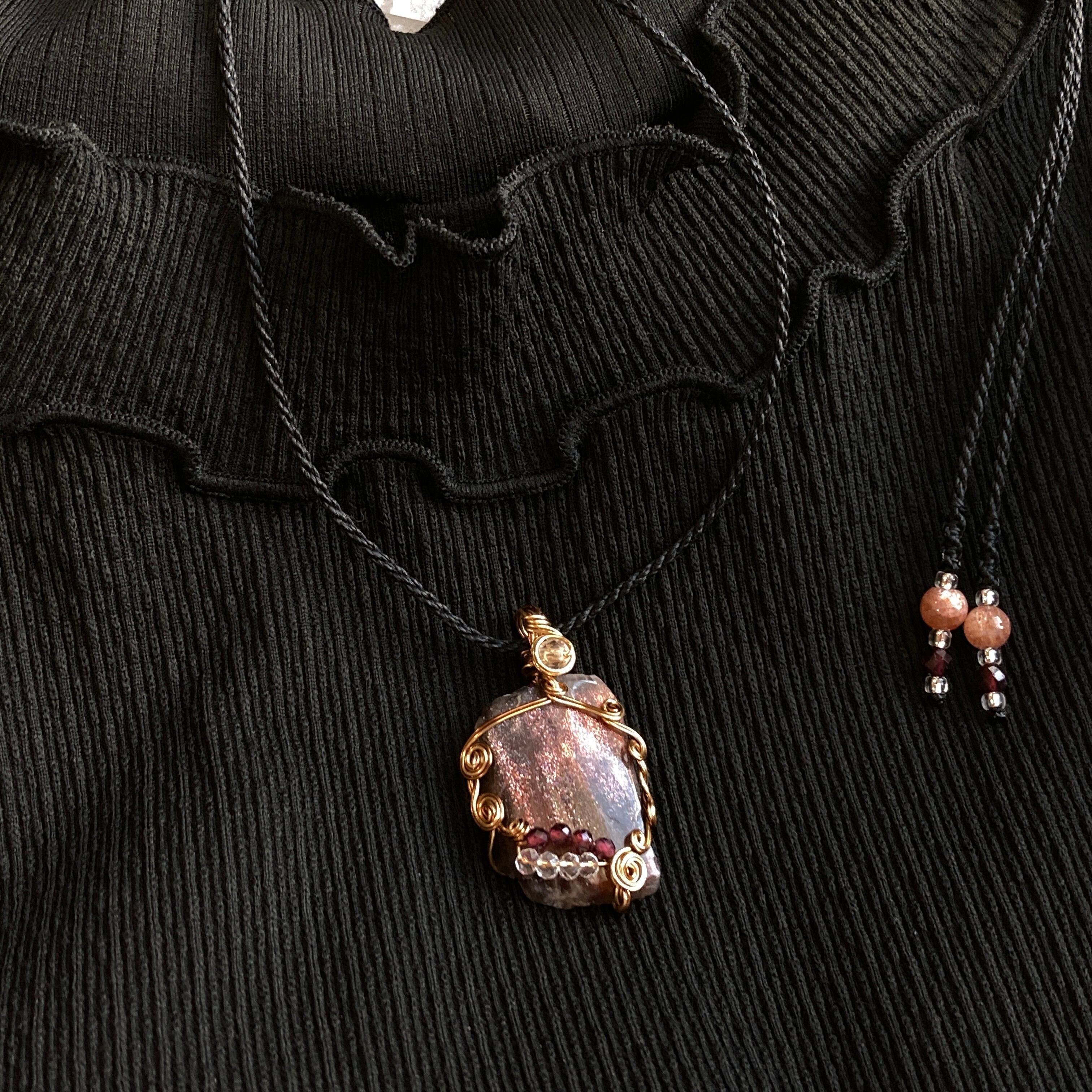 サンストーン☆スライスカット(パープルヘイズシラー)天然石ワイヤーネックレス・ワイヤーラッピングネックレス