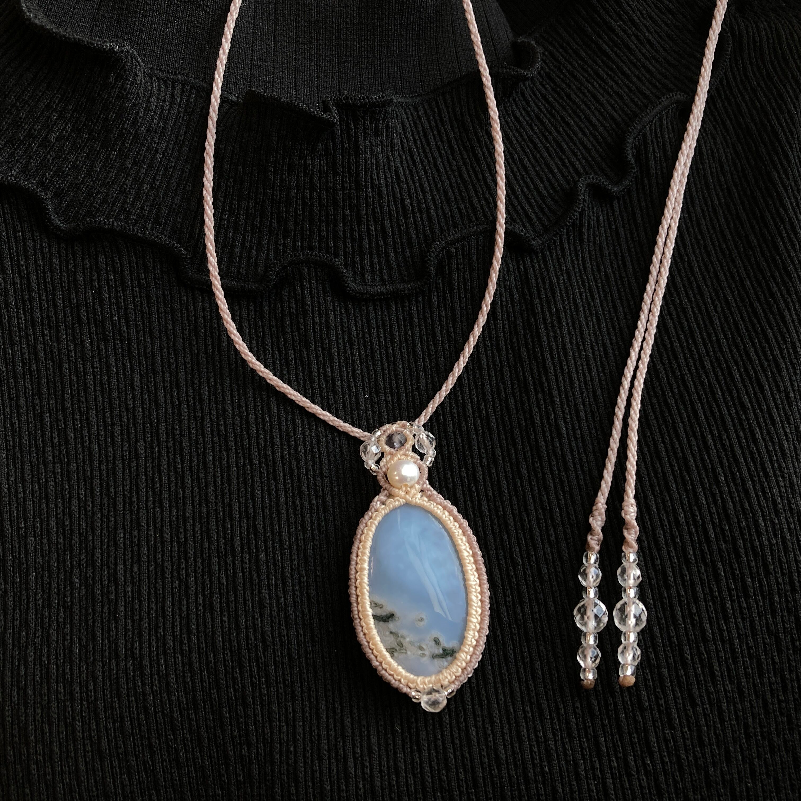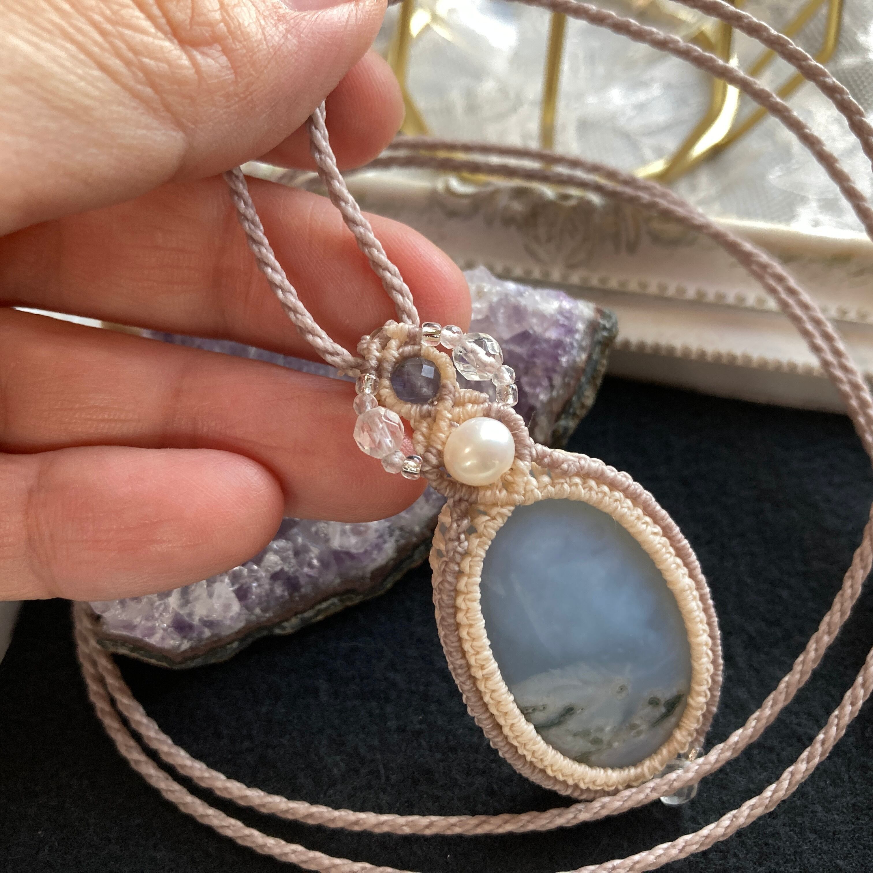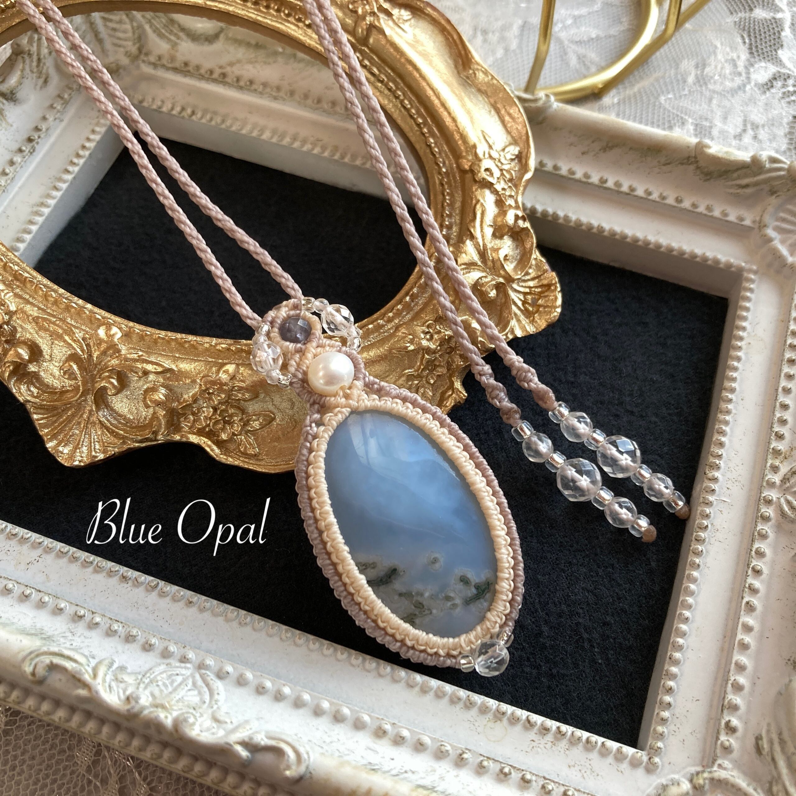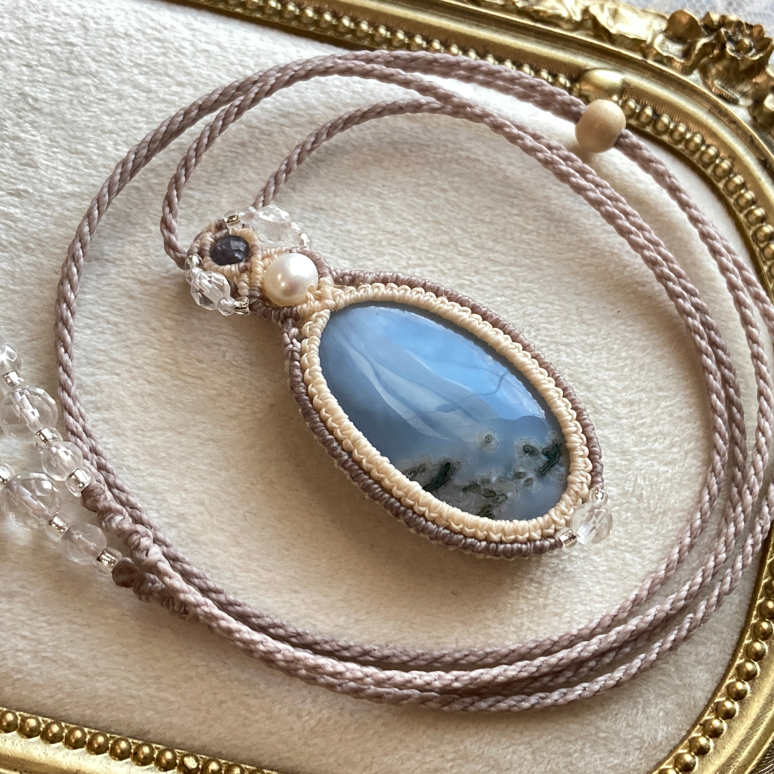 ブルーオパール マクラメ編みネックレス 金属アレルギー対応