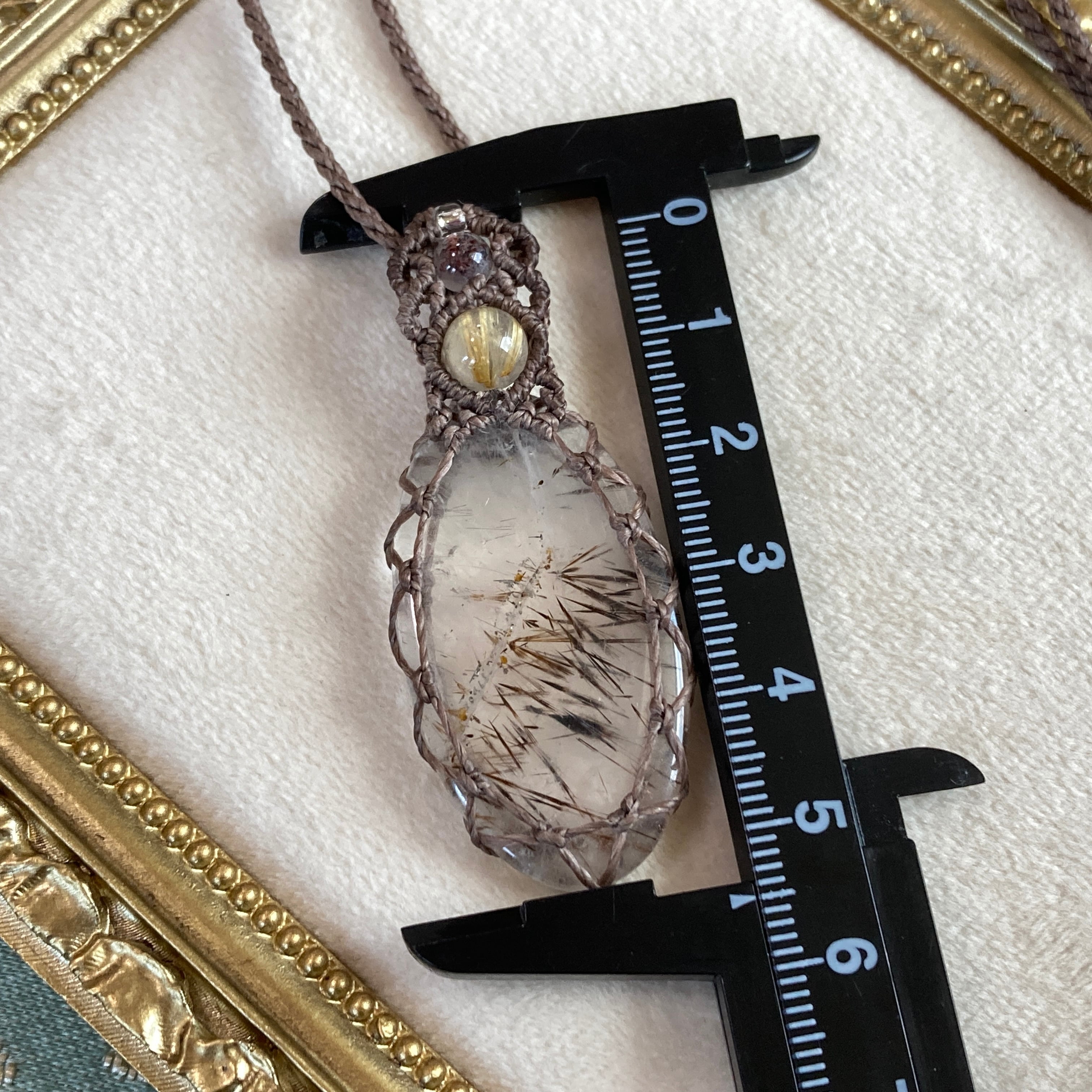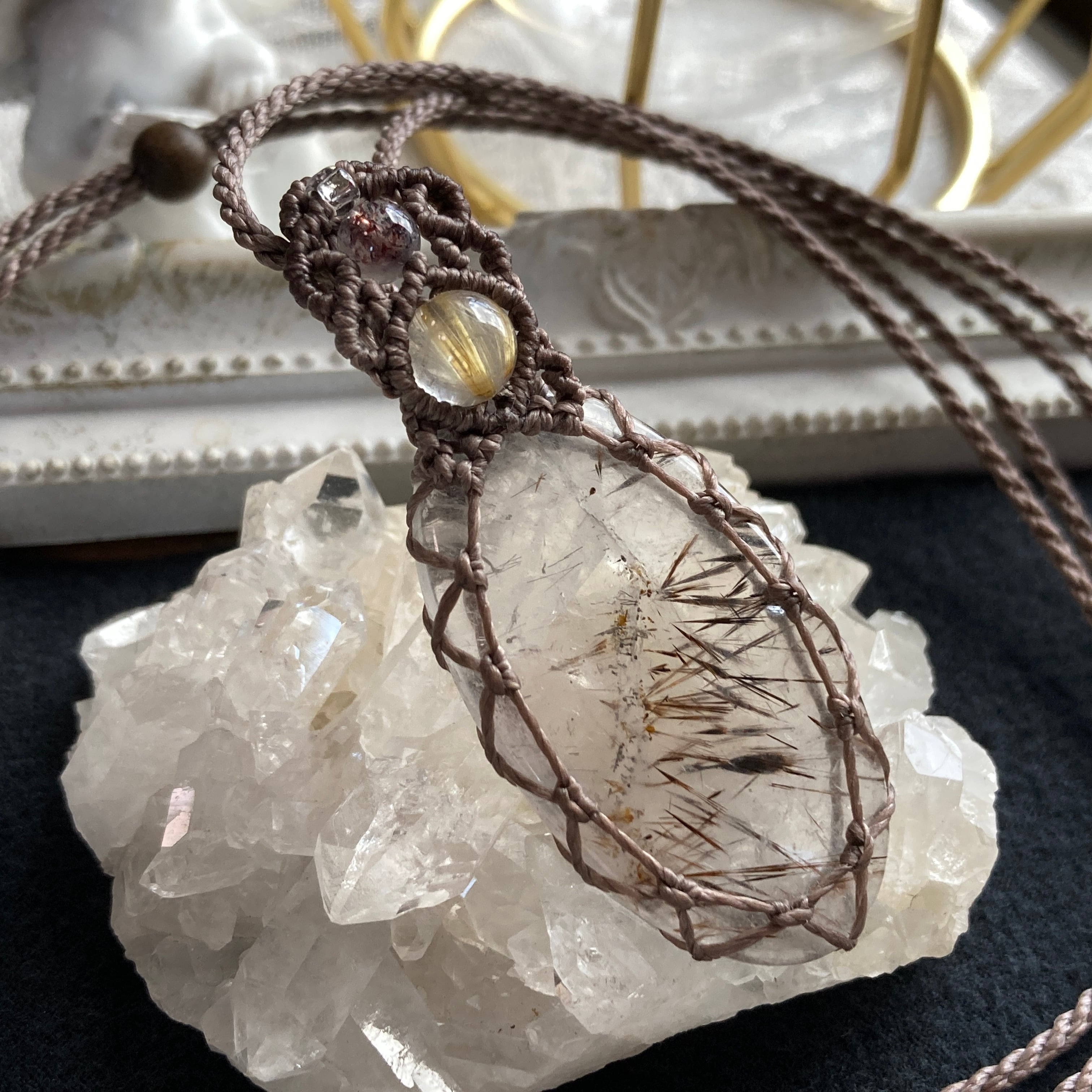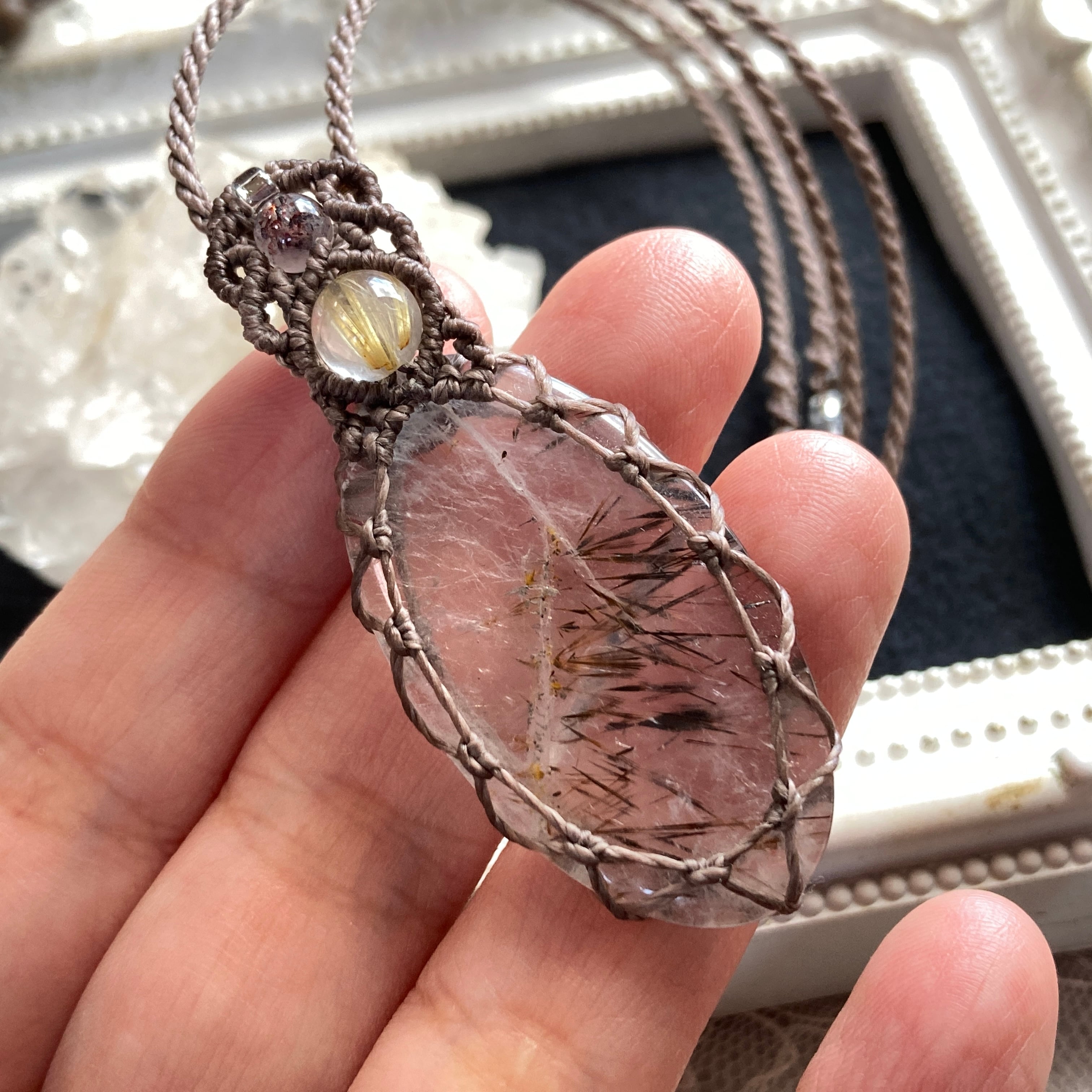 ゲーサイトインクォーツ 天然石マクラメ編みネックレス・天然石マクラメネックレス