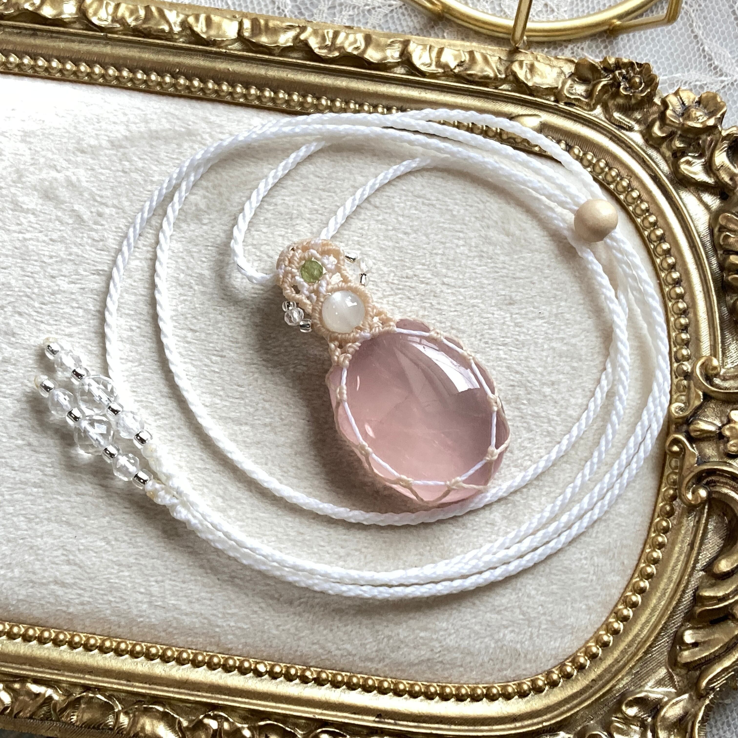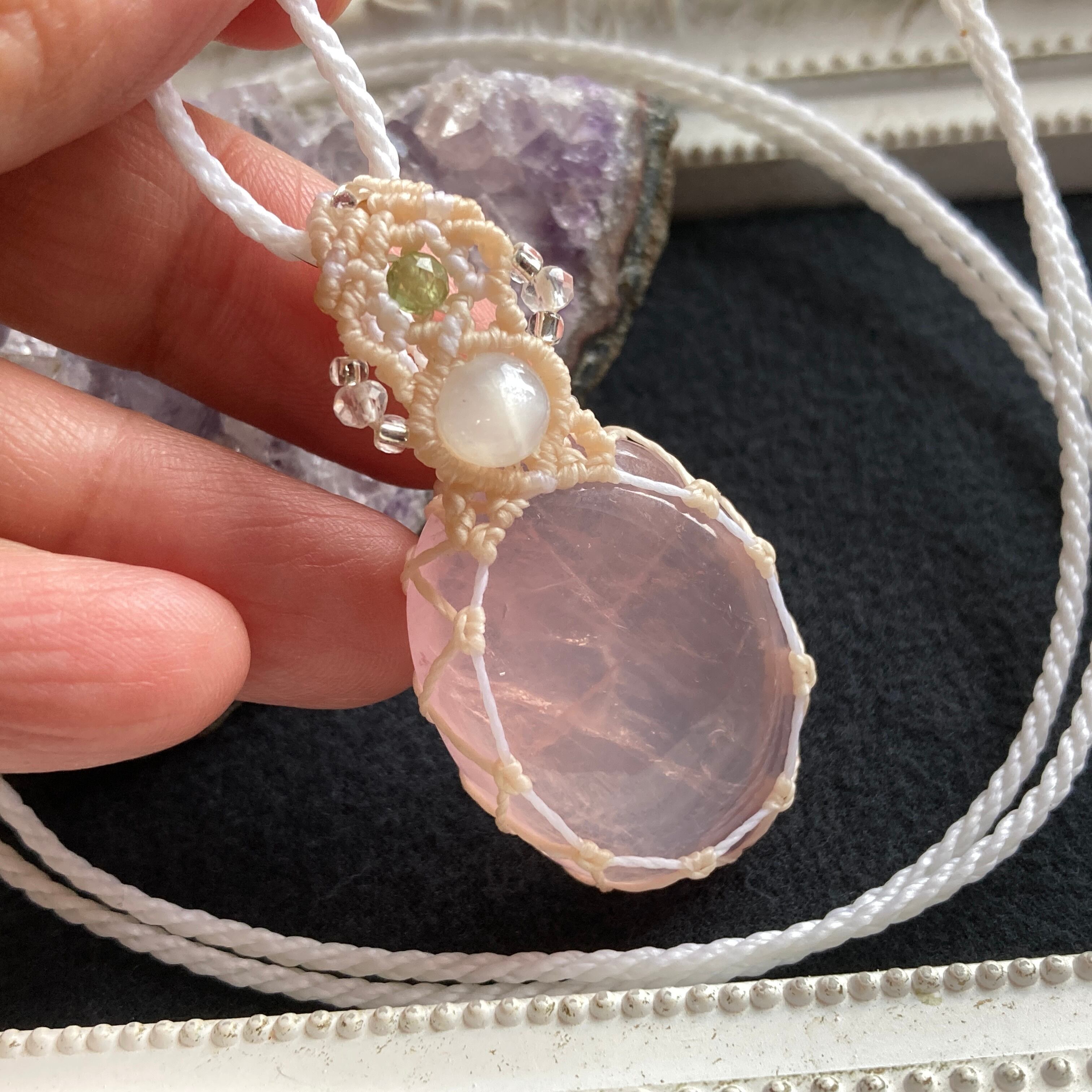 【ローズクォーツ×ムーンストーン マクラメネックレス】