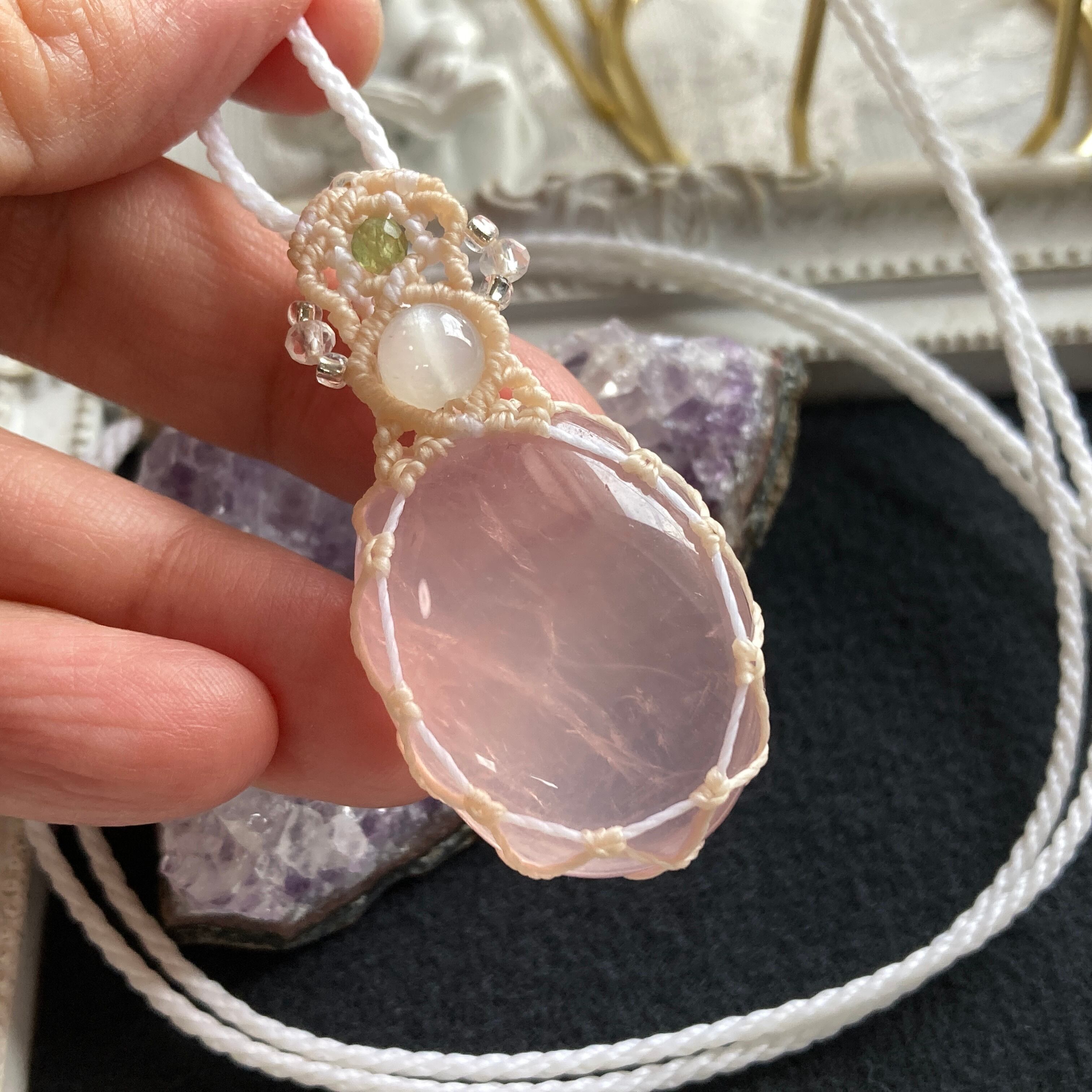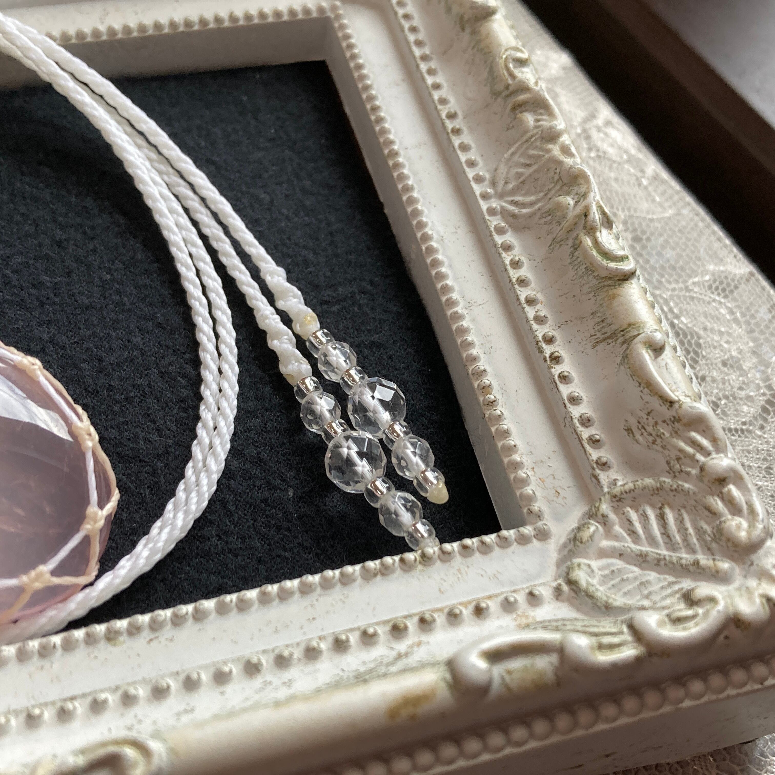 クリアローズクォーツ マクラメネックレス 金属アレルギー対応 ネックレス