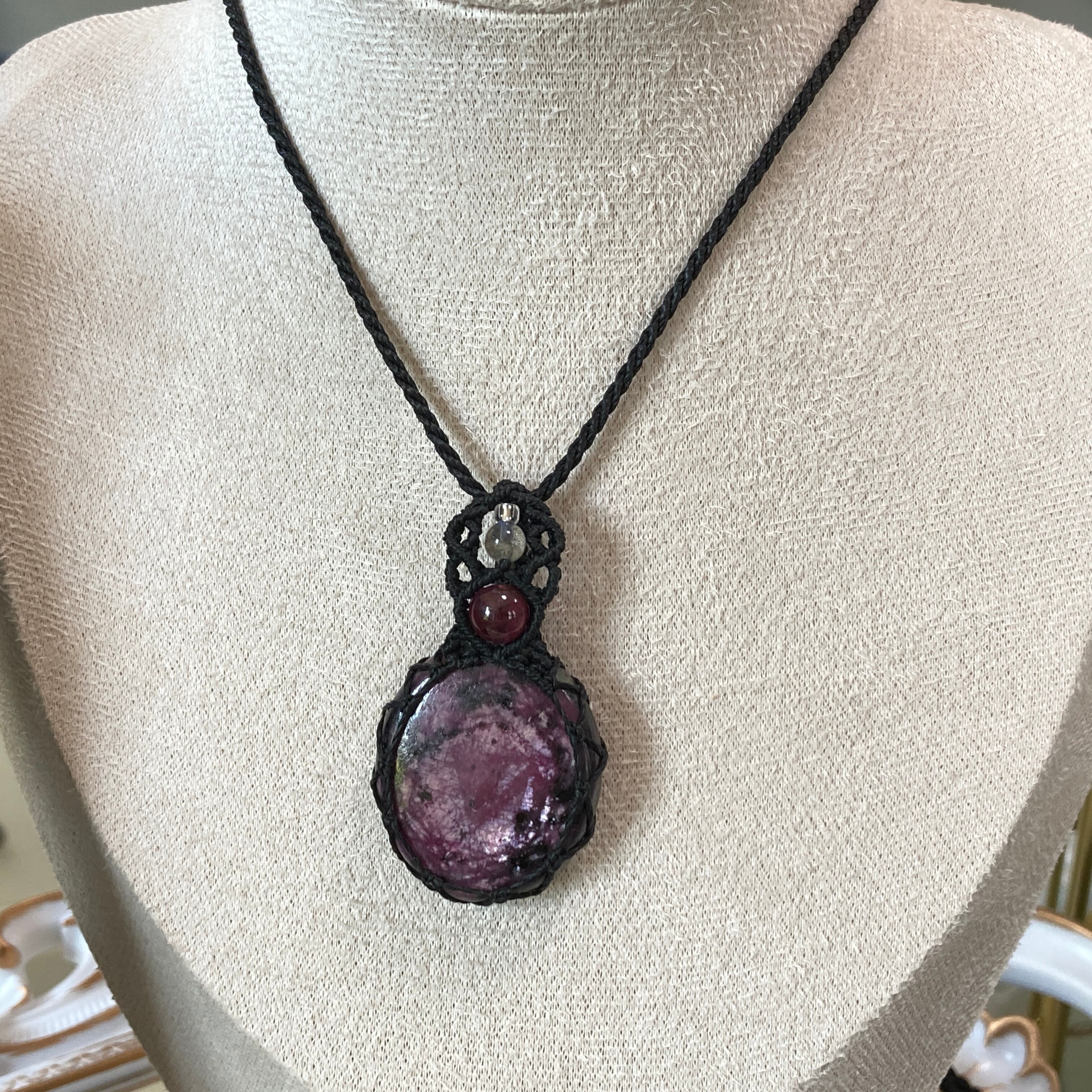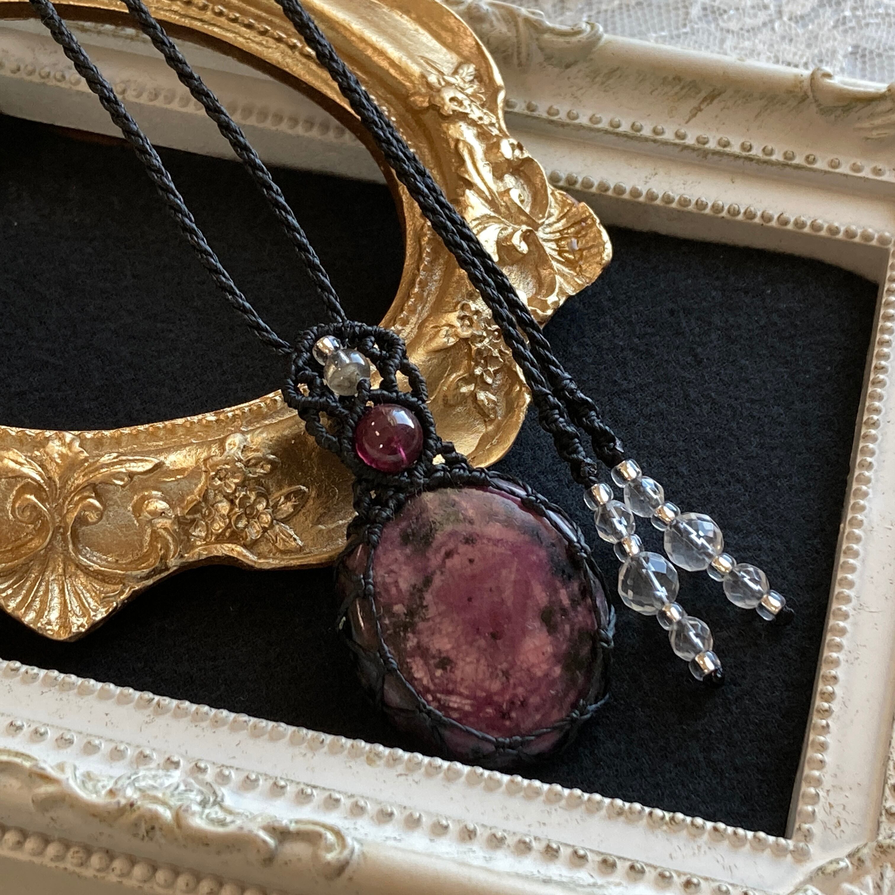 タンザニア産 スタールビーインゾイサイト マクラメネックレス 金属アレルギー対応 ネックレス