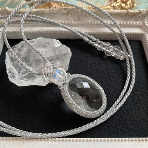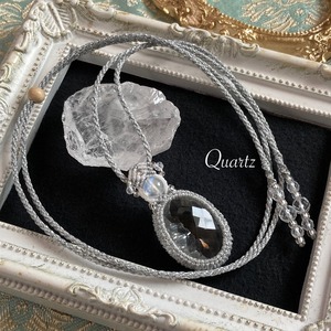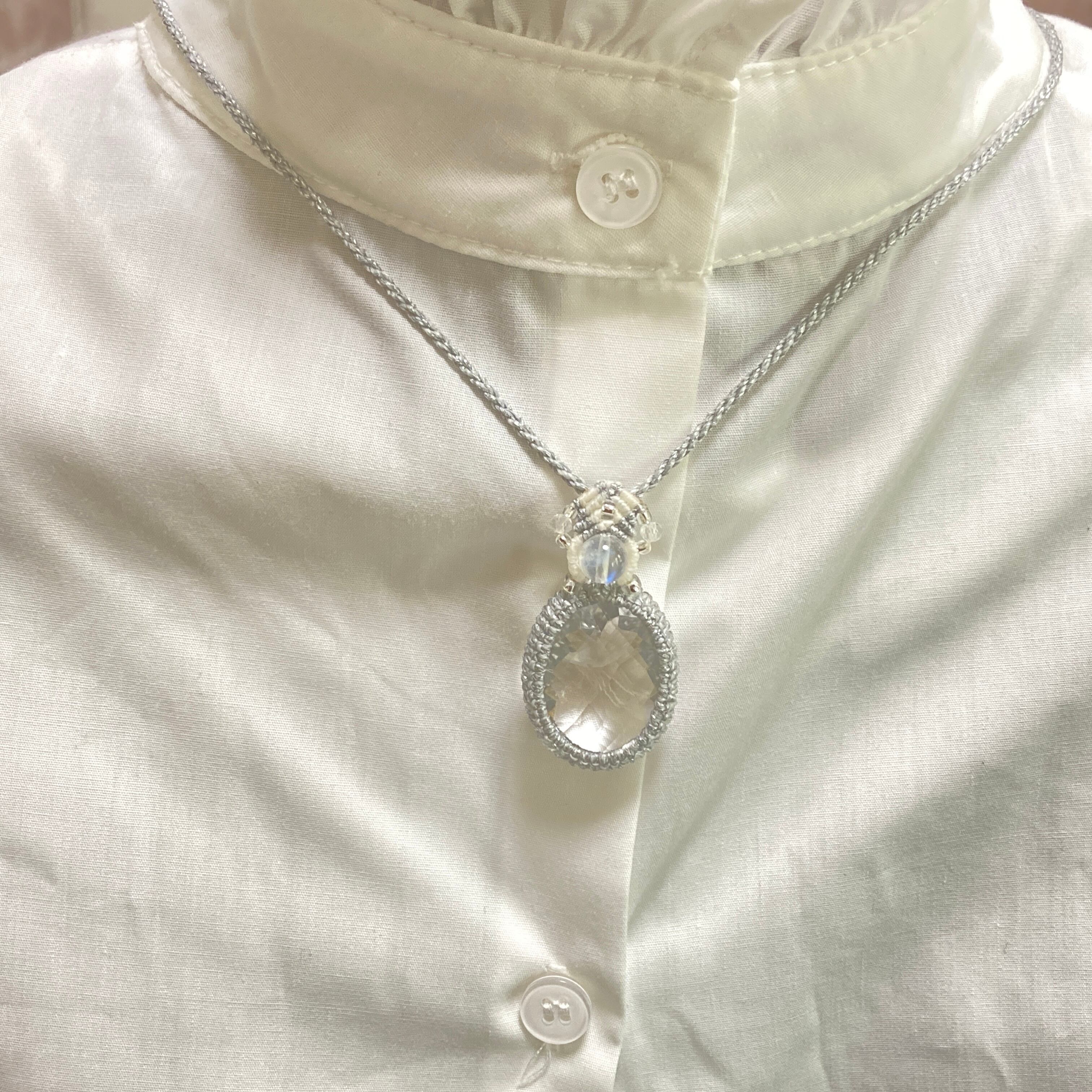 ファセットカット入り水晶(クリスタルクォーツ)マクラメネックレス 金属アレルギー対応 ネックレス
