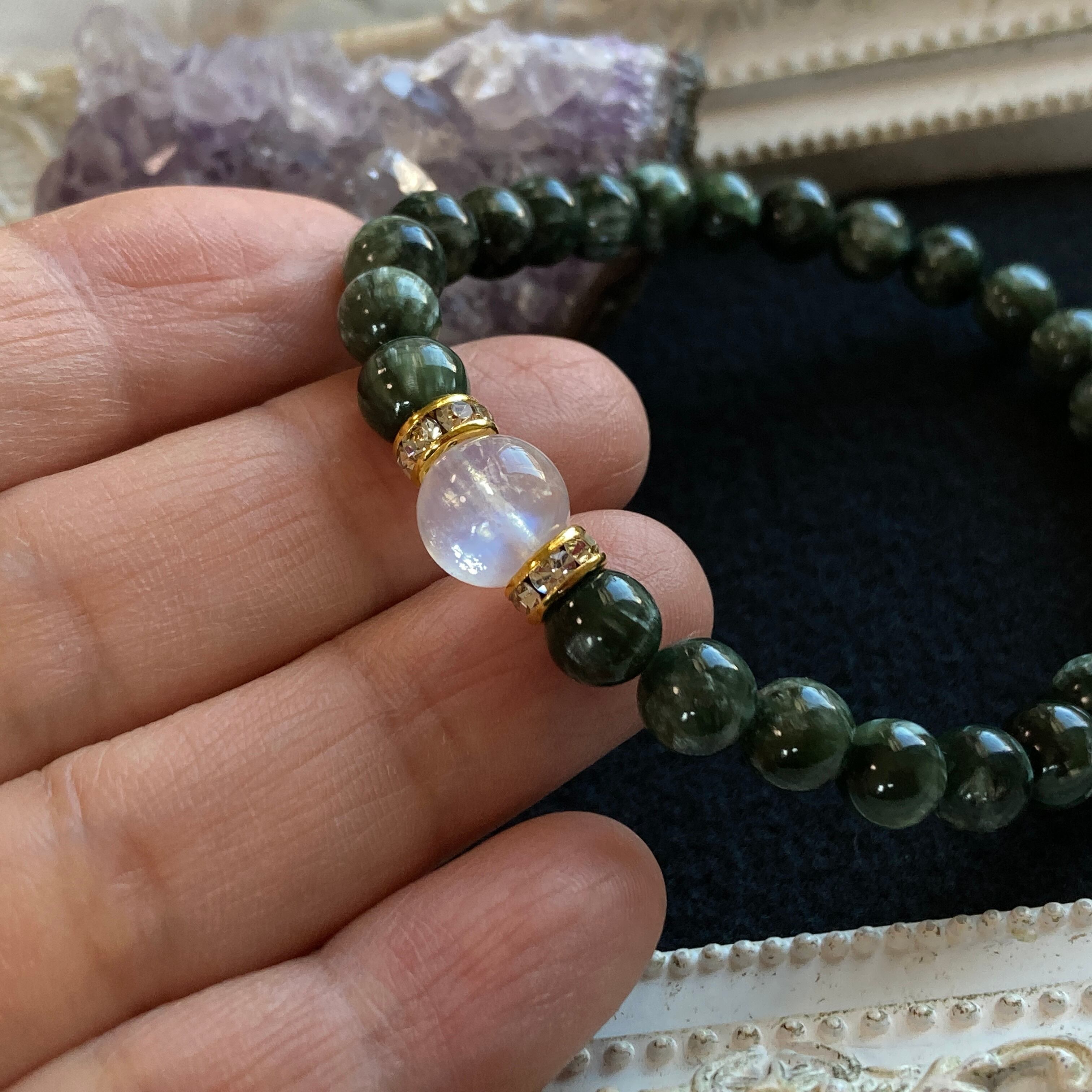 セラフィナイト×レインボームーンストーン 天然石ブレスレット