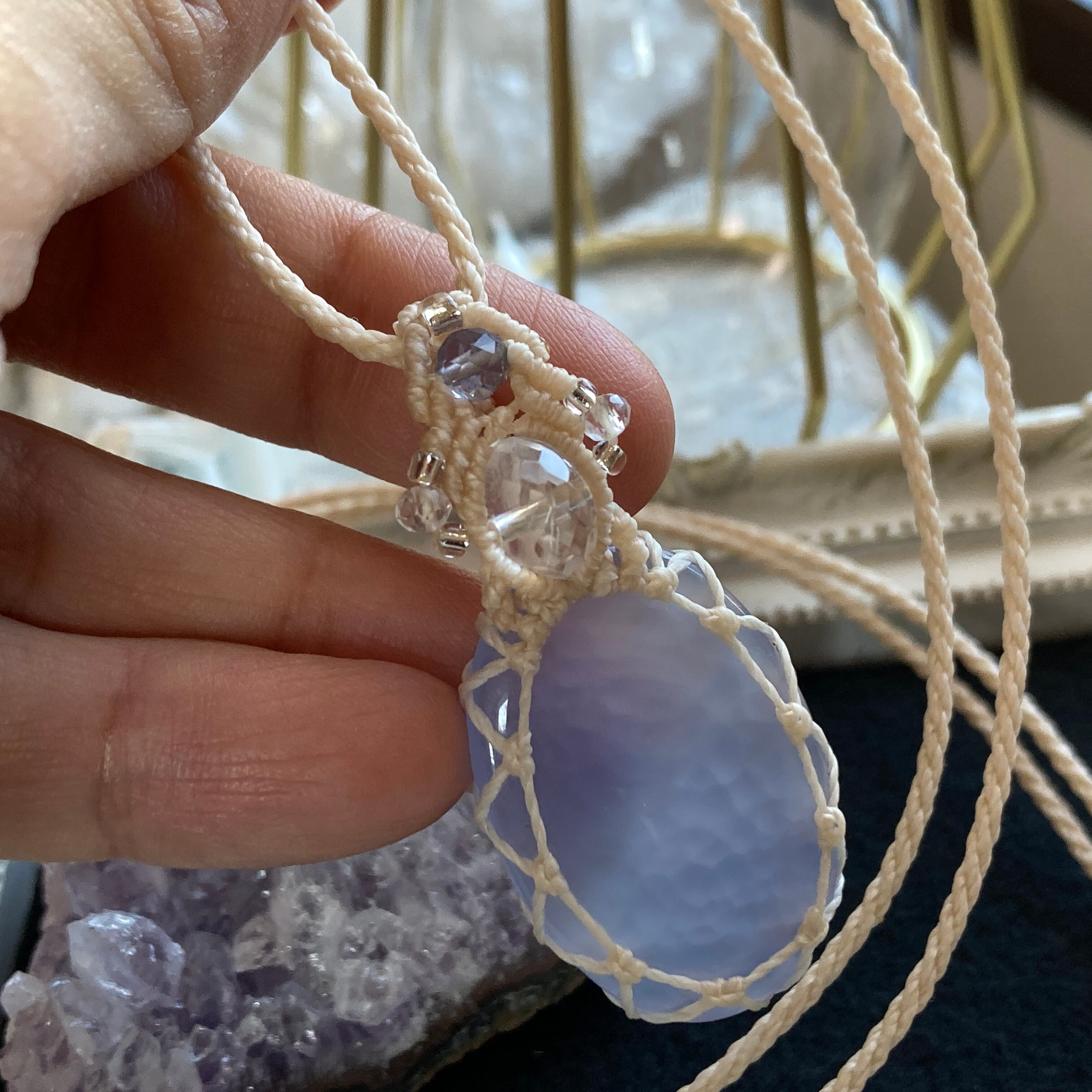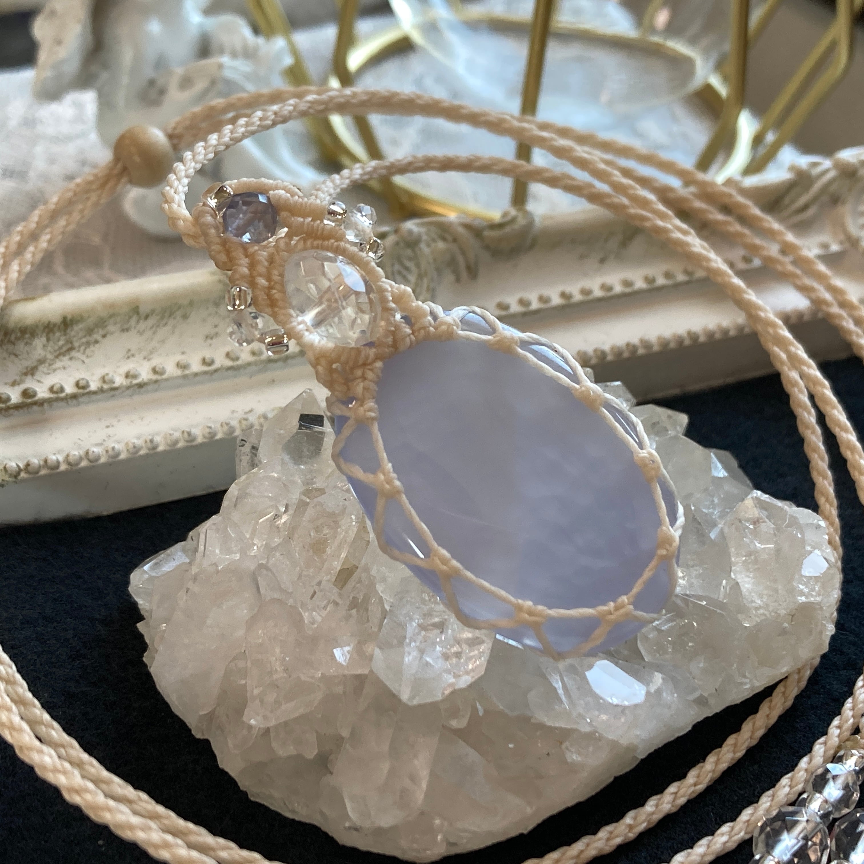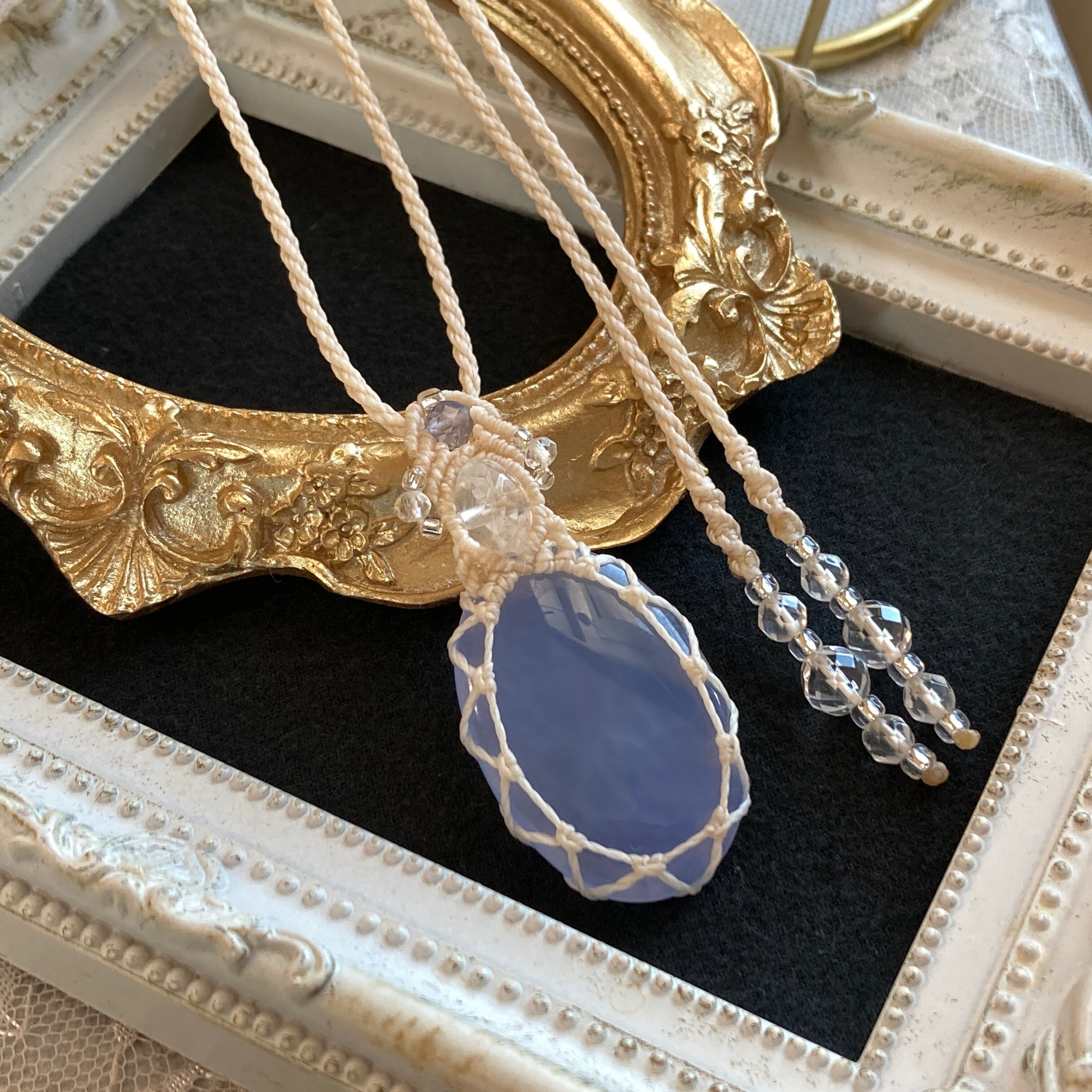 ブルーカルセドニー マクラメネックレス 金属アレルギー対応 ネックレス