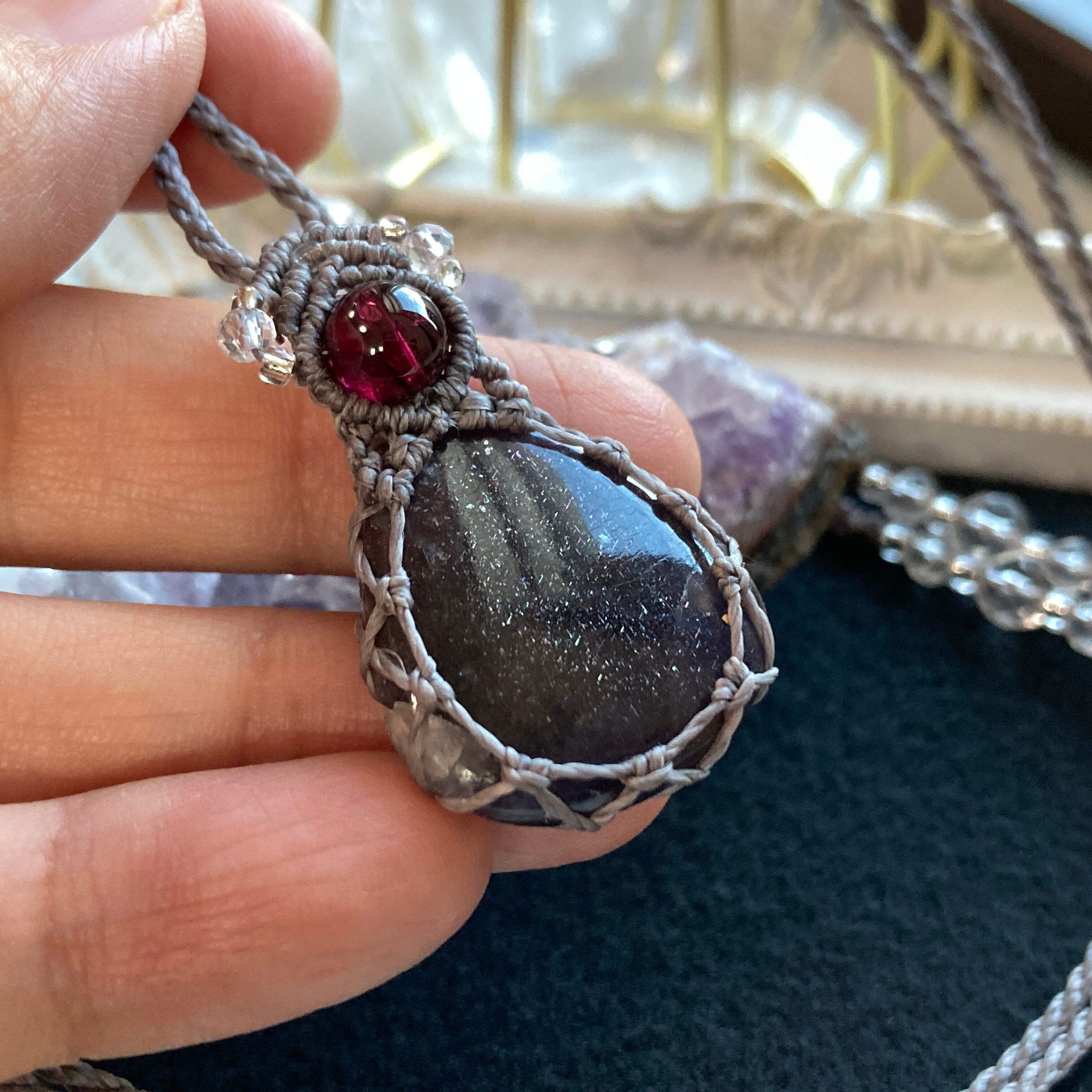 ※こちらの商品はペンダントトップに、マクラメ編みの首紐をおつけしており、