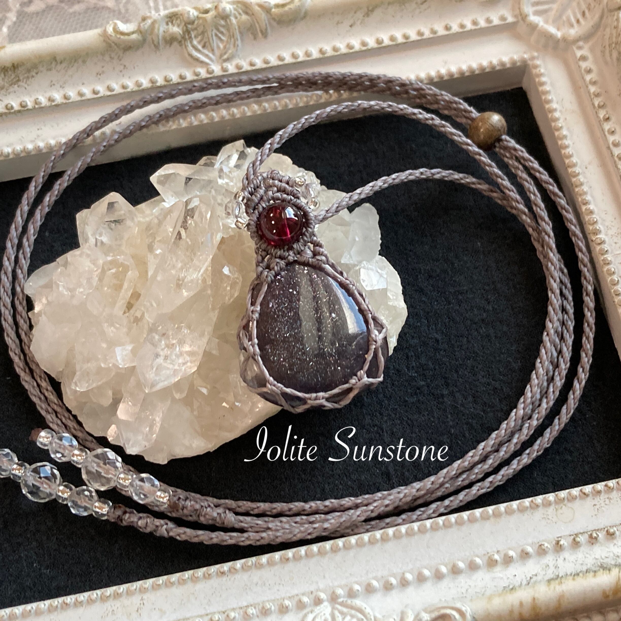 アイオライトサンストーン(ミニミニサイズ) マクラメネックレス 金属アレルギー対応 ネックレス
