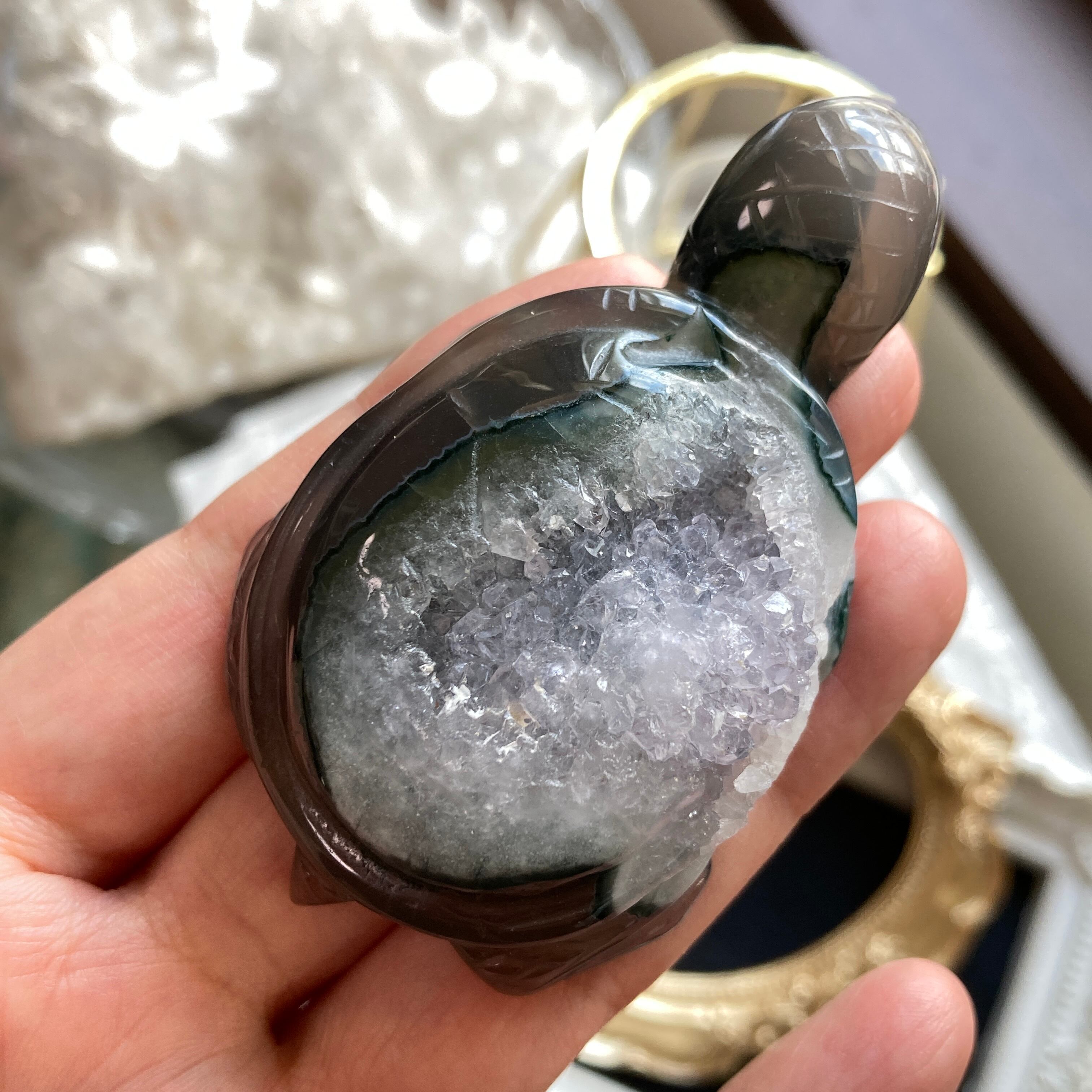 ※こちらは神秘的な結晶が甲羅に煌めく、美しい亀の彫刻置物です。
