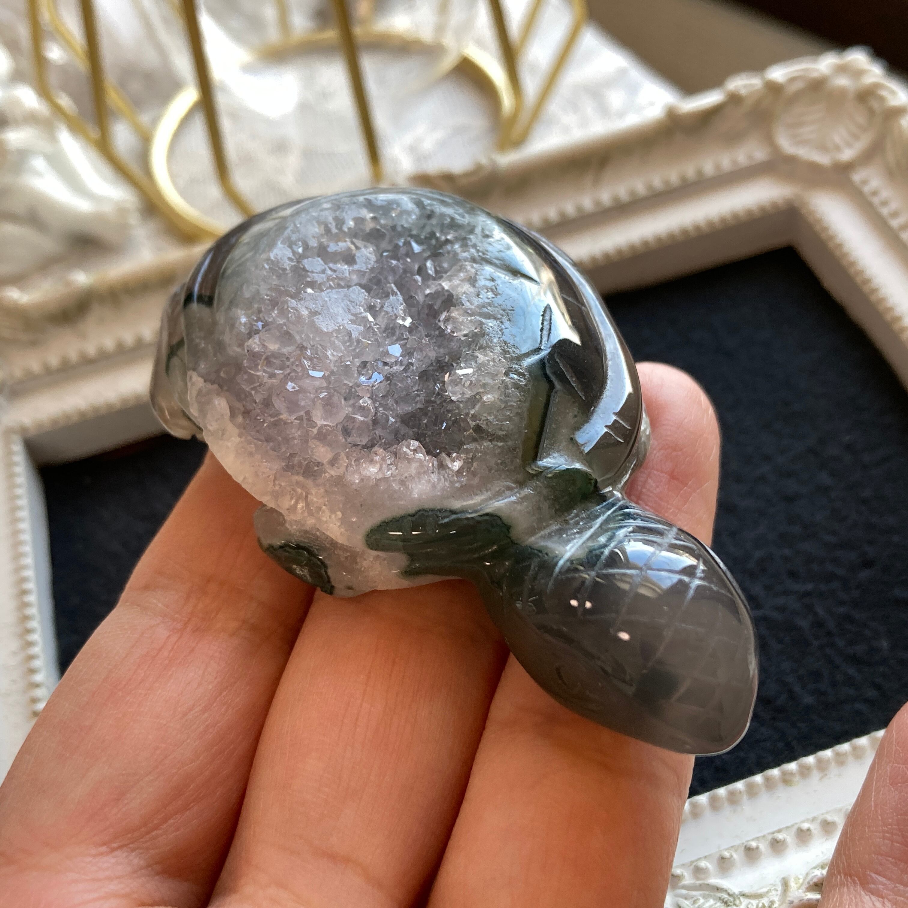 ドゥルージーアゲート 彫刻置石 【かめモチーフ】A