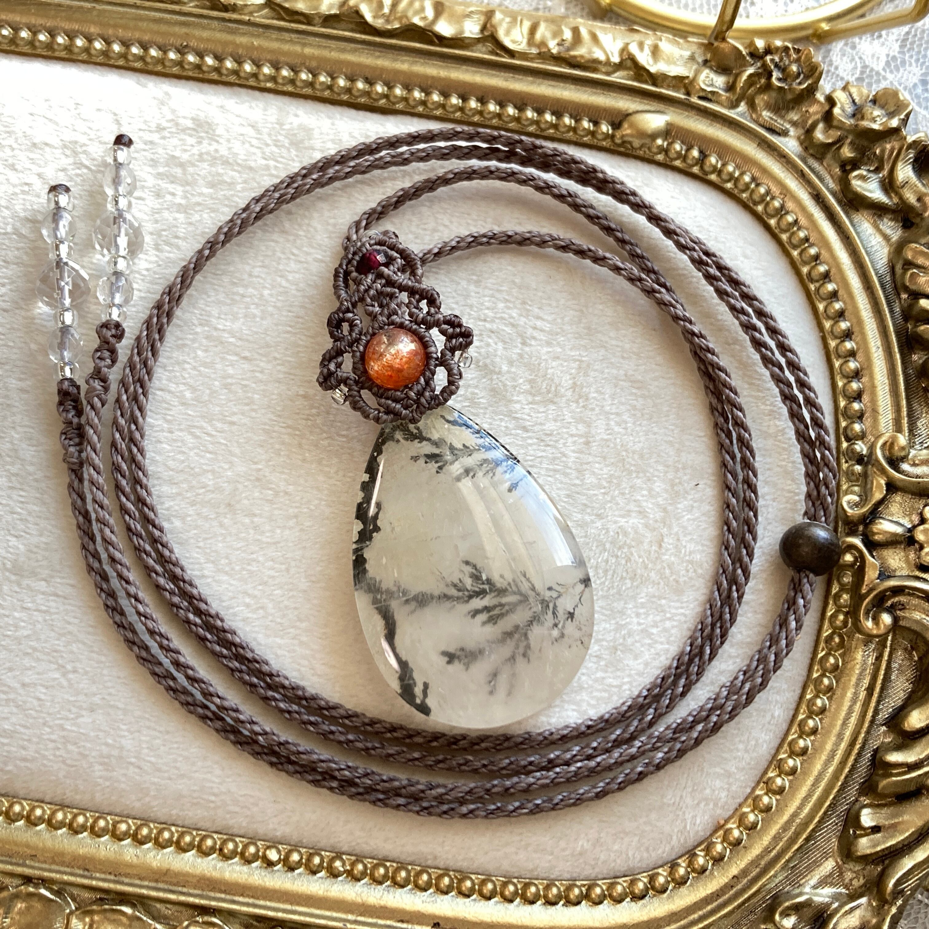 デンドライトクォーツ・デンドリティッククォーツ 天然石マクラメ編みネックレス・天然石マクラメネックレス