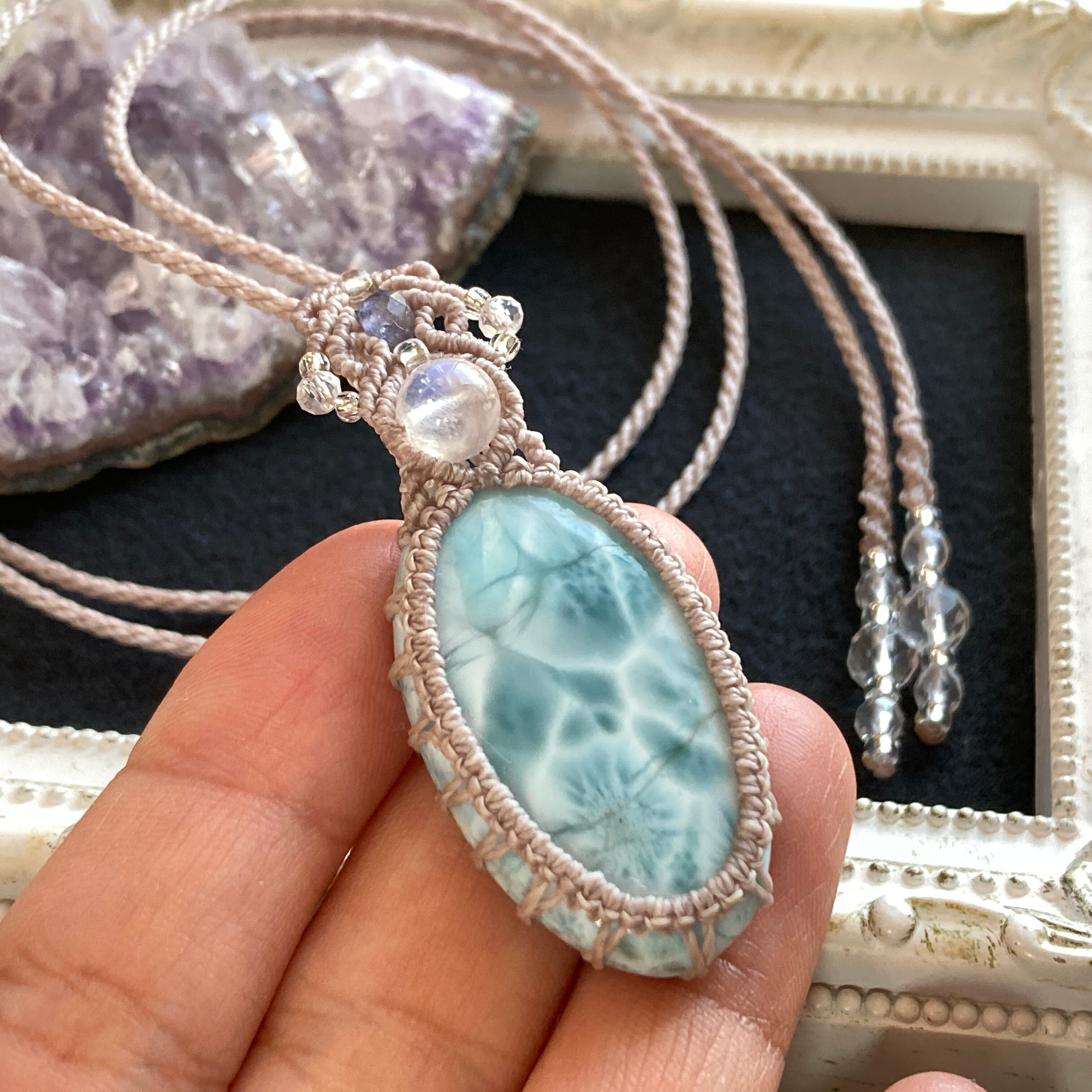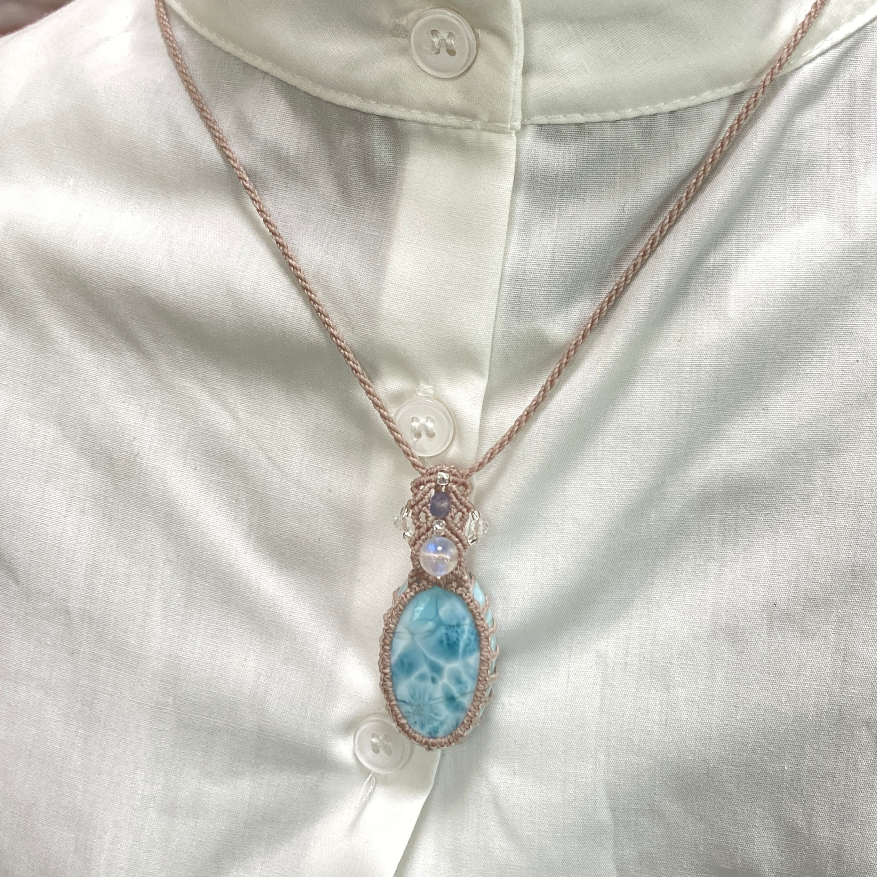 ラリマー(ブルーペクトライト) マクラメネックレス・マクラメペンダントネックレス