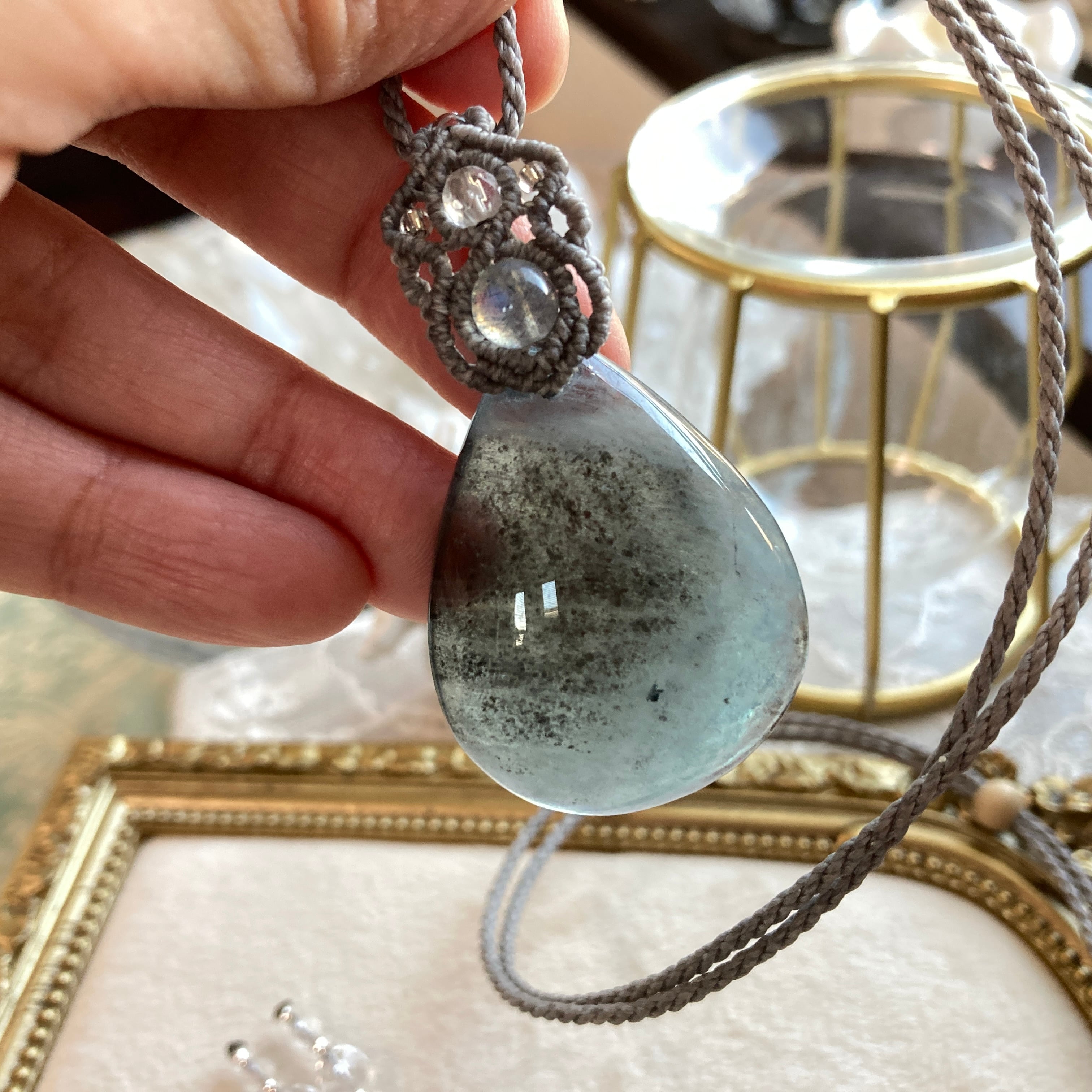 【ブラックモスアクアマリン×ラブラドライト マクラメネックレス】