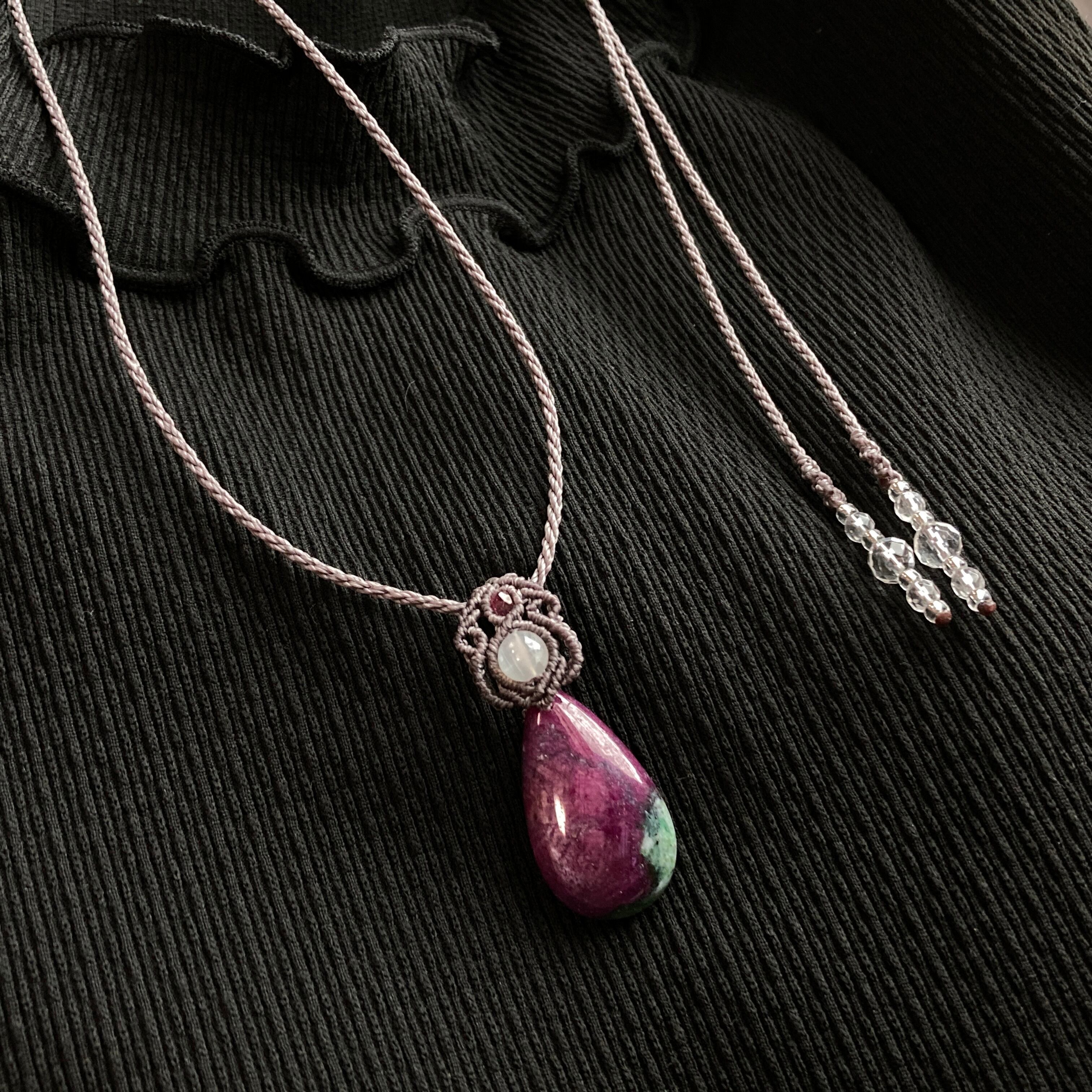 スタールビーインゾイサイト(ミニサイズ) マクラメネックレス 金属アレルギー対応 ネックレス