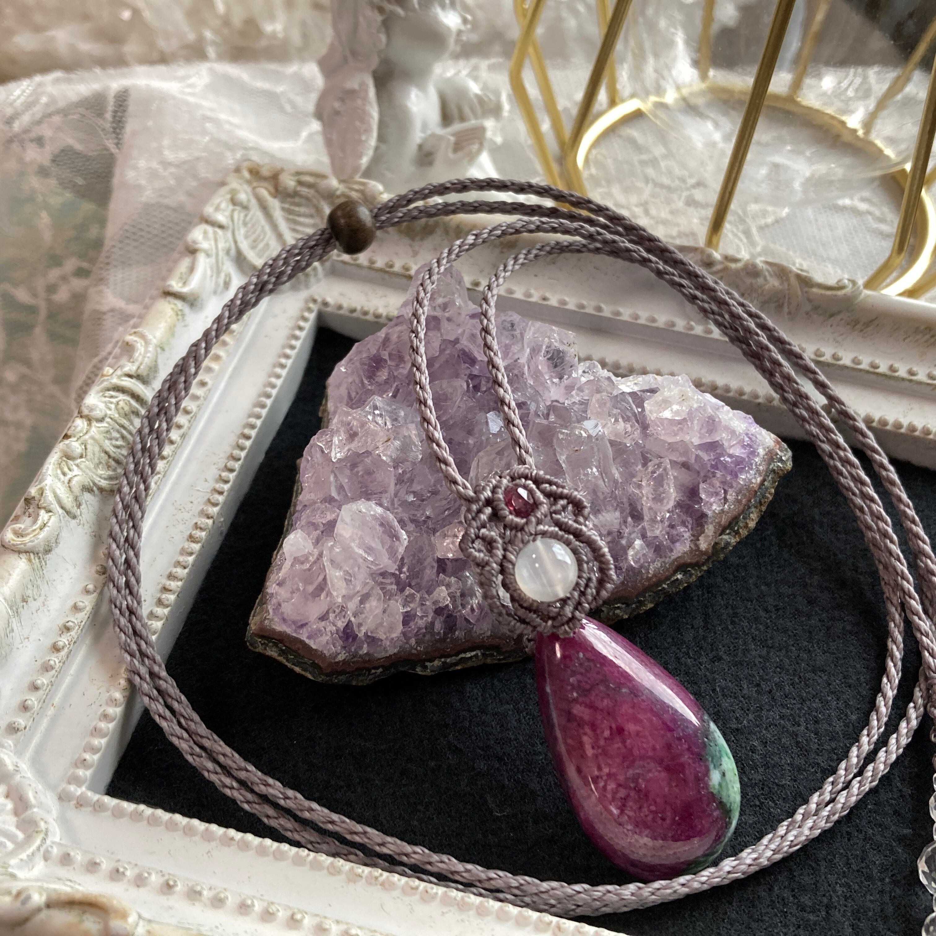 ※こちらの商品はペンダントトップに、マクラメ編みの首紐をおつけしており、