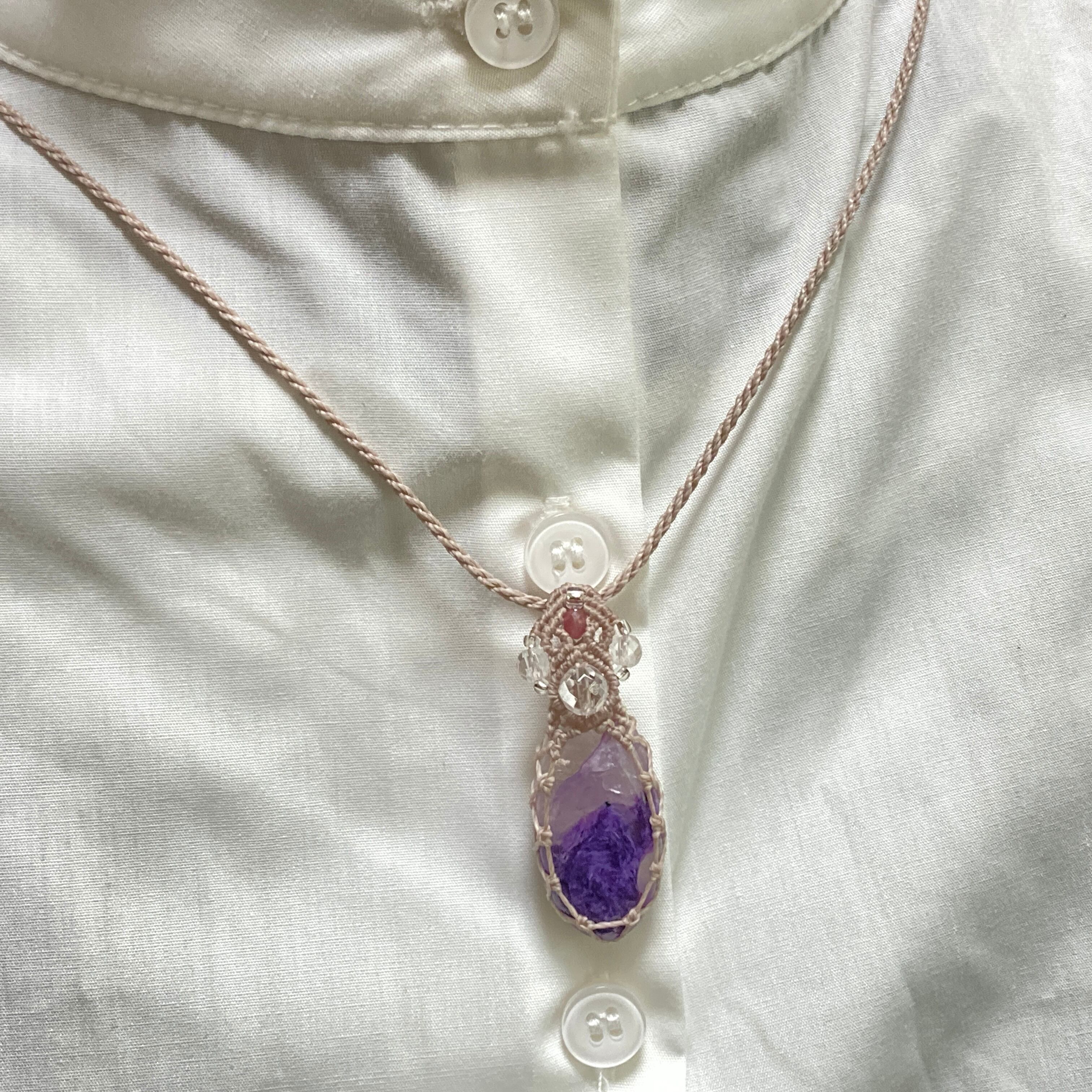 ※こちらの商品はペンダントトップに、マクラメ編みの首紐をおつけしており、