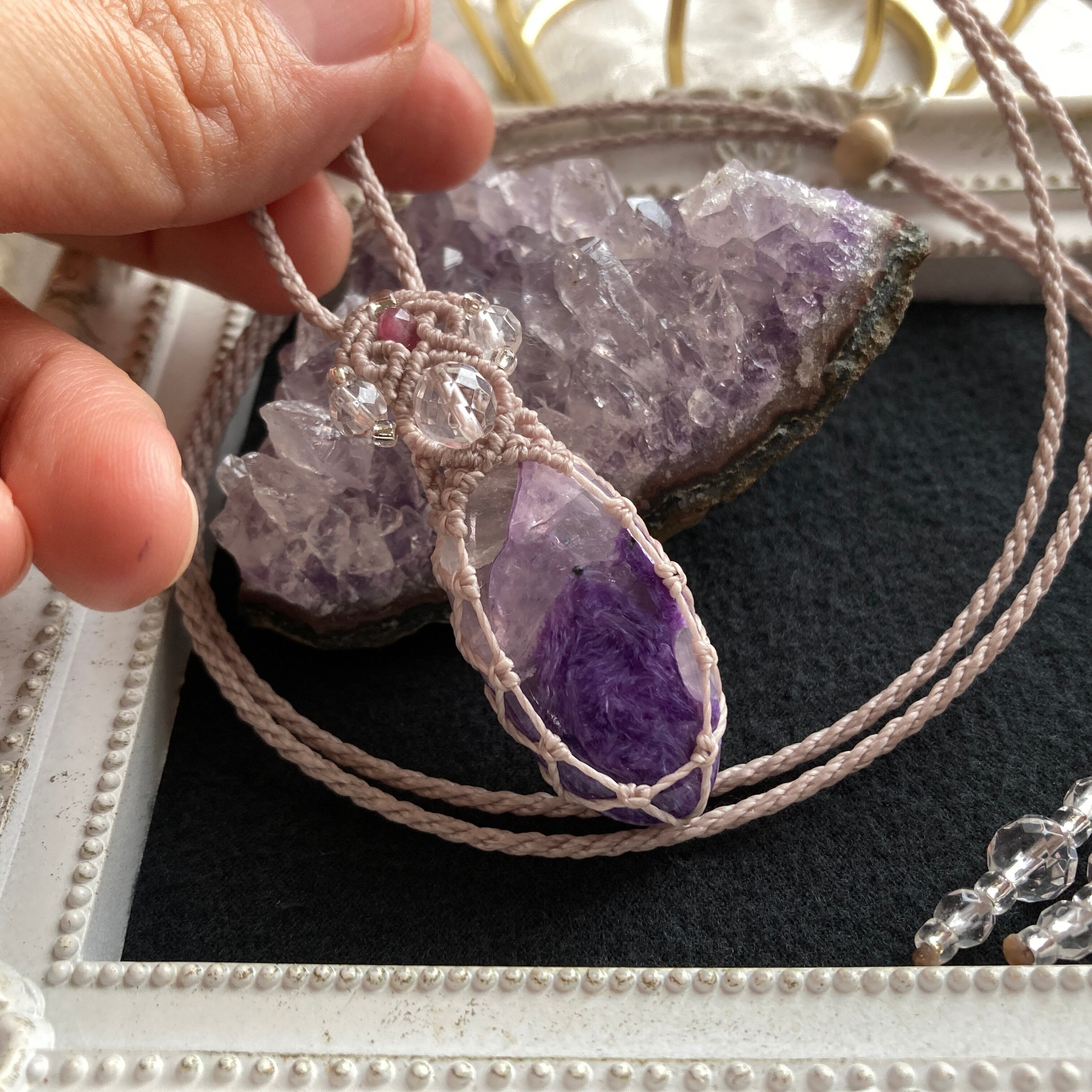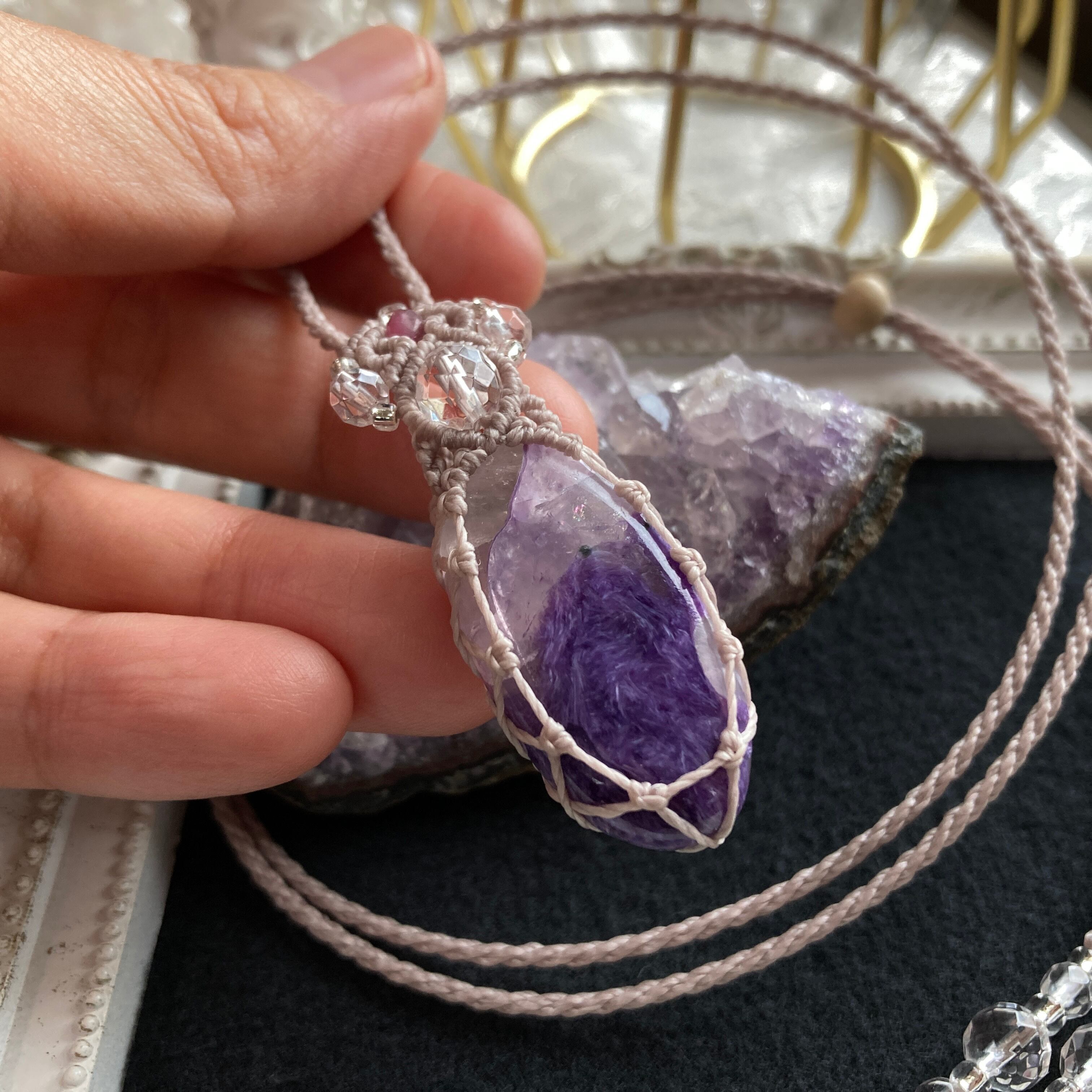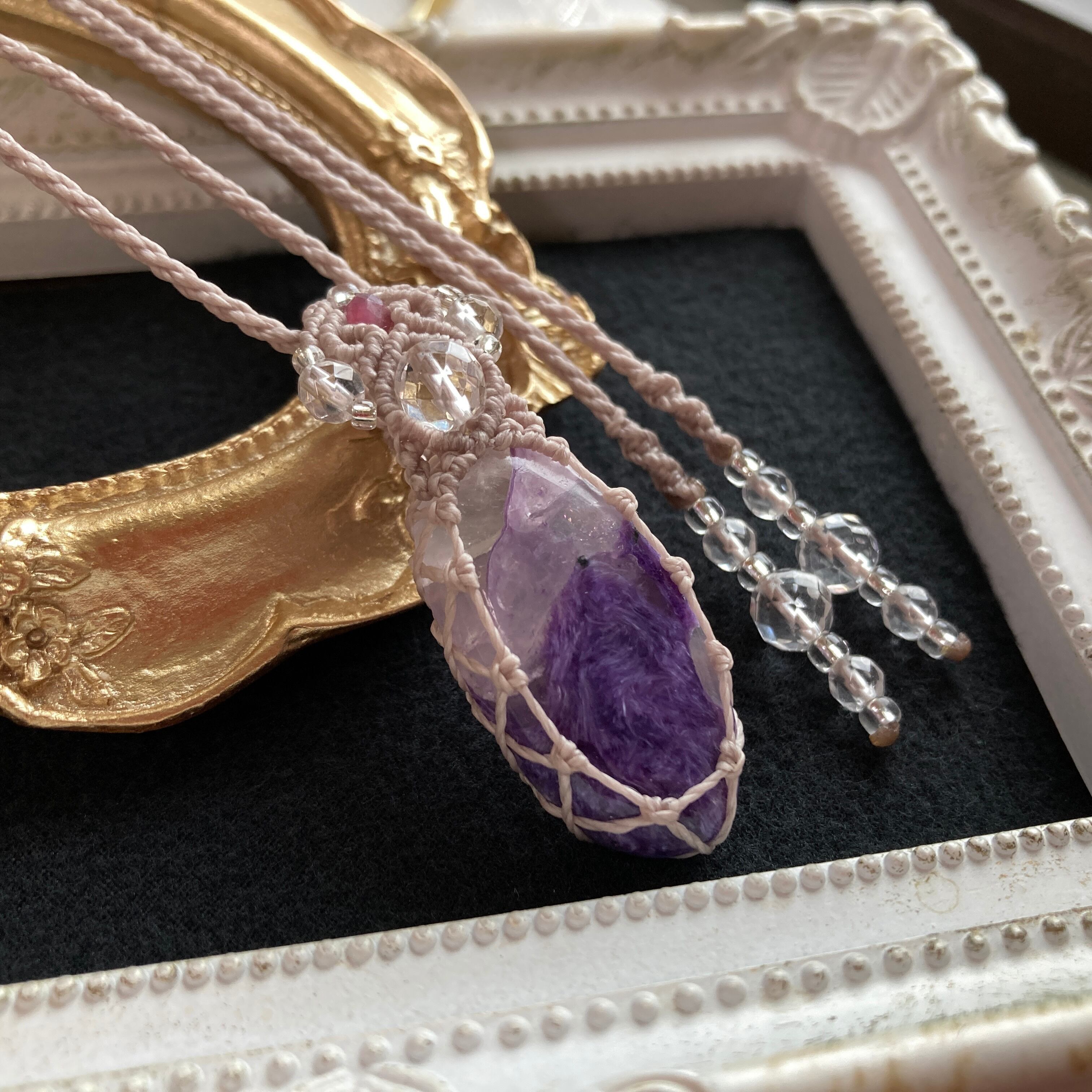 エンジェルシリカ(チャロアイトシリカ)虹入り⭐︎ 天然石マクラメ編みネックレス・天然石マクラメネックレス