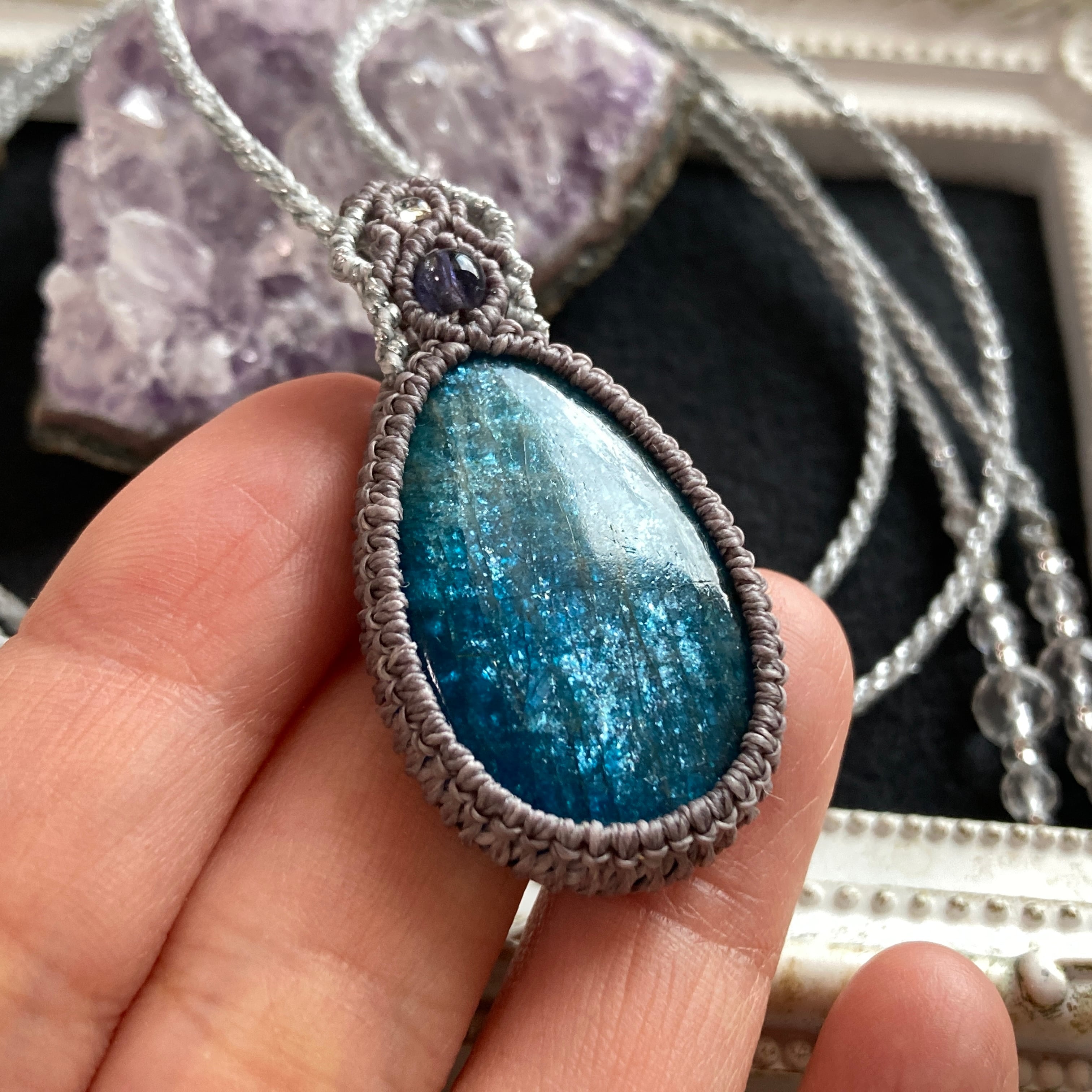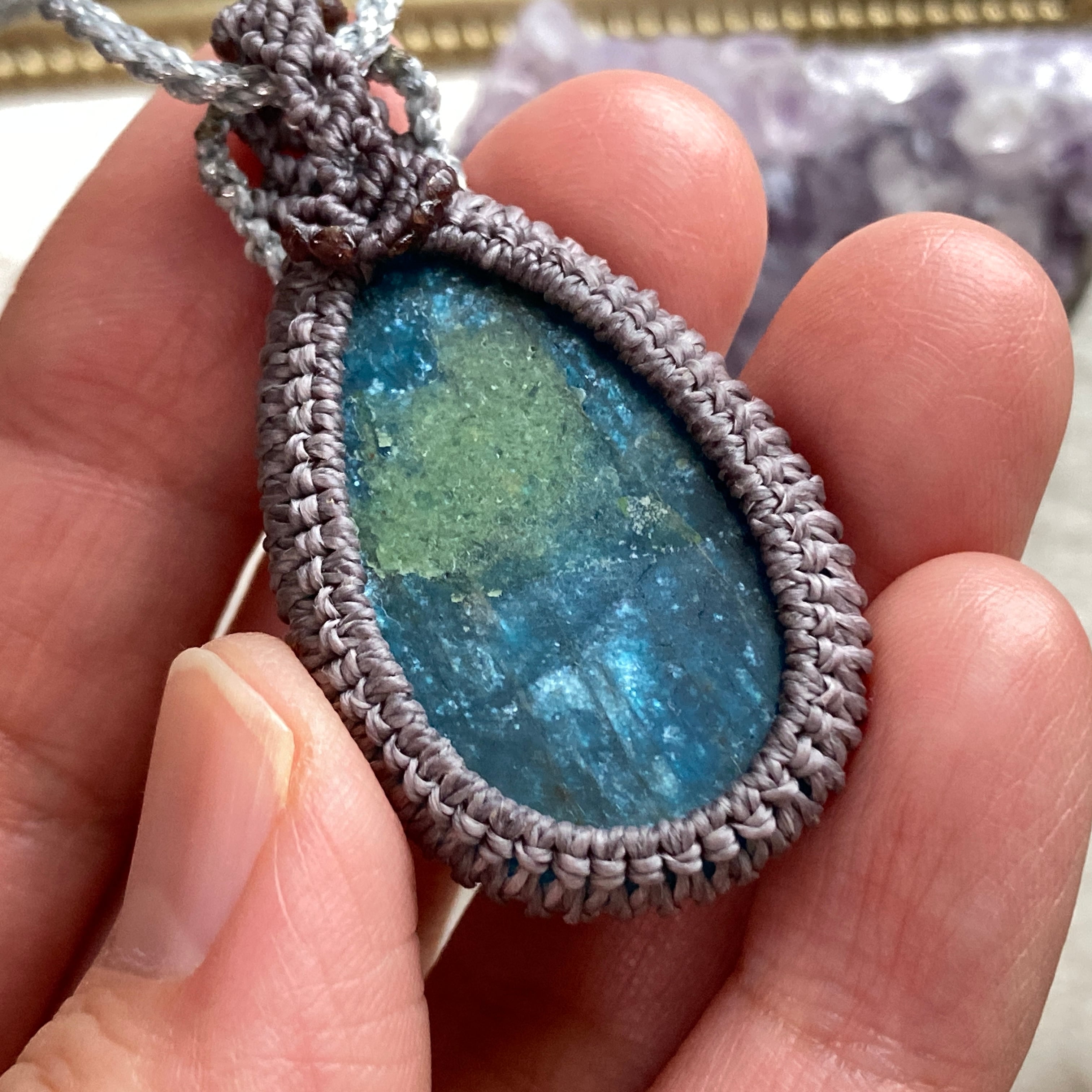 ブルーアパタイト(シャイニーカラー) マクラメ編みネックレス ・金属アレルギー対応 ネックレス