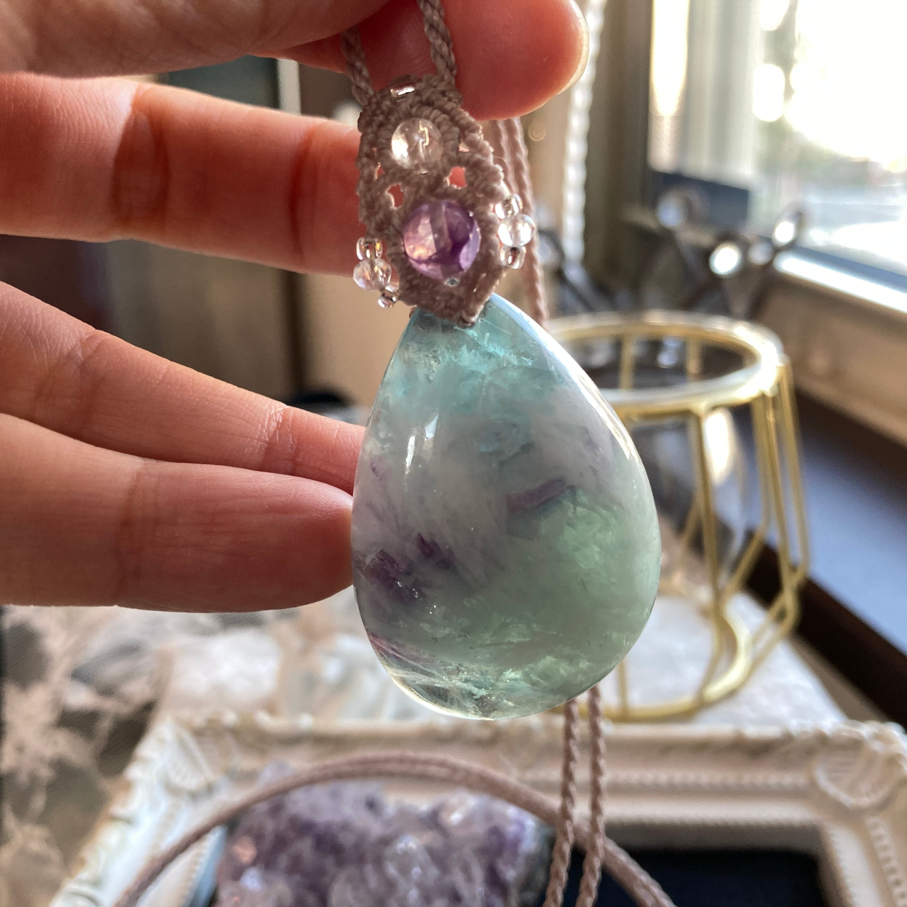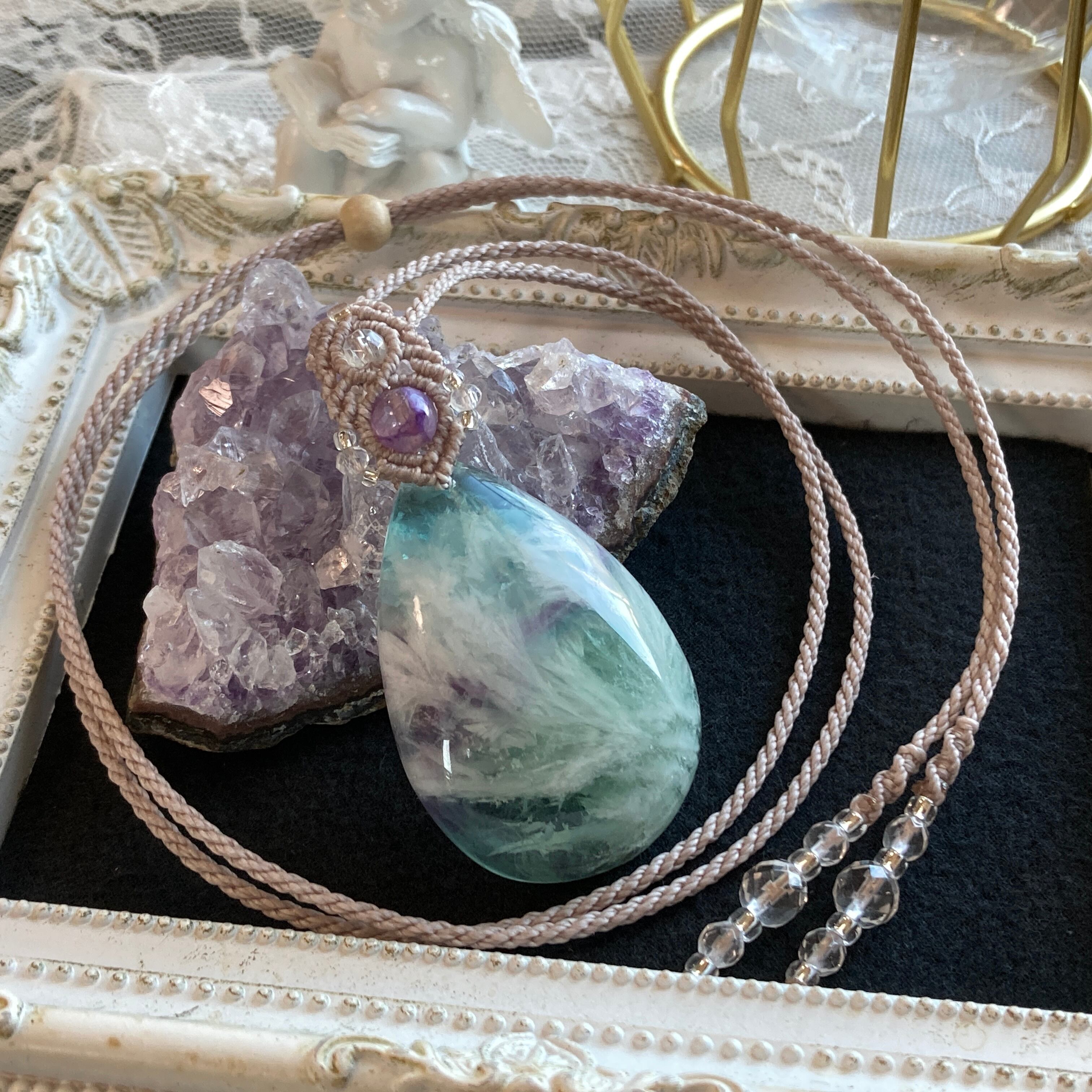 【エンジェルフェザーインフローライト マクラメネックレス】