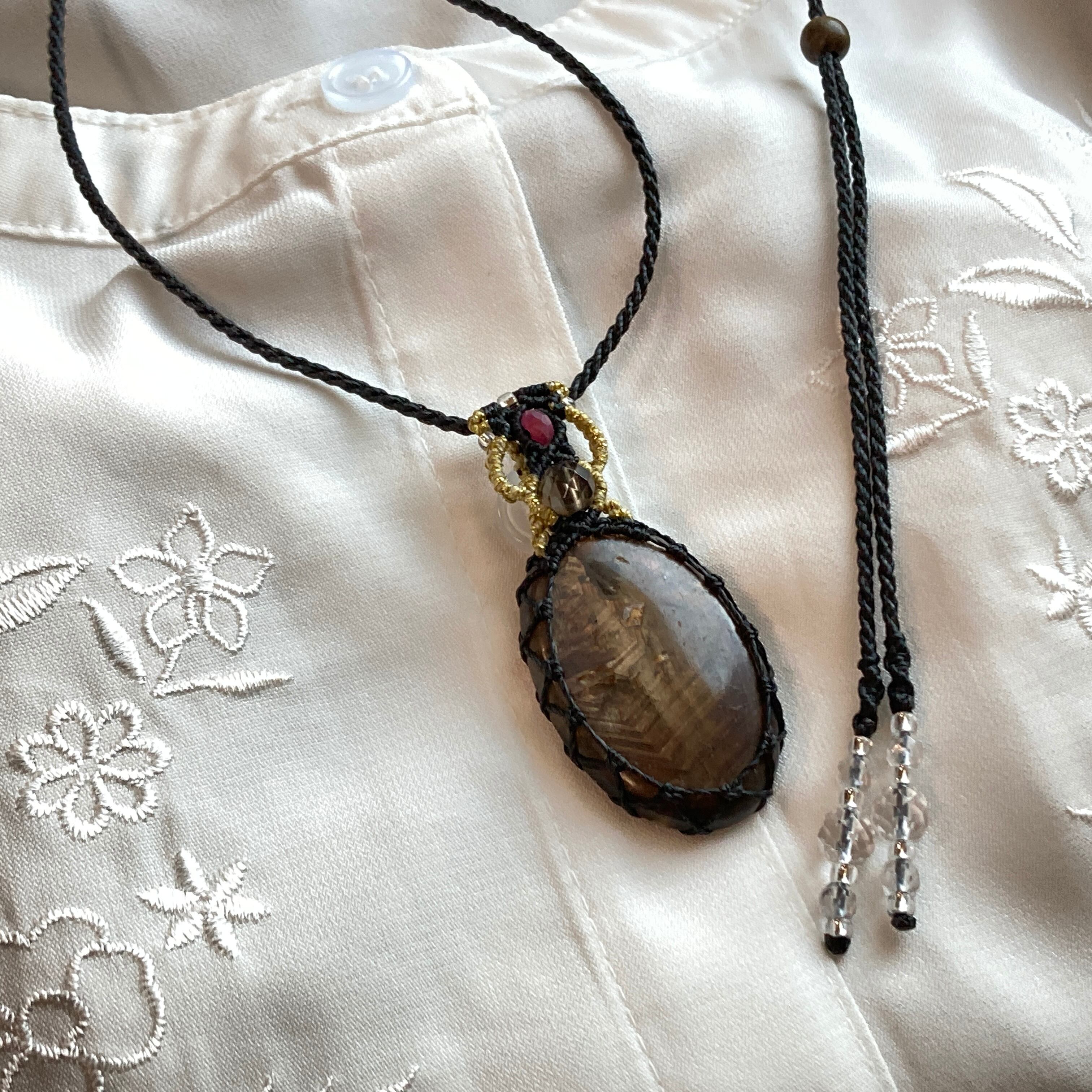 ※こちらの商品はペンダントトップに、マクラメ編みの首紐をおつけしており、