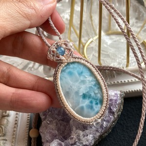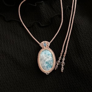 ラリマー(ブルーペクトライト)ミルキーカラー マクラメネックレス・マクラメペンダントネックレス