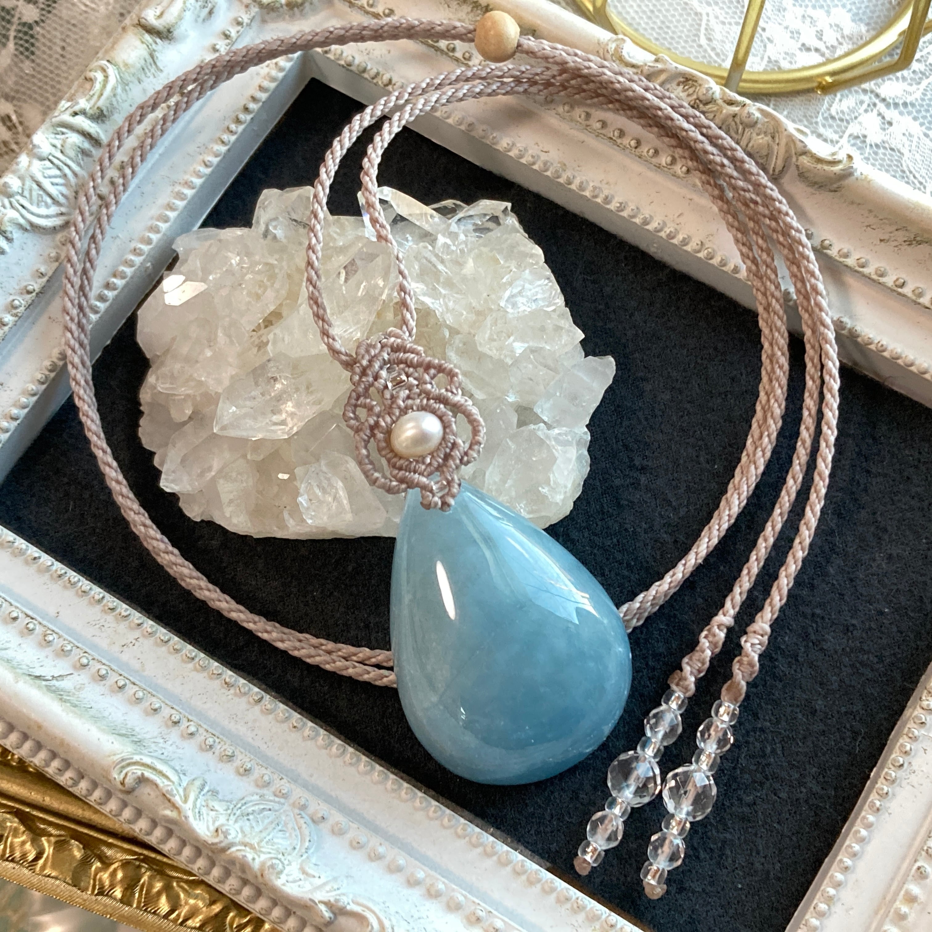 【アクアマリン マクラメネックレス】