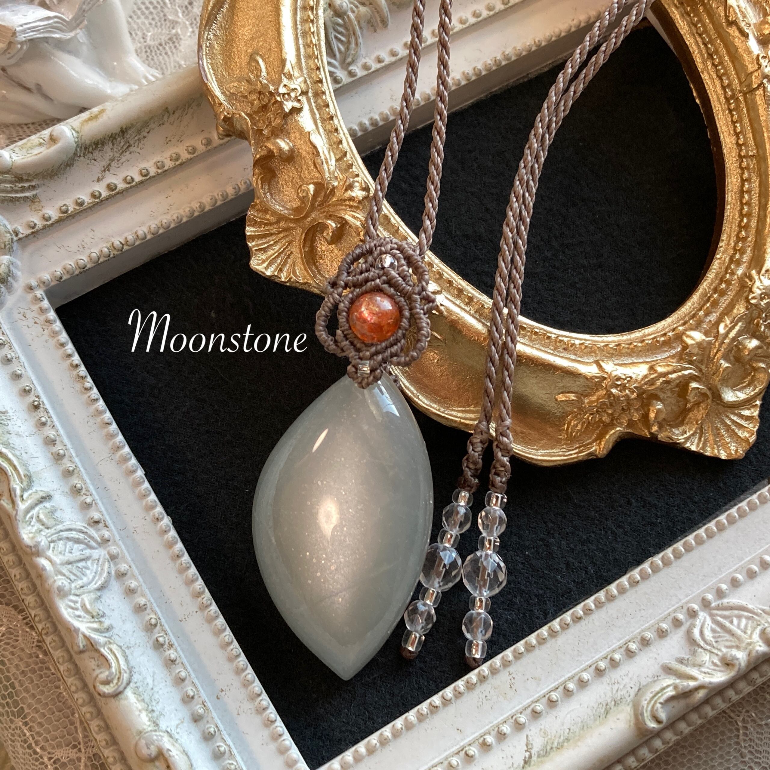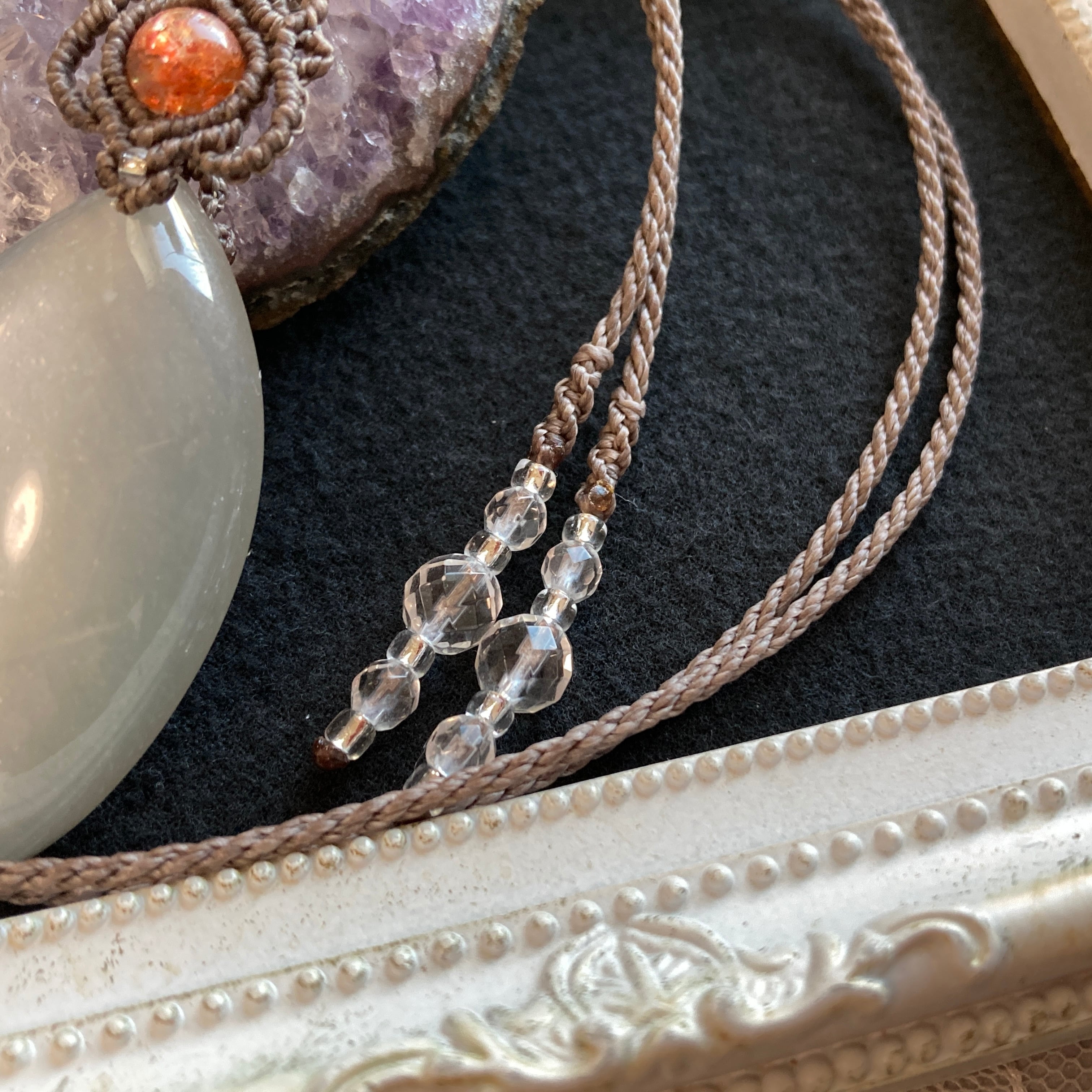 ムーンストーン(大きめサイズ)天然石マクラメ編みネックレス・天然石マクラメネックレス
