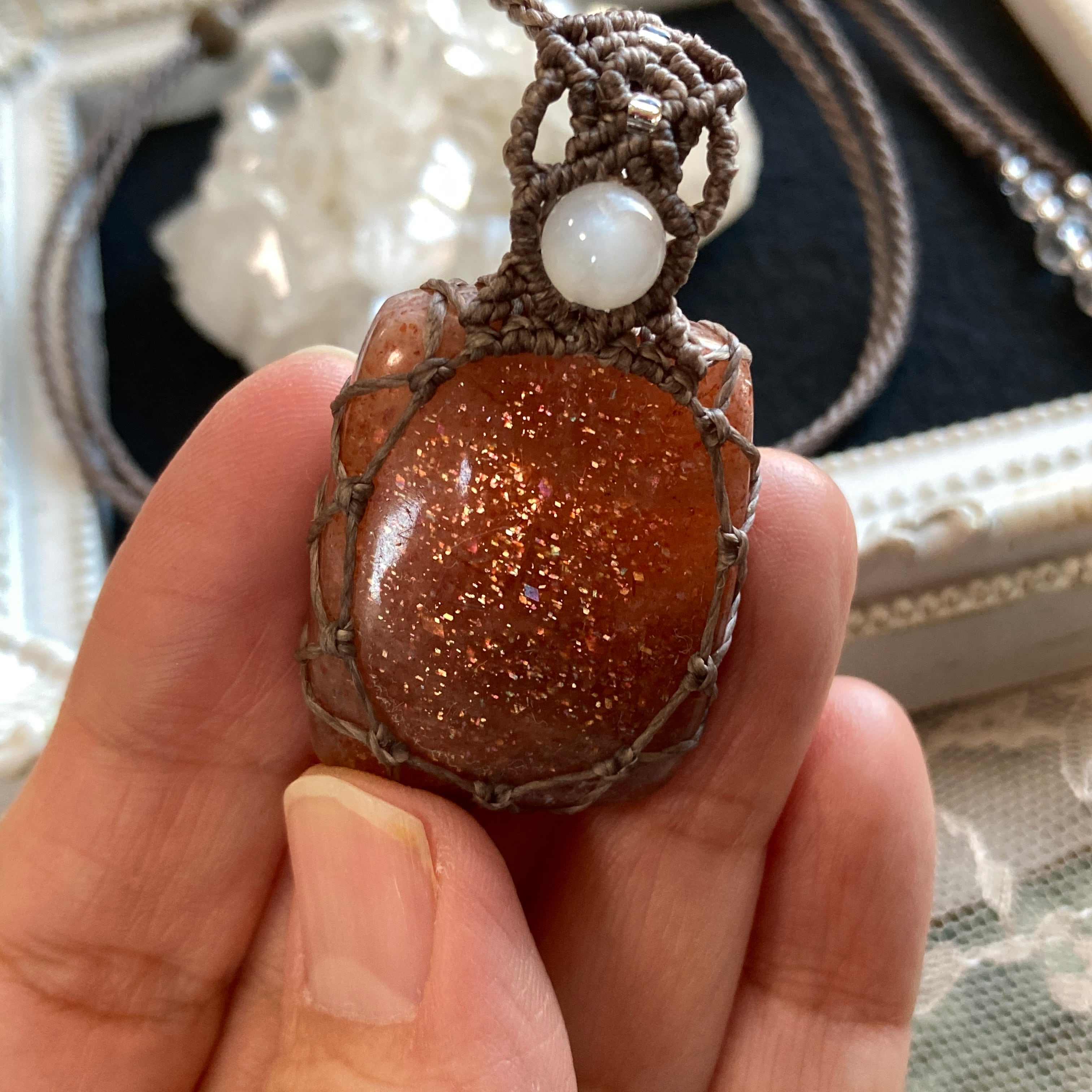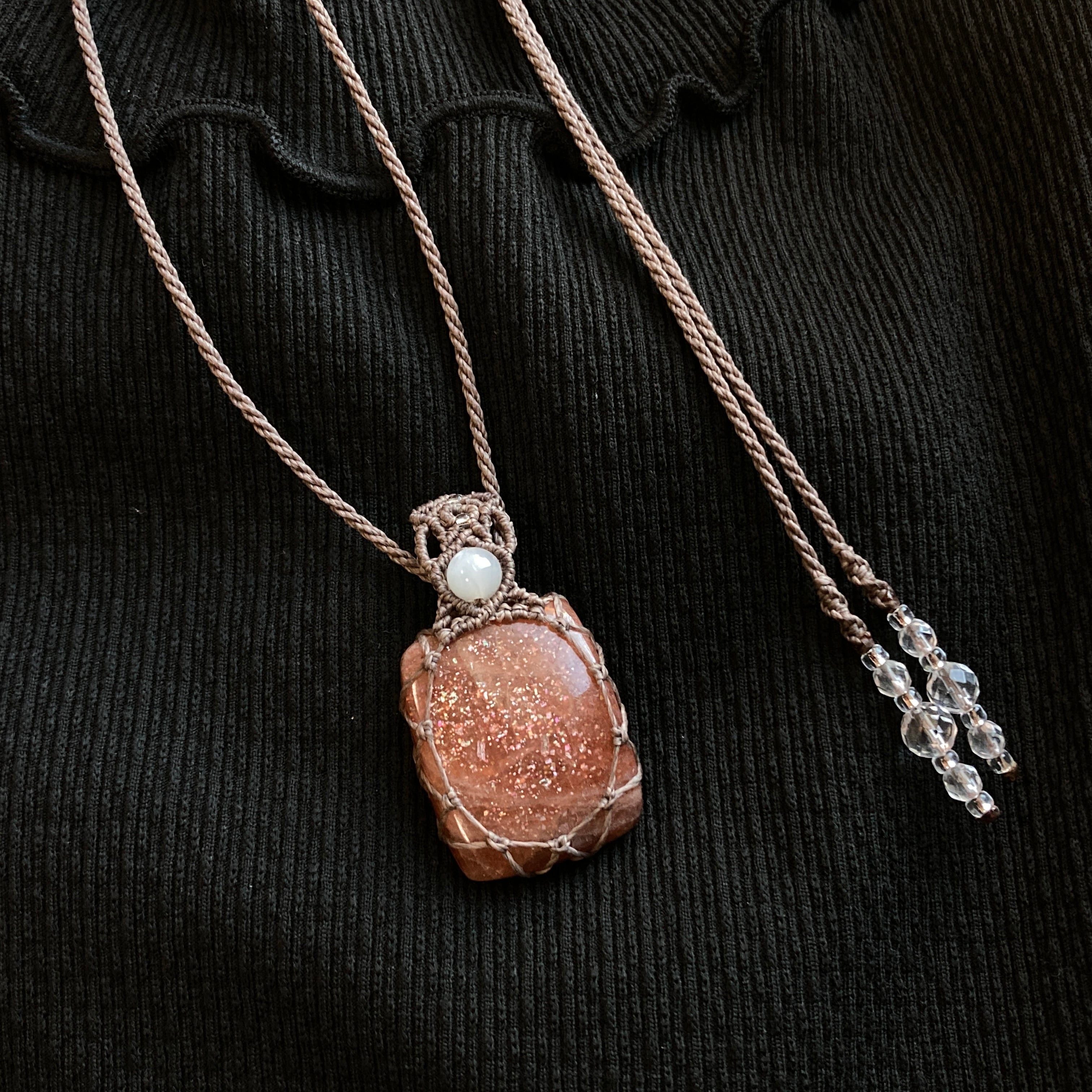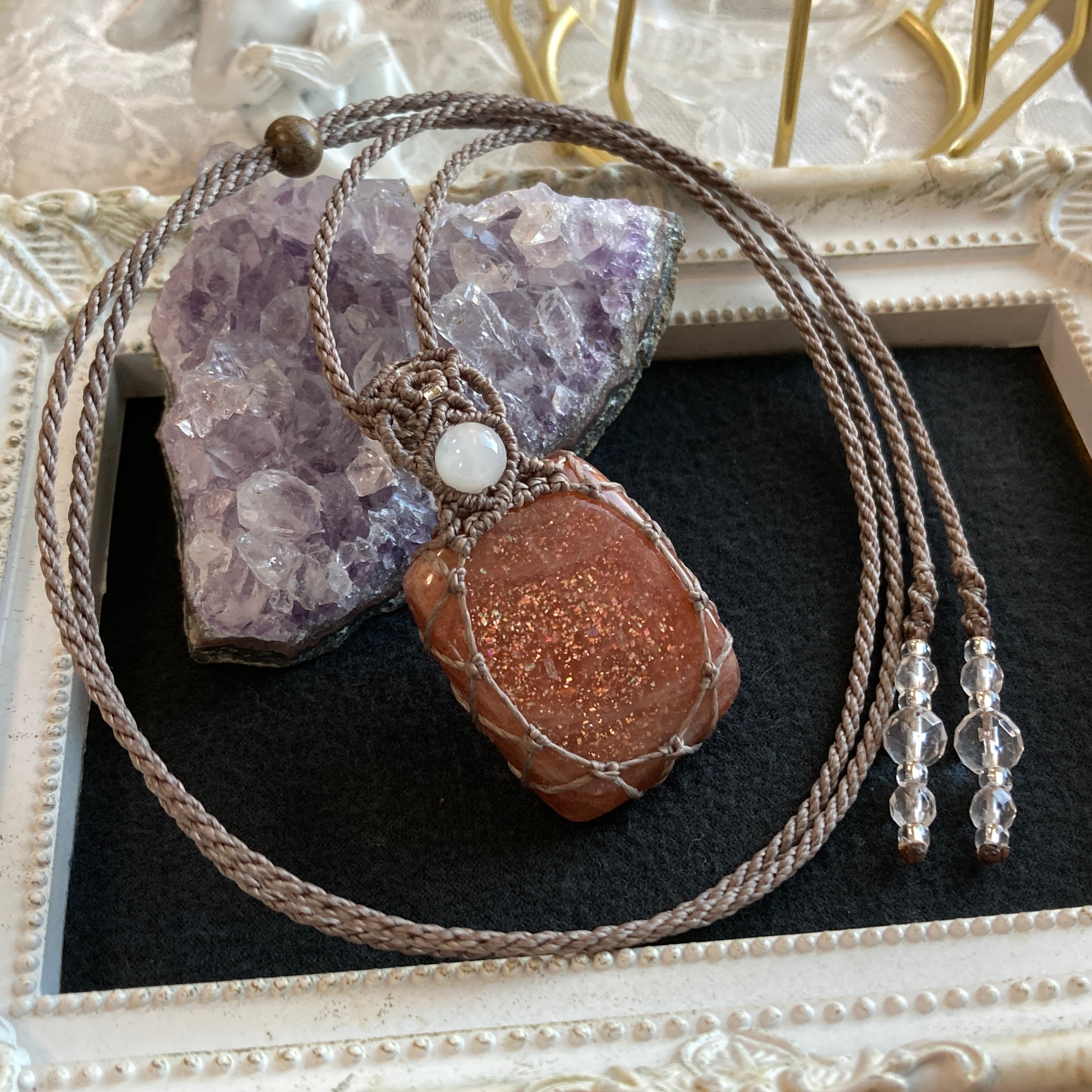 サンストーン マクラメネックレス 金属アレルギー対応 ネックレス