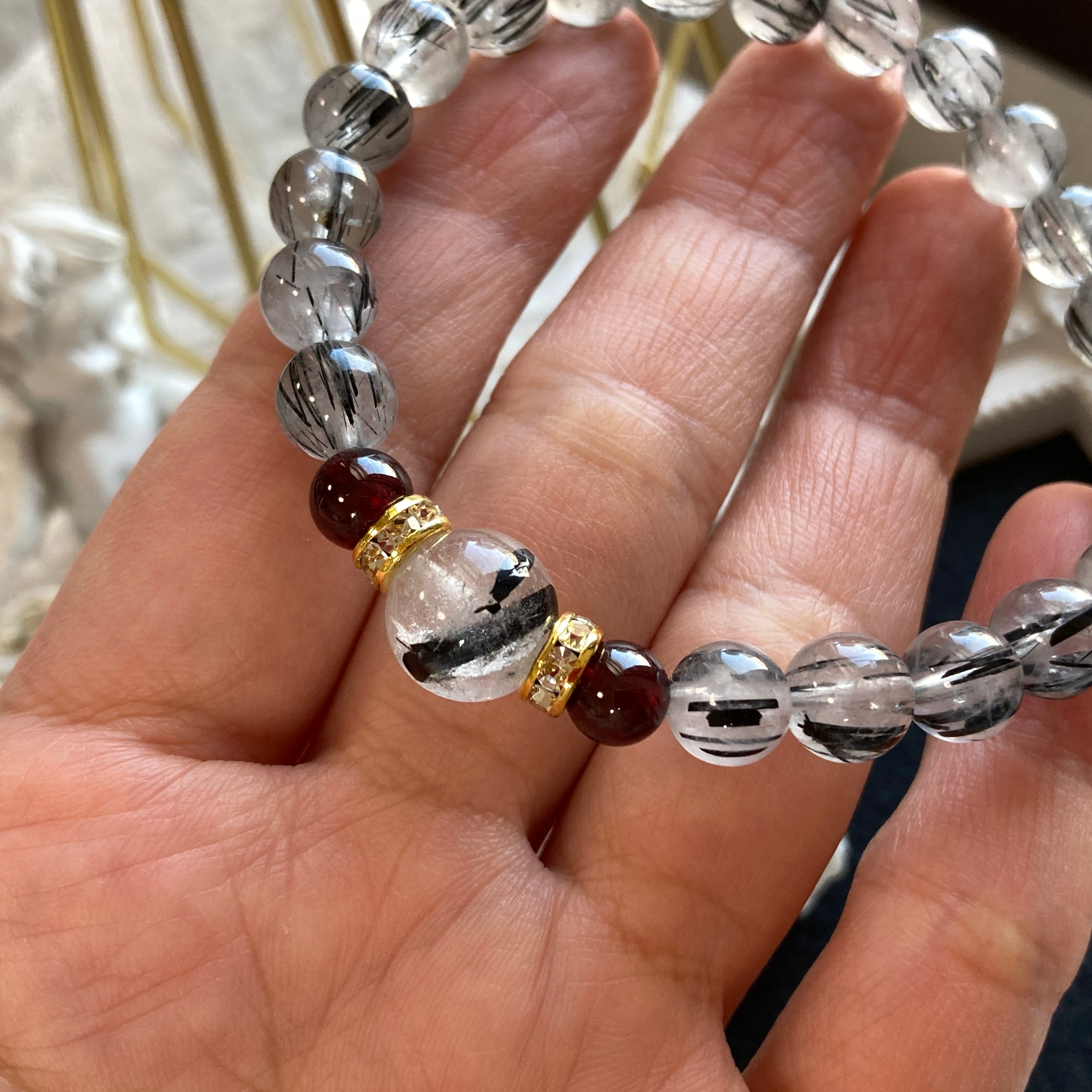 ブラックトルマリンインクォーツ×ガーネット 天然石ブレスレット