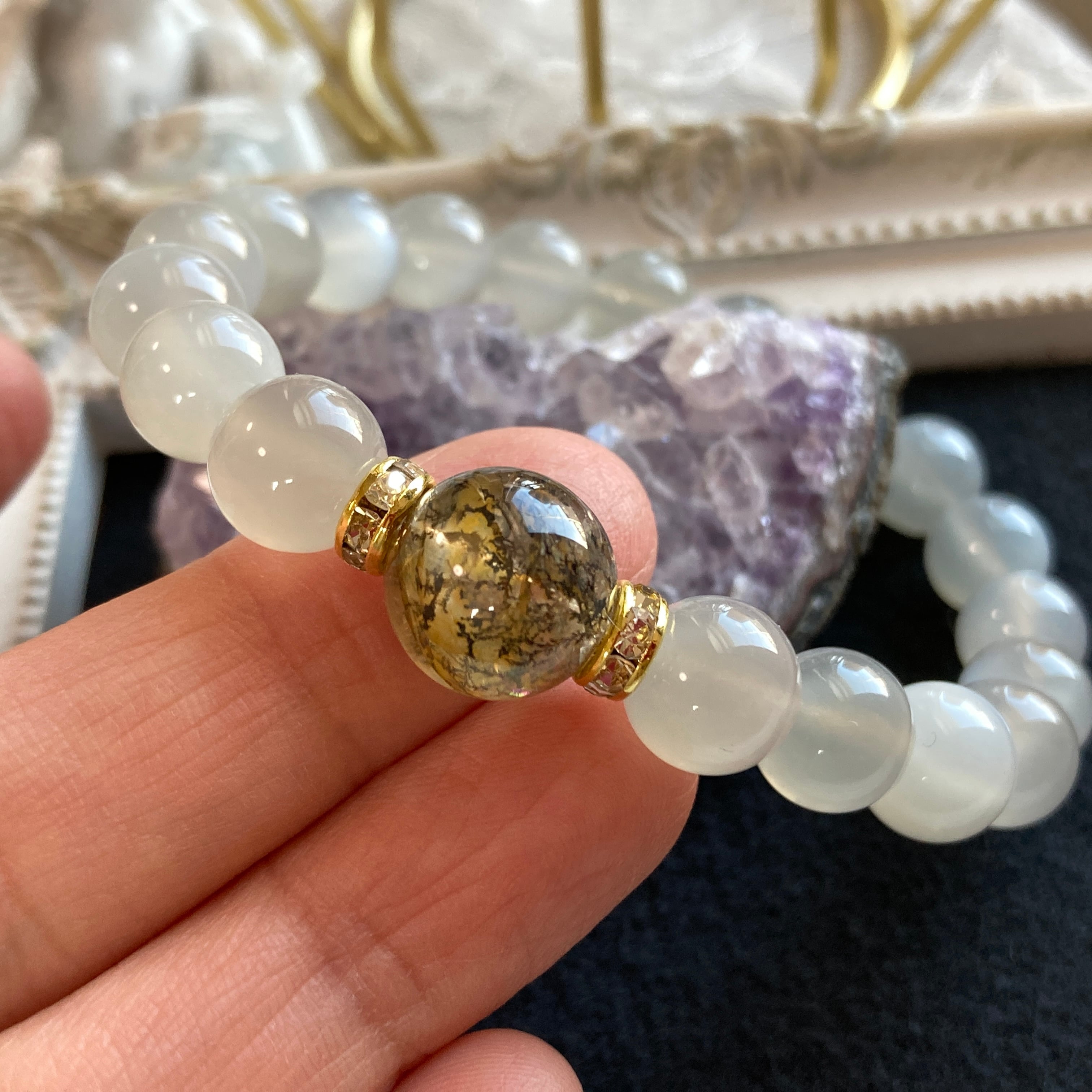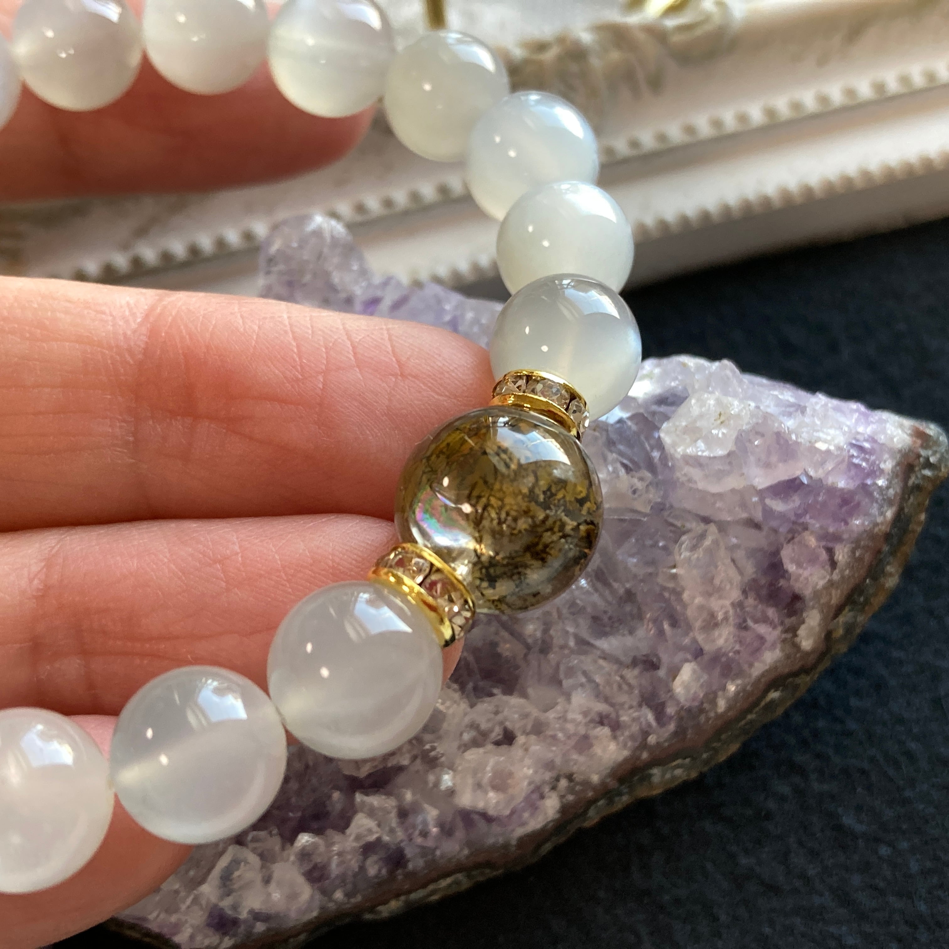 デンドリティッククォーツ×ムーンストーン 天然石ブレスレット・パワーストーンブレスレット