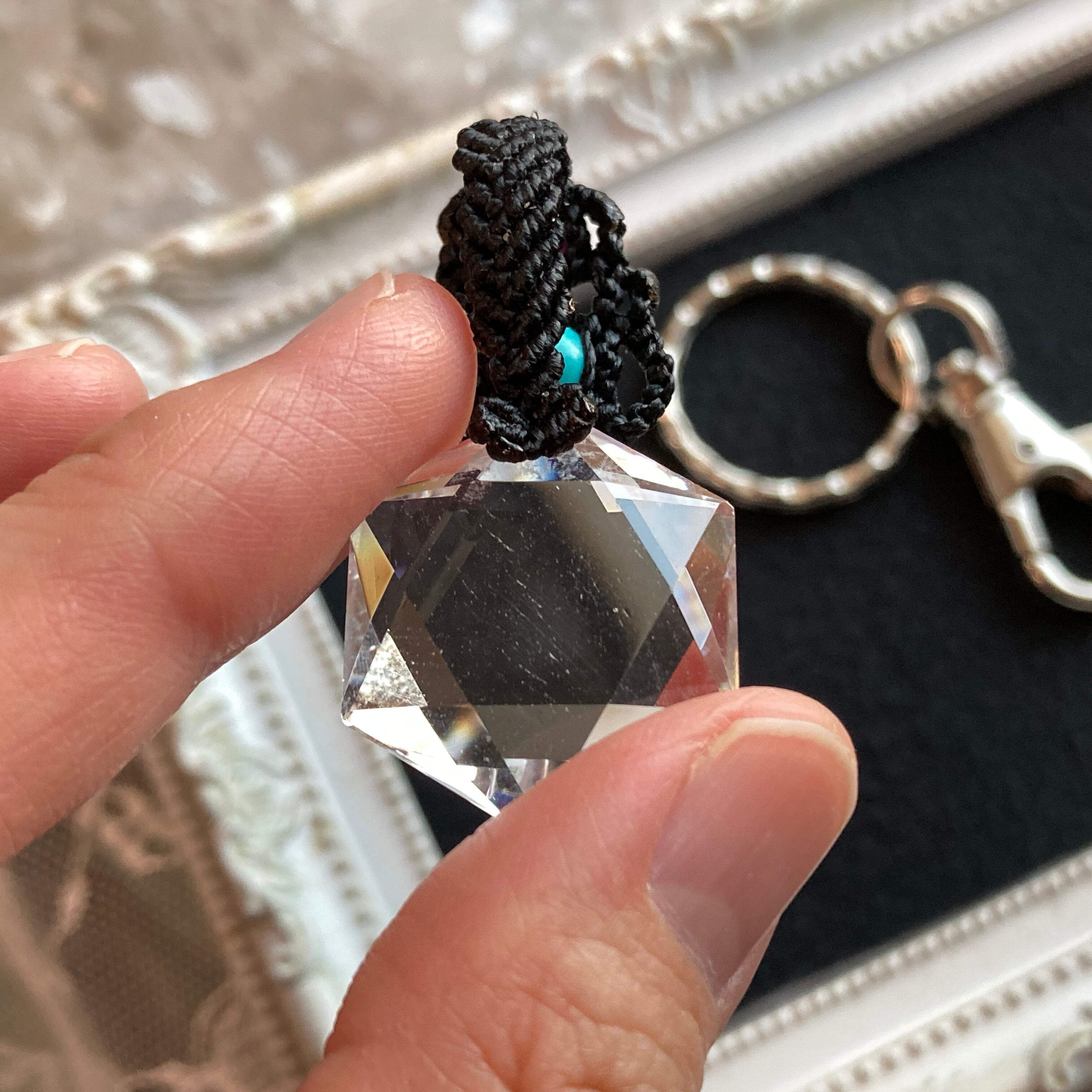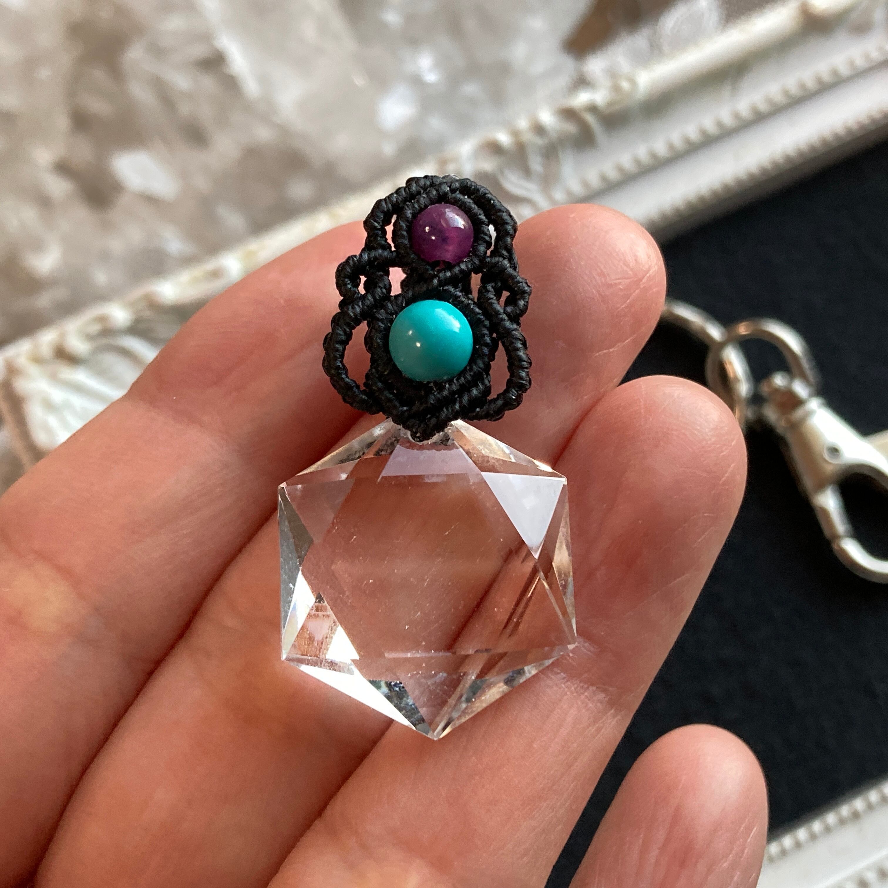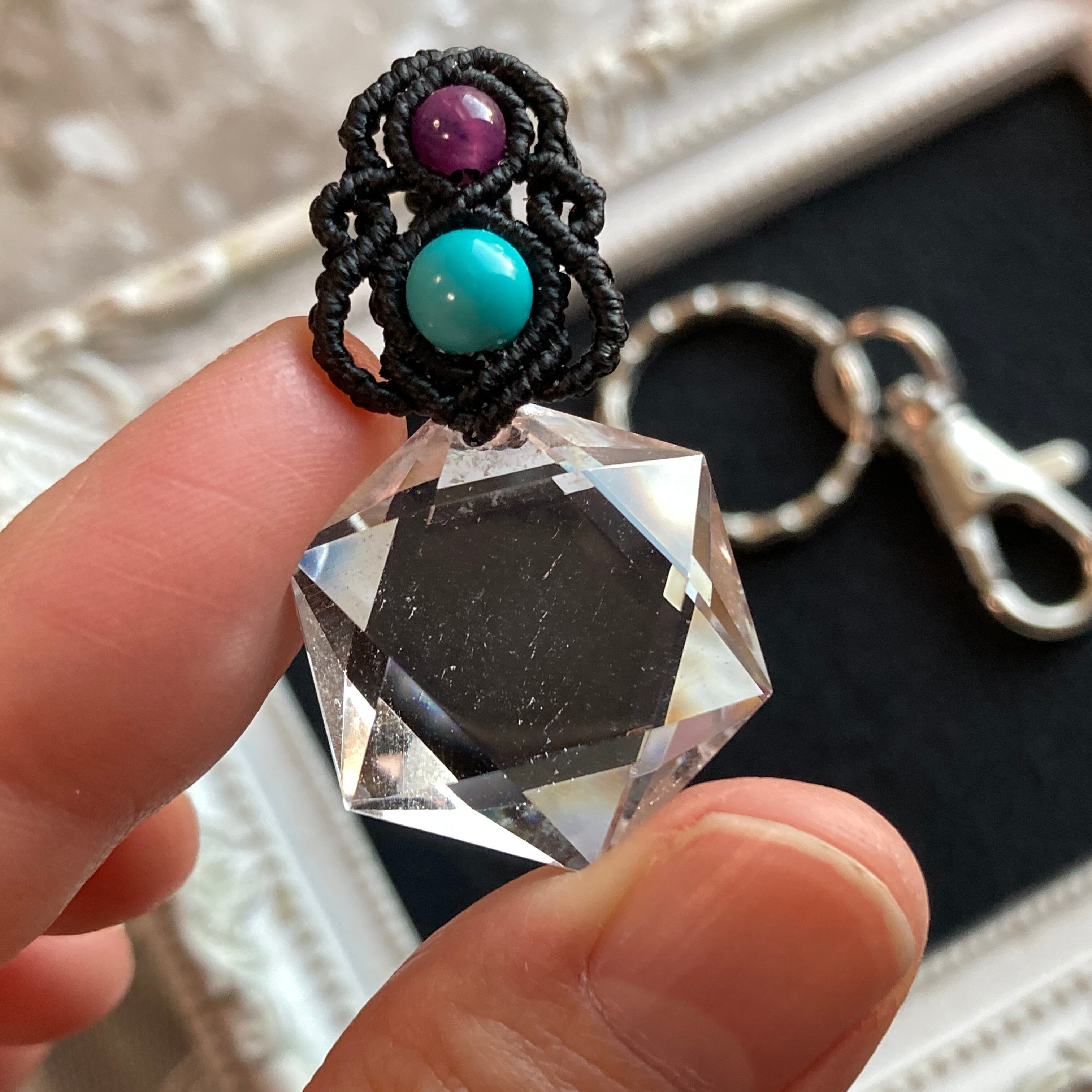 天然水晶六芒星カット マクラメ編み ⭐︎ミニ⭐︎バッグチャーム・キーホルダー・キーリング