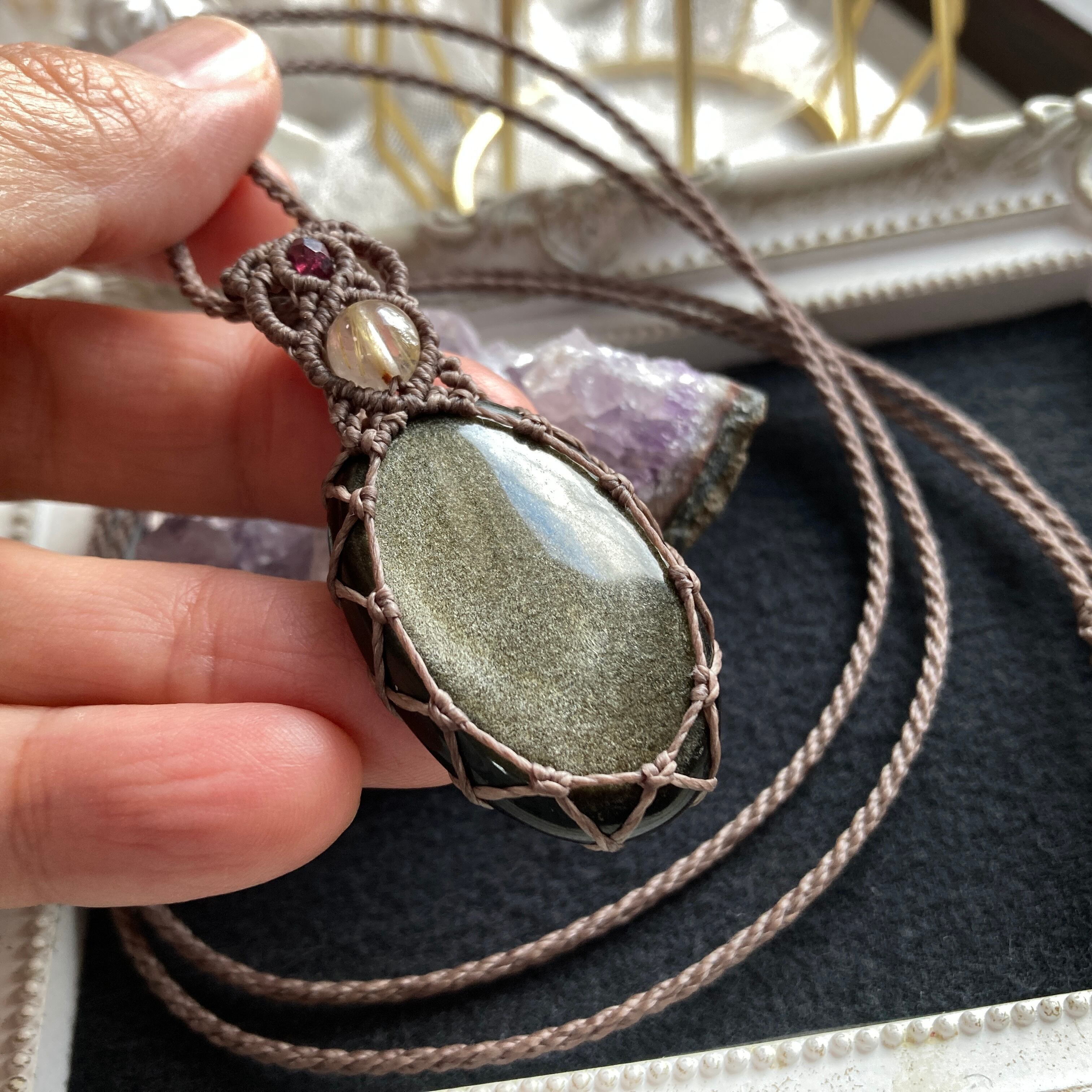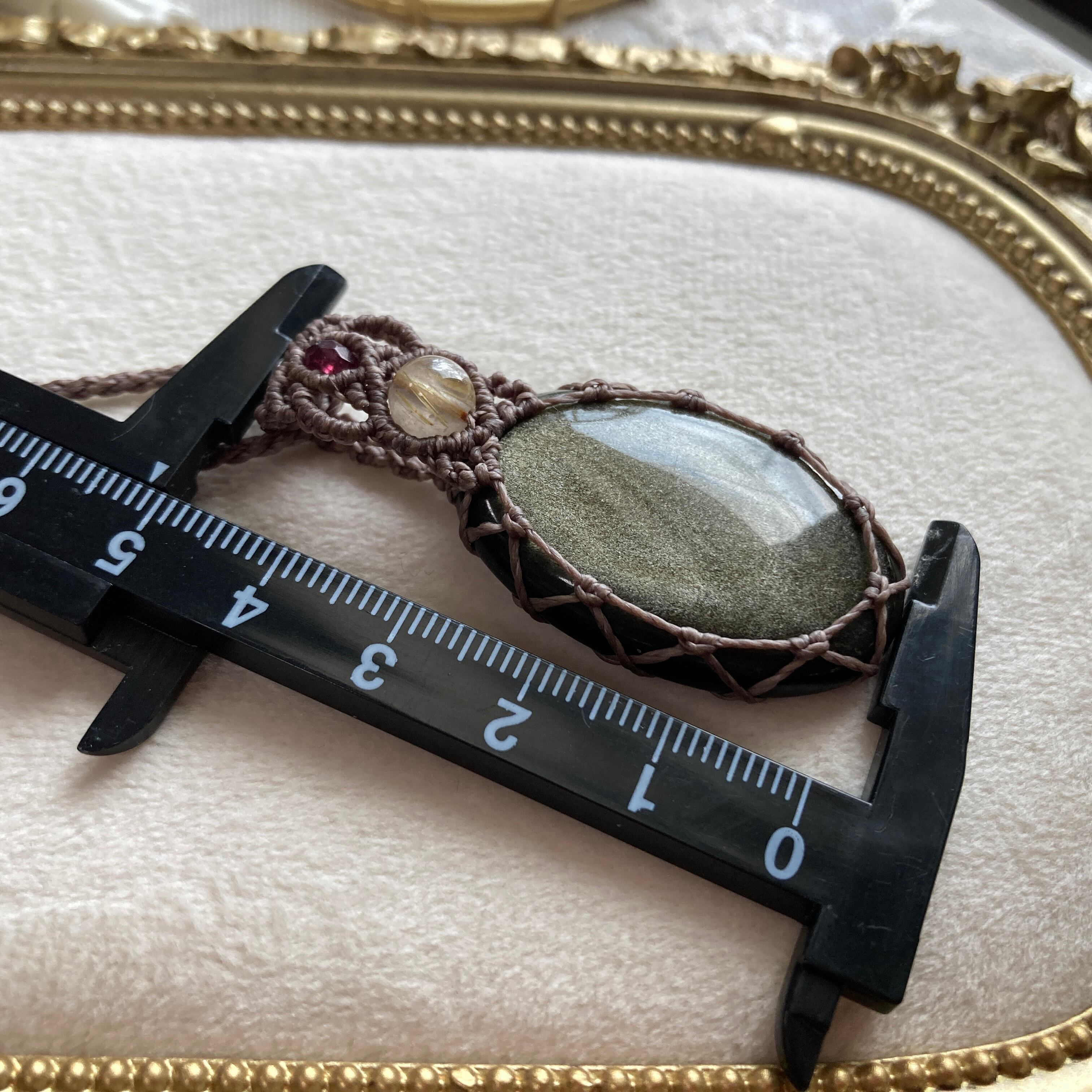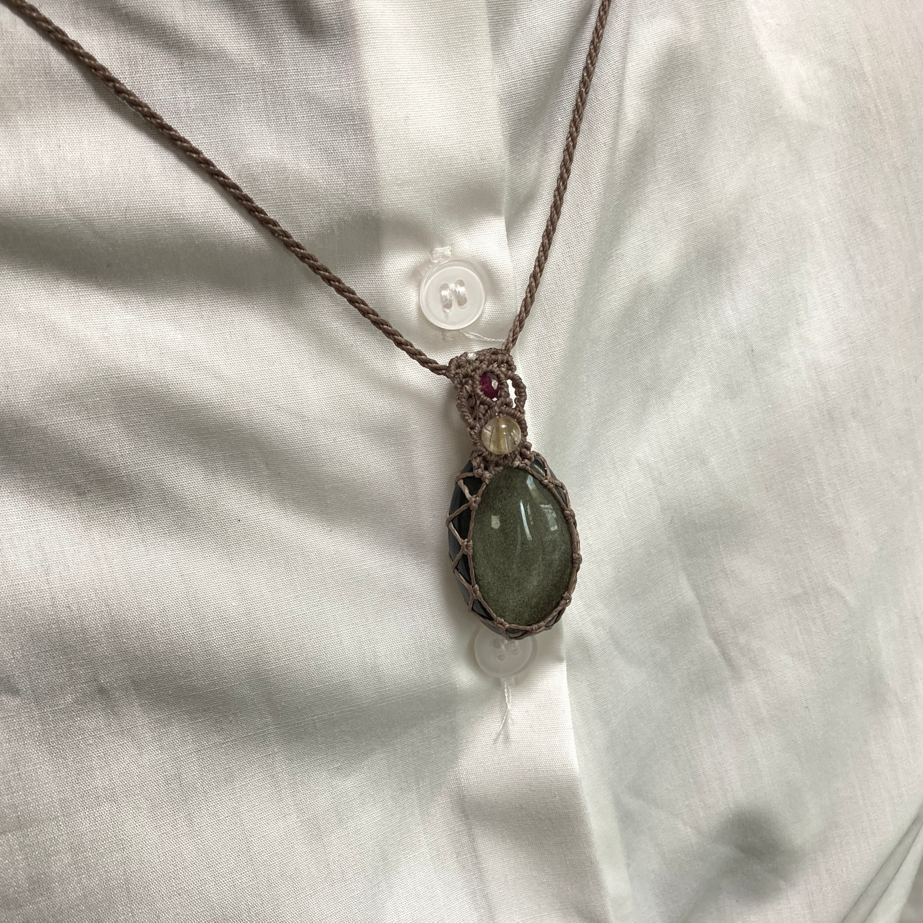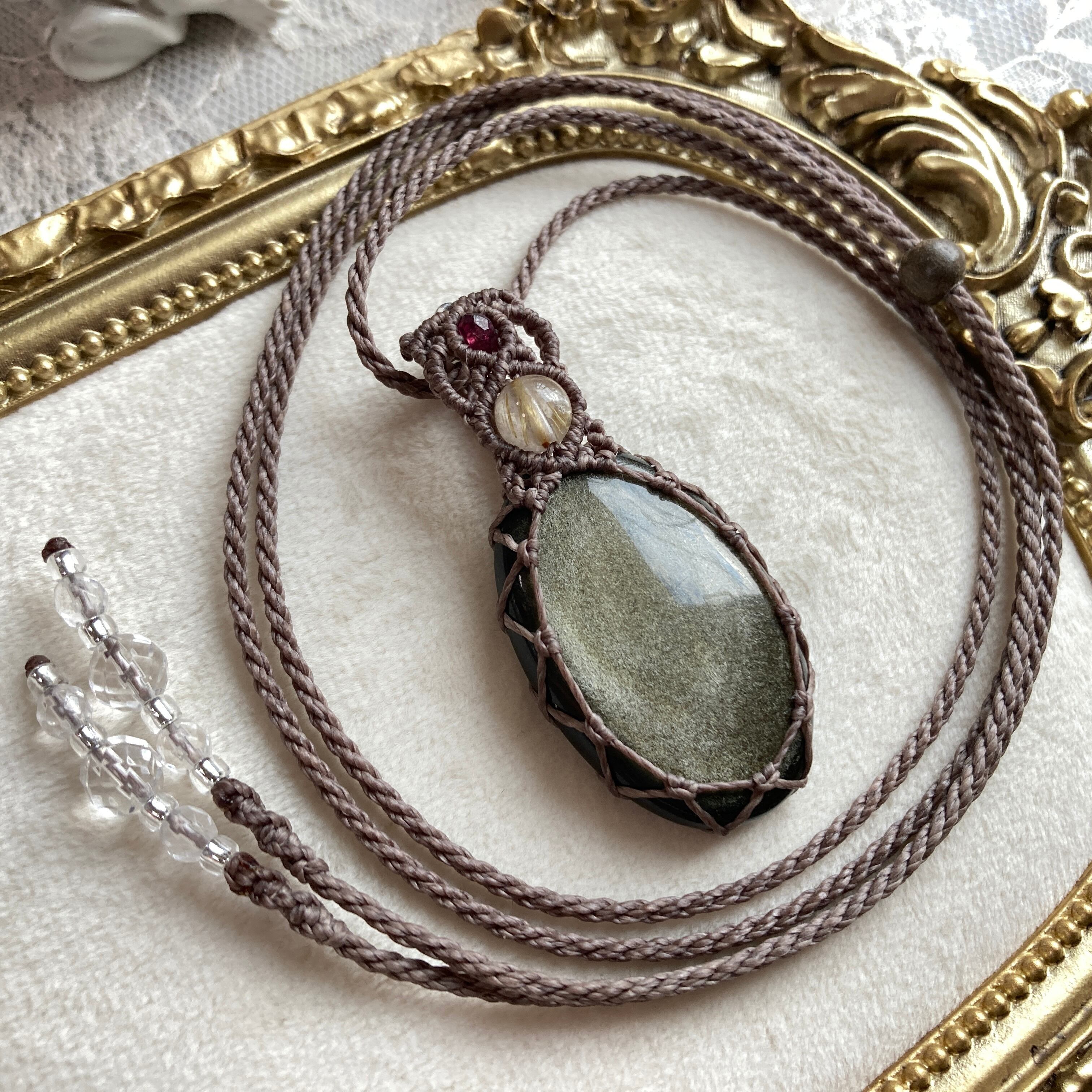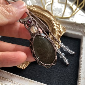 ゴールデンオブシディアン マクラメネックレス・マクラメペンダントネックレス