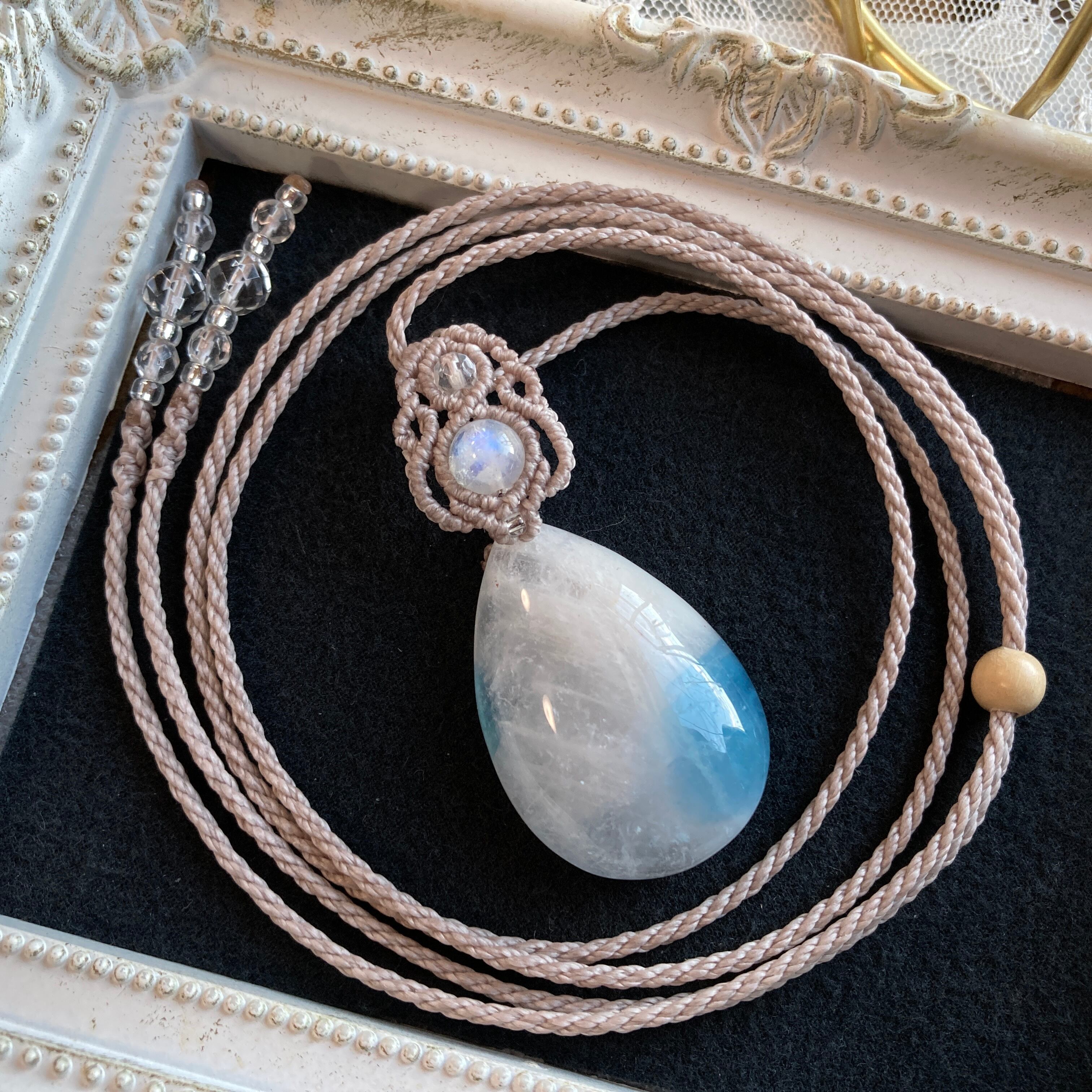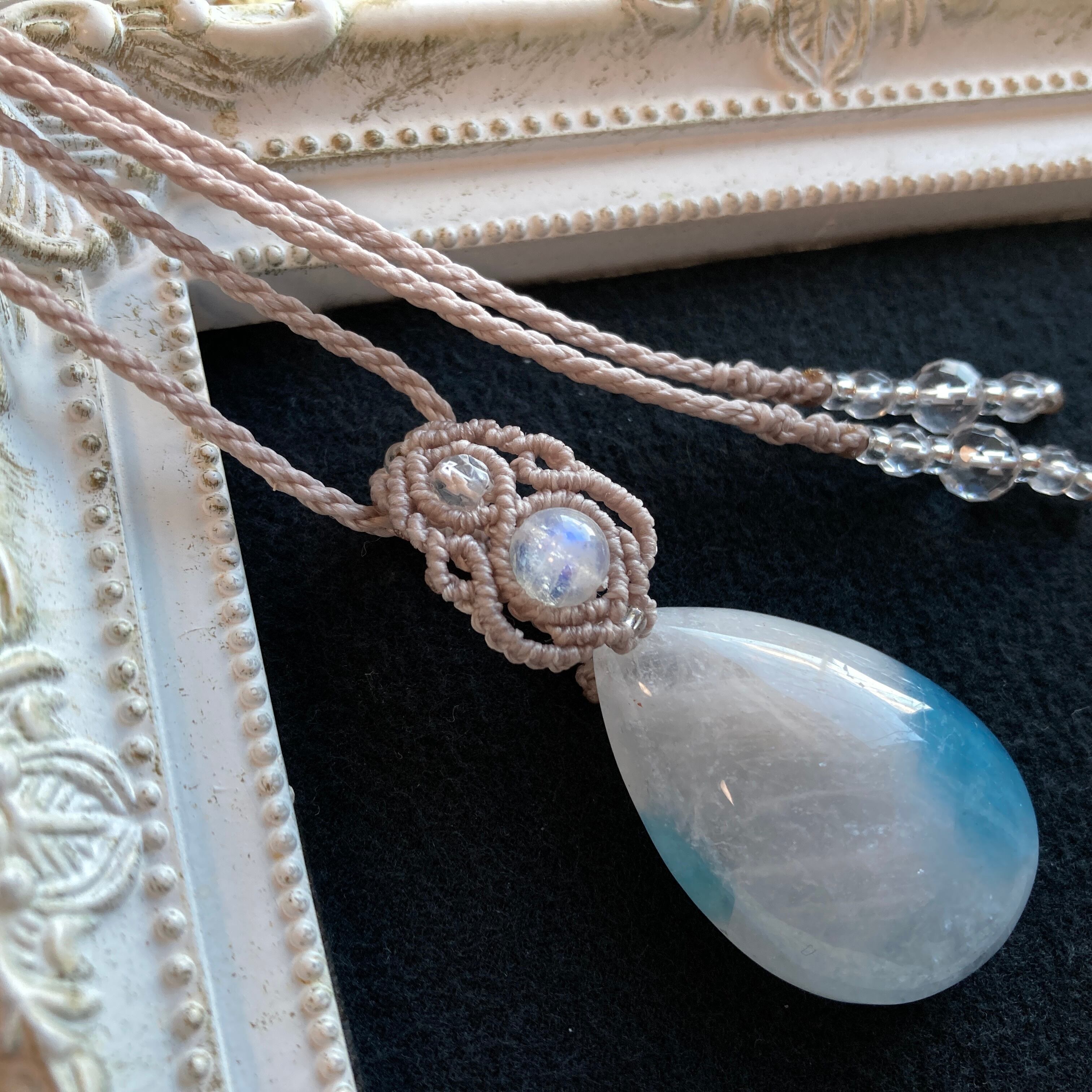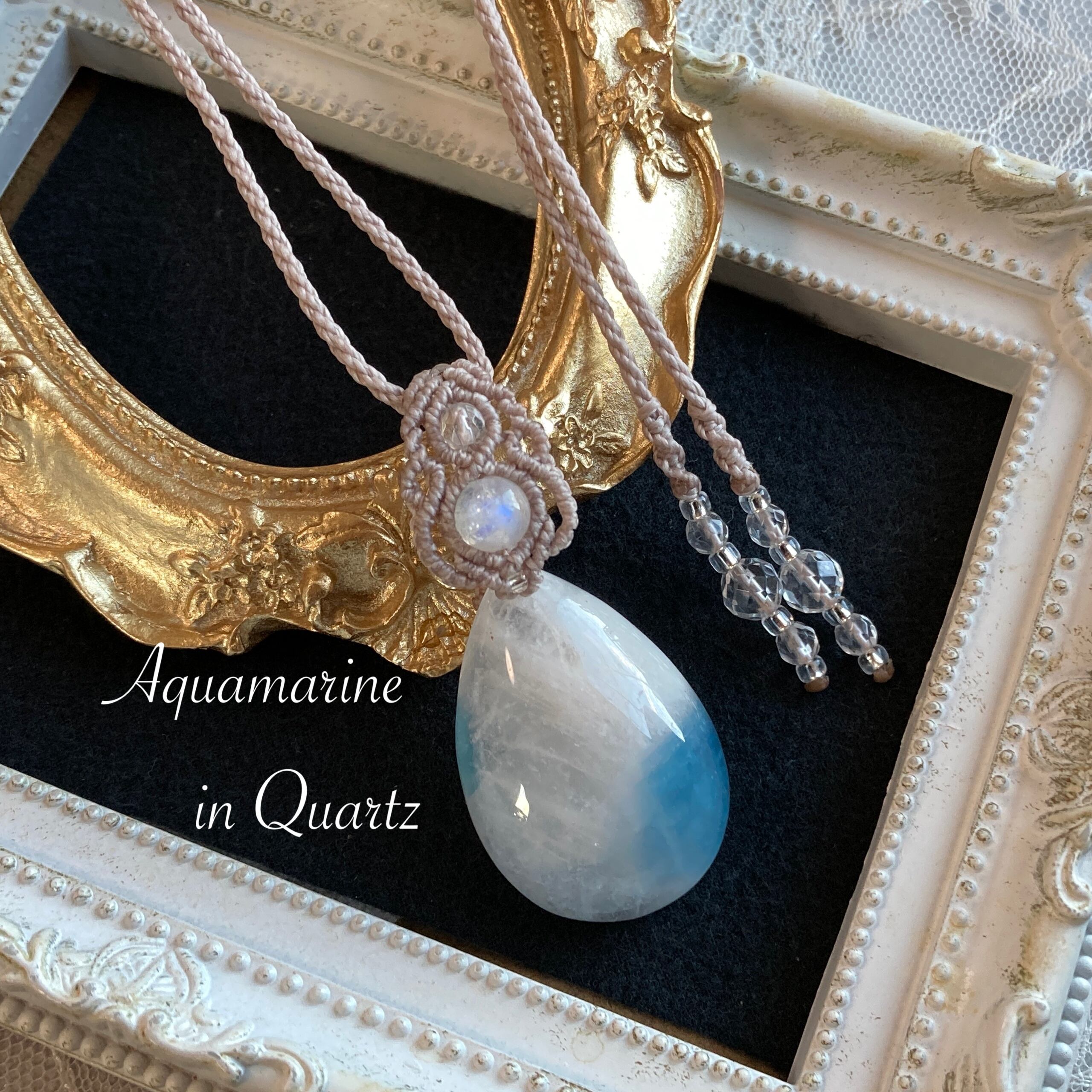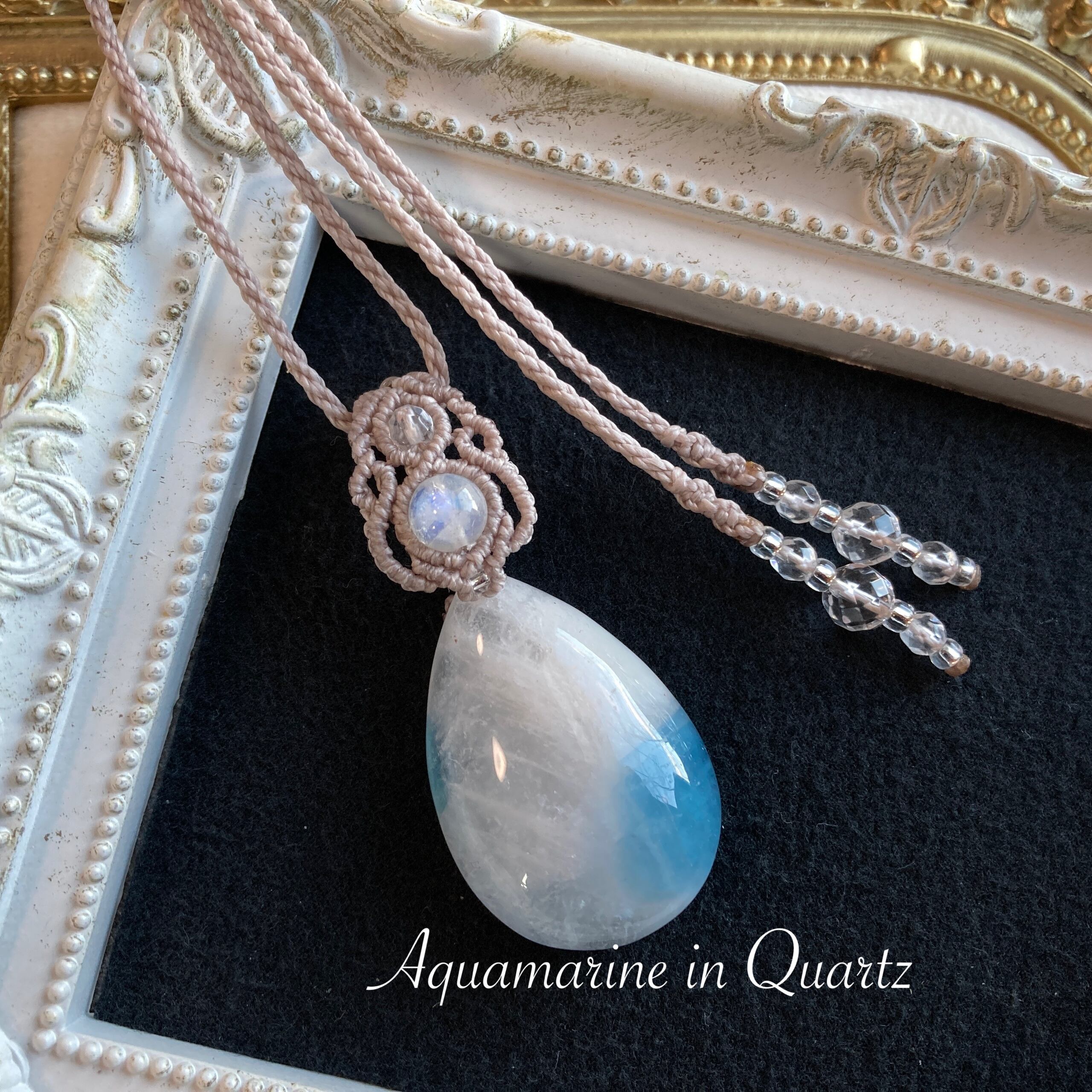 アクアマリンインクォーツ(シリカ母岩つきアクアマリン)ライトカラー⭐︎マクラメネックレス・マクラメペンダントネックレス