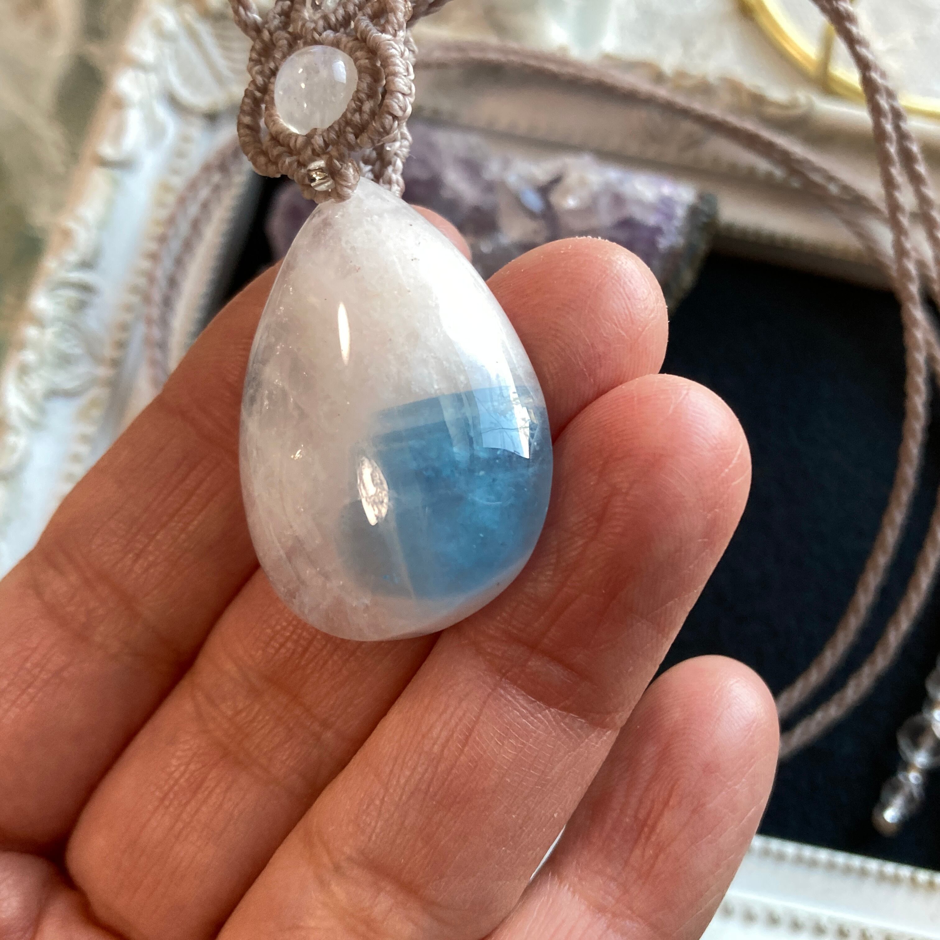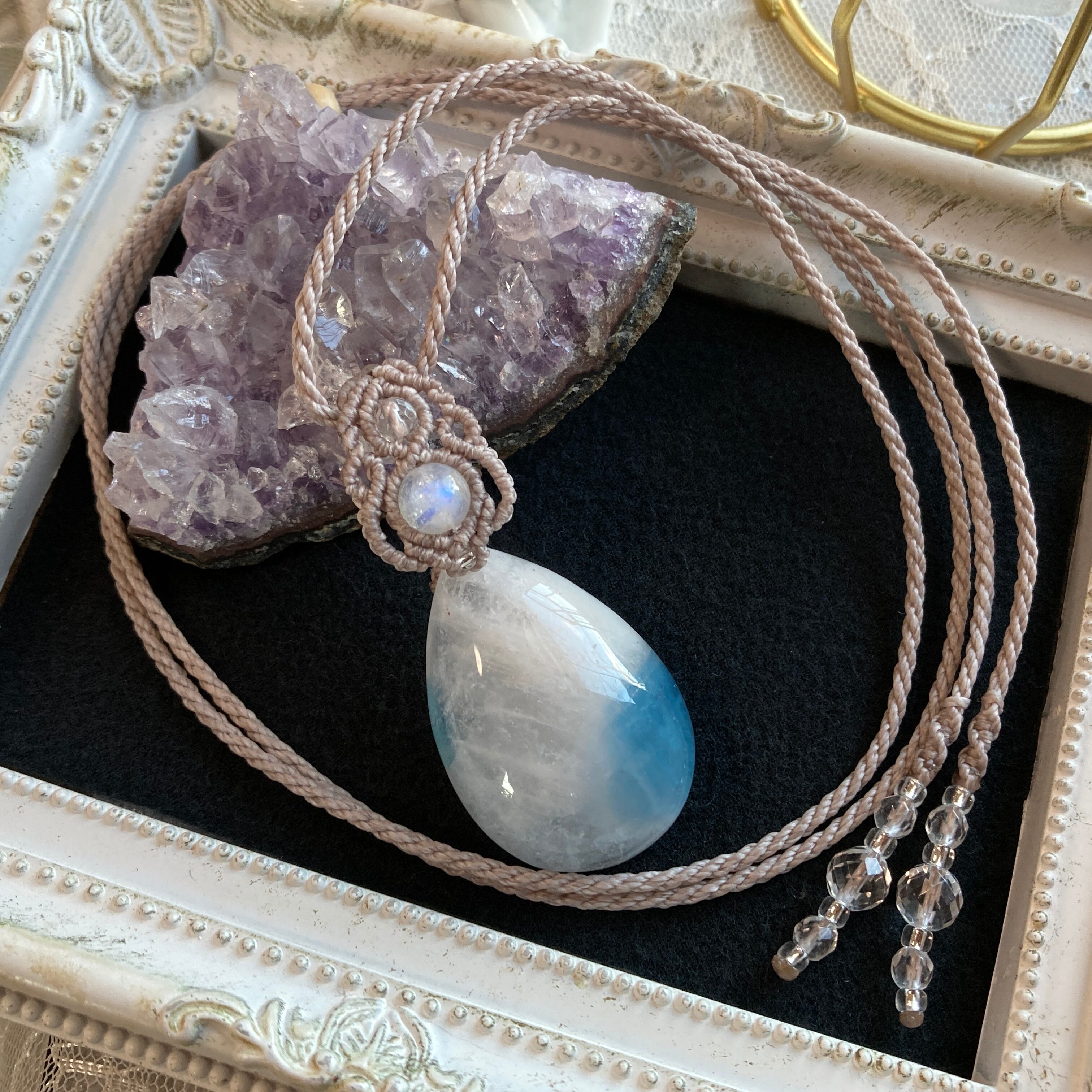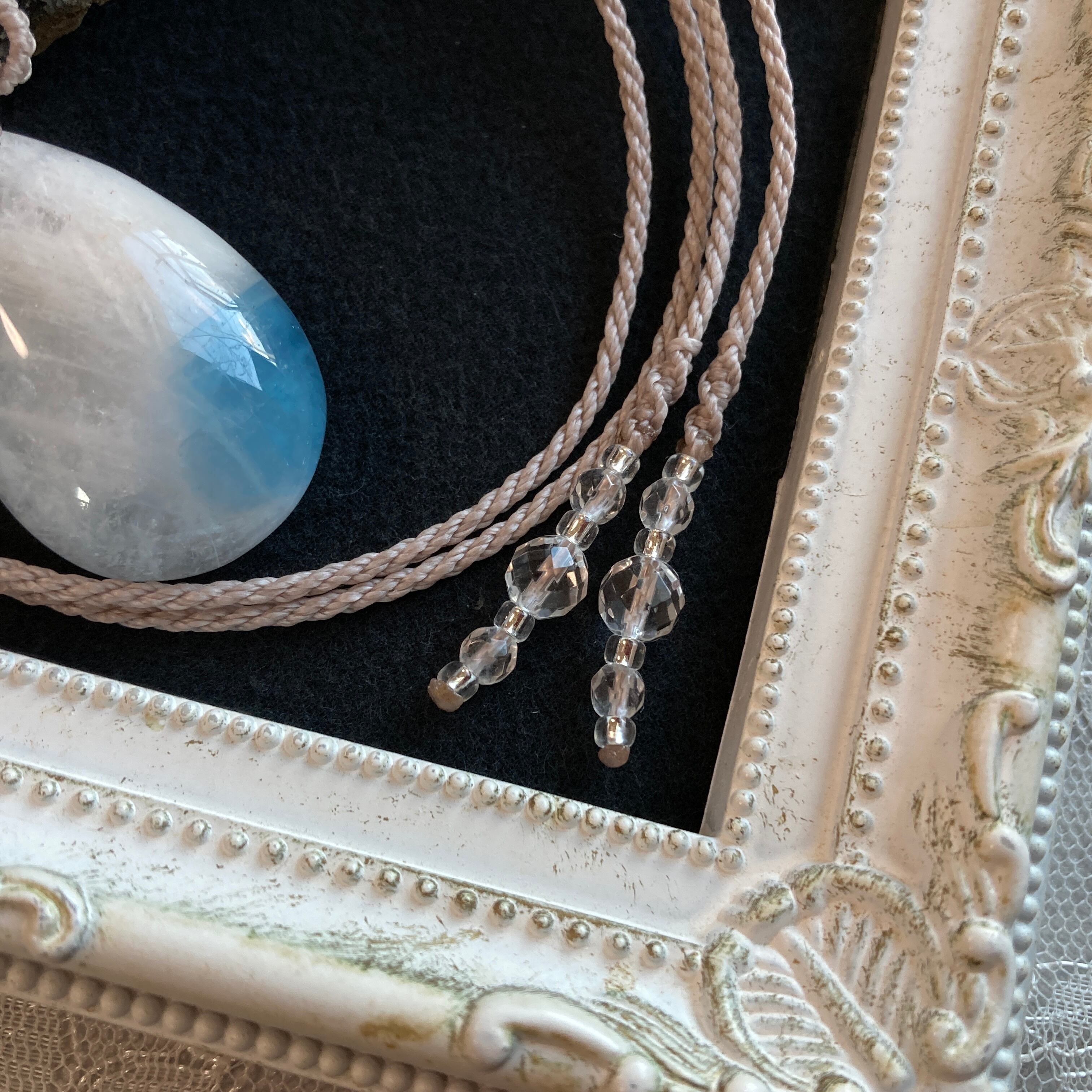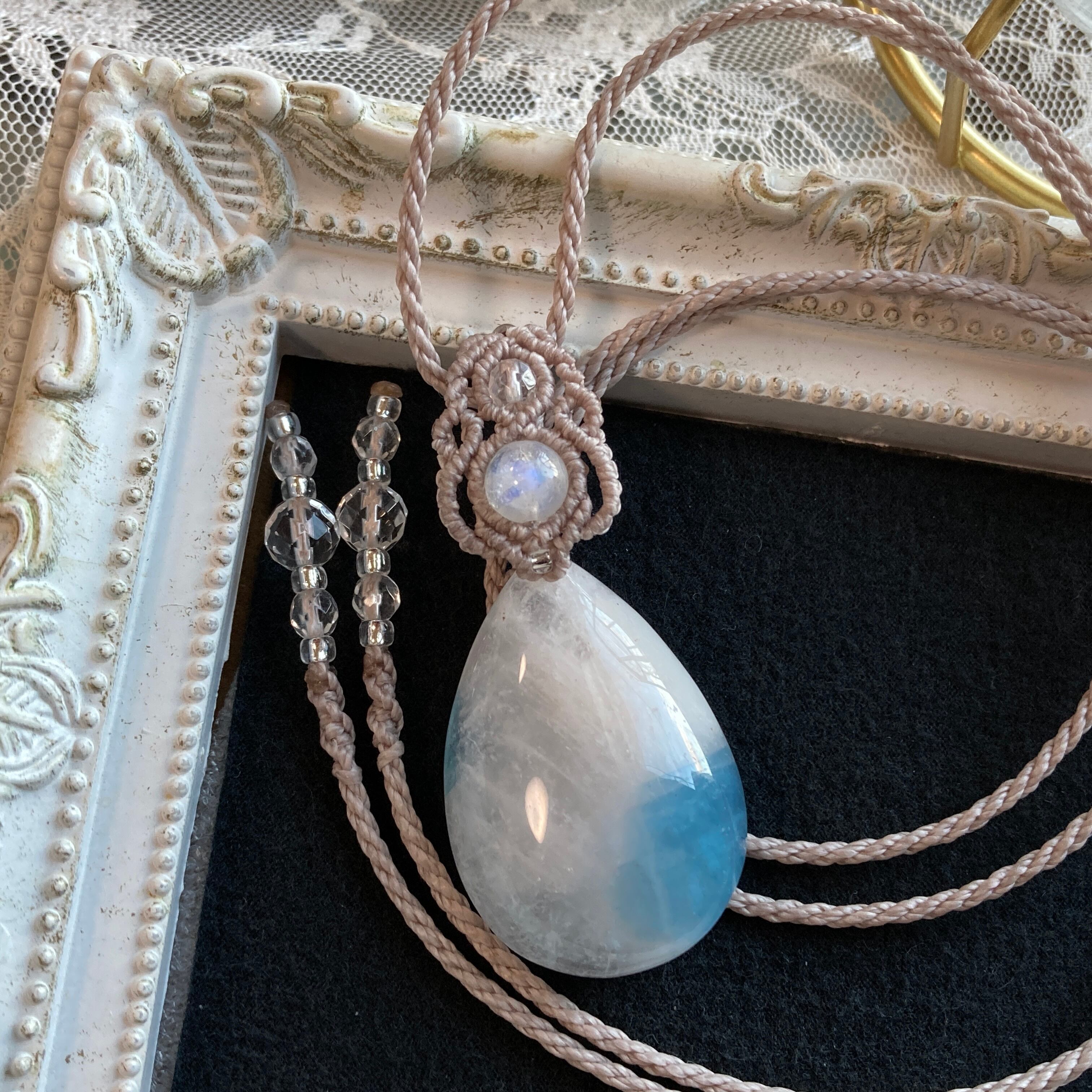 アクアマリンインクォーツ(シリカ母岩つきアクアマリン)ライトカラー⭐︎マクラメネックレス・マクラメペンダントネックレス