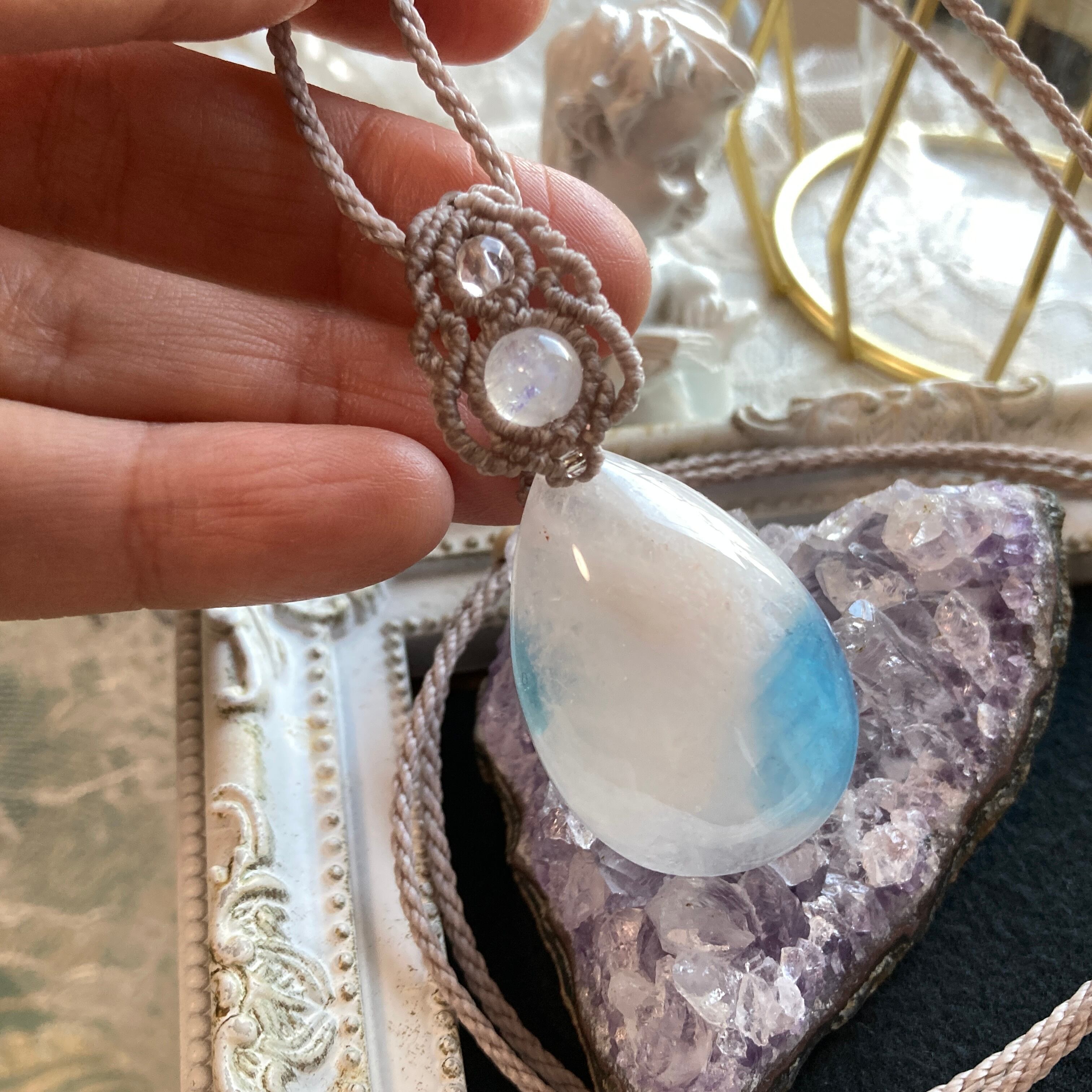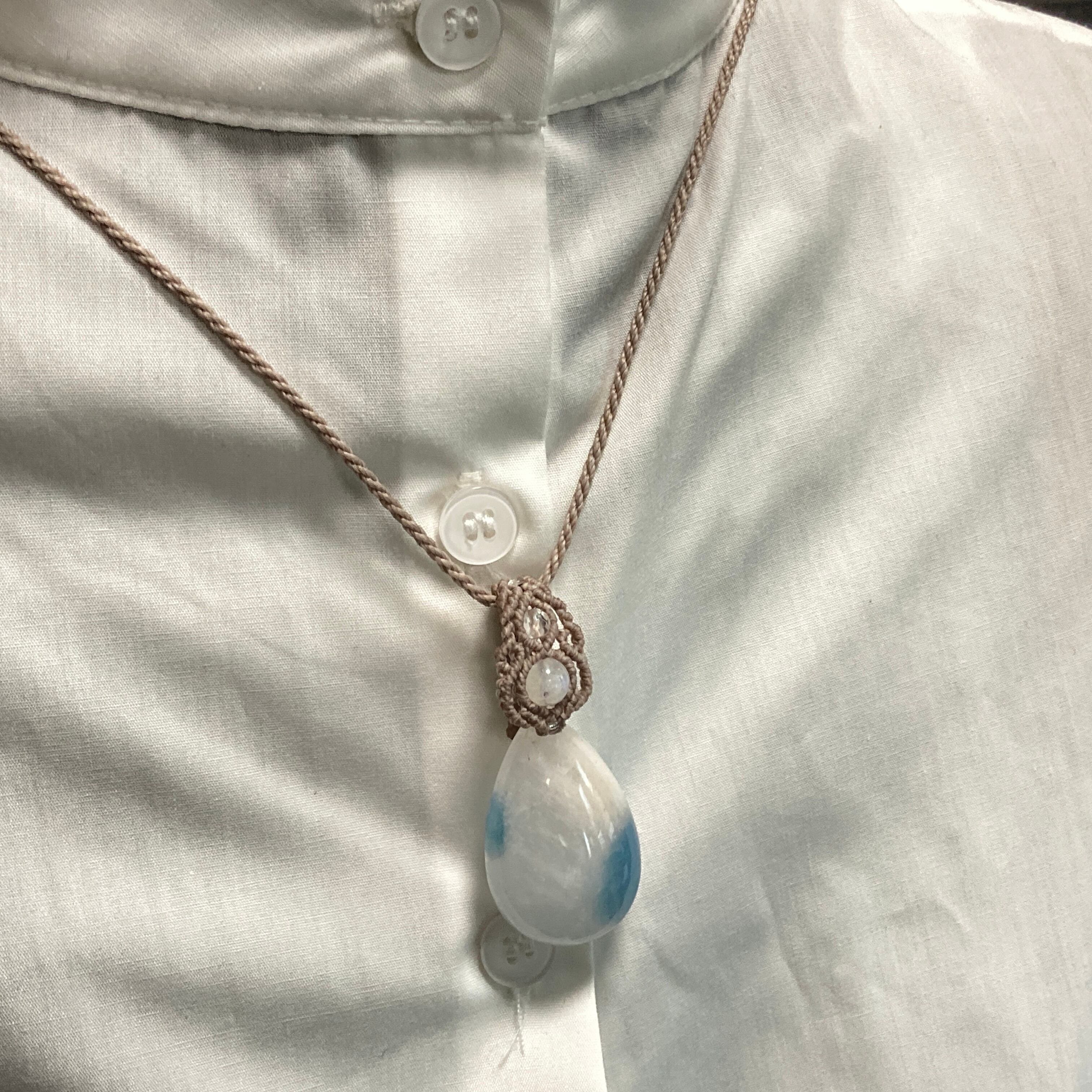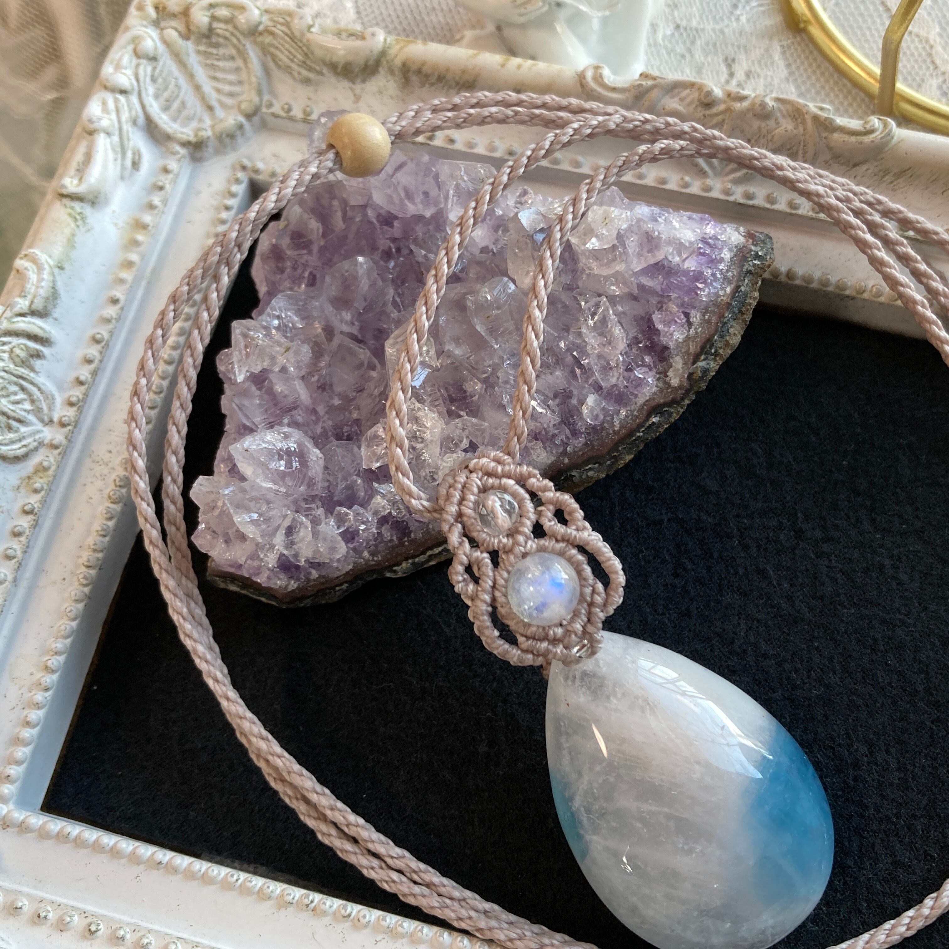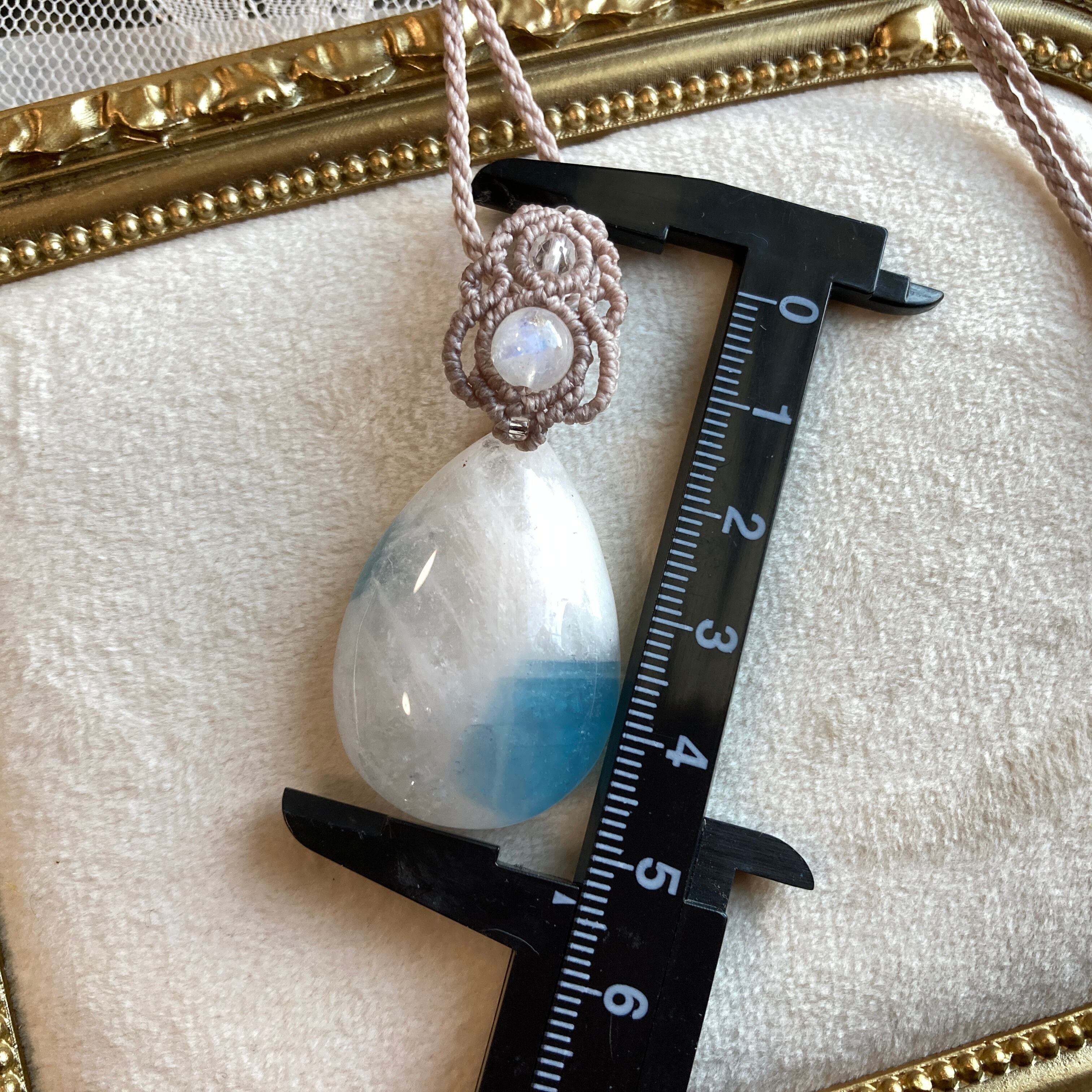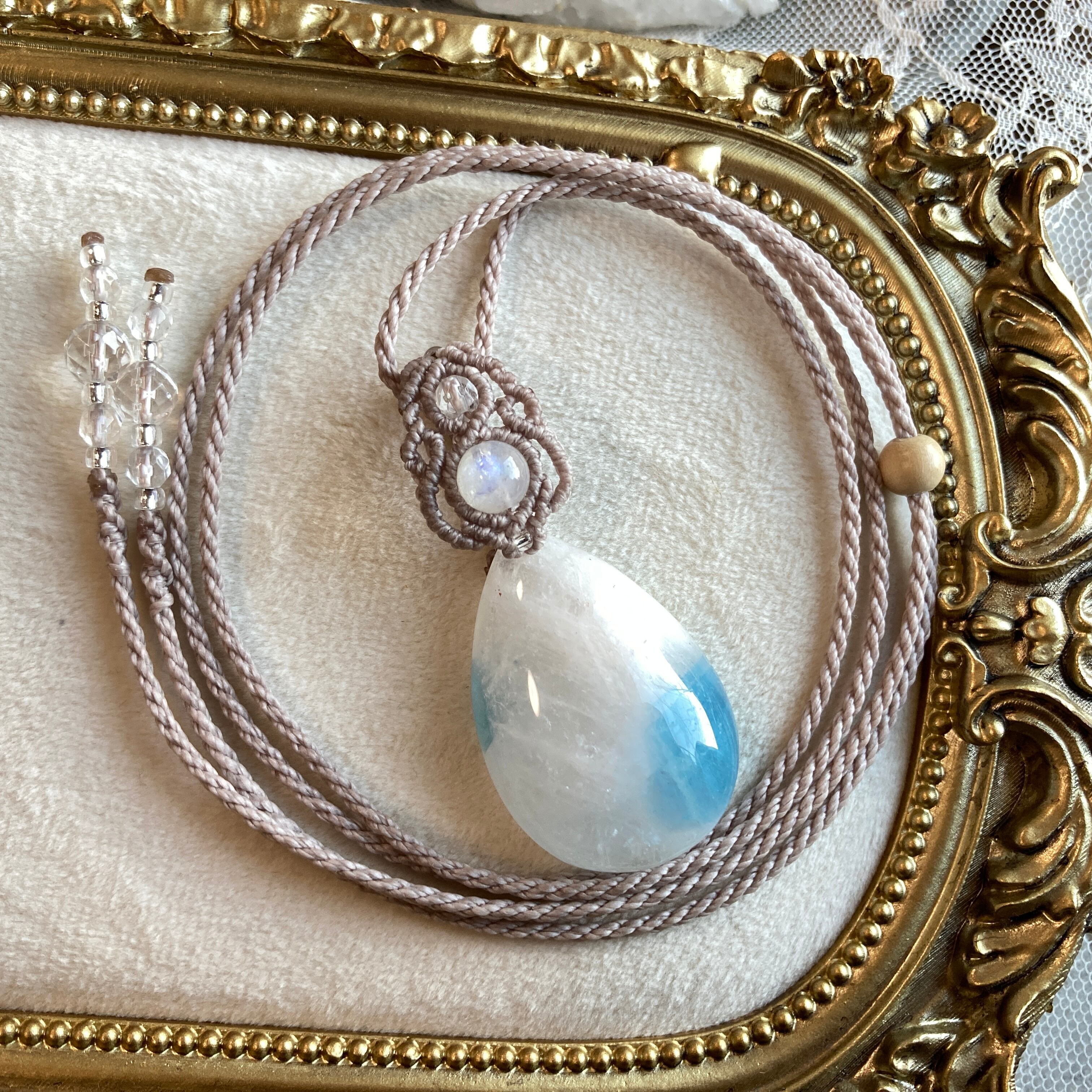 アクアマリンインクォーツ(シリカ母岩つきアクアマリン)ライトカラー⭐︎マクラメネックレス・マクラメペンダントネックレス