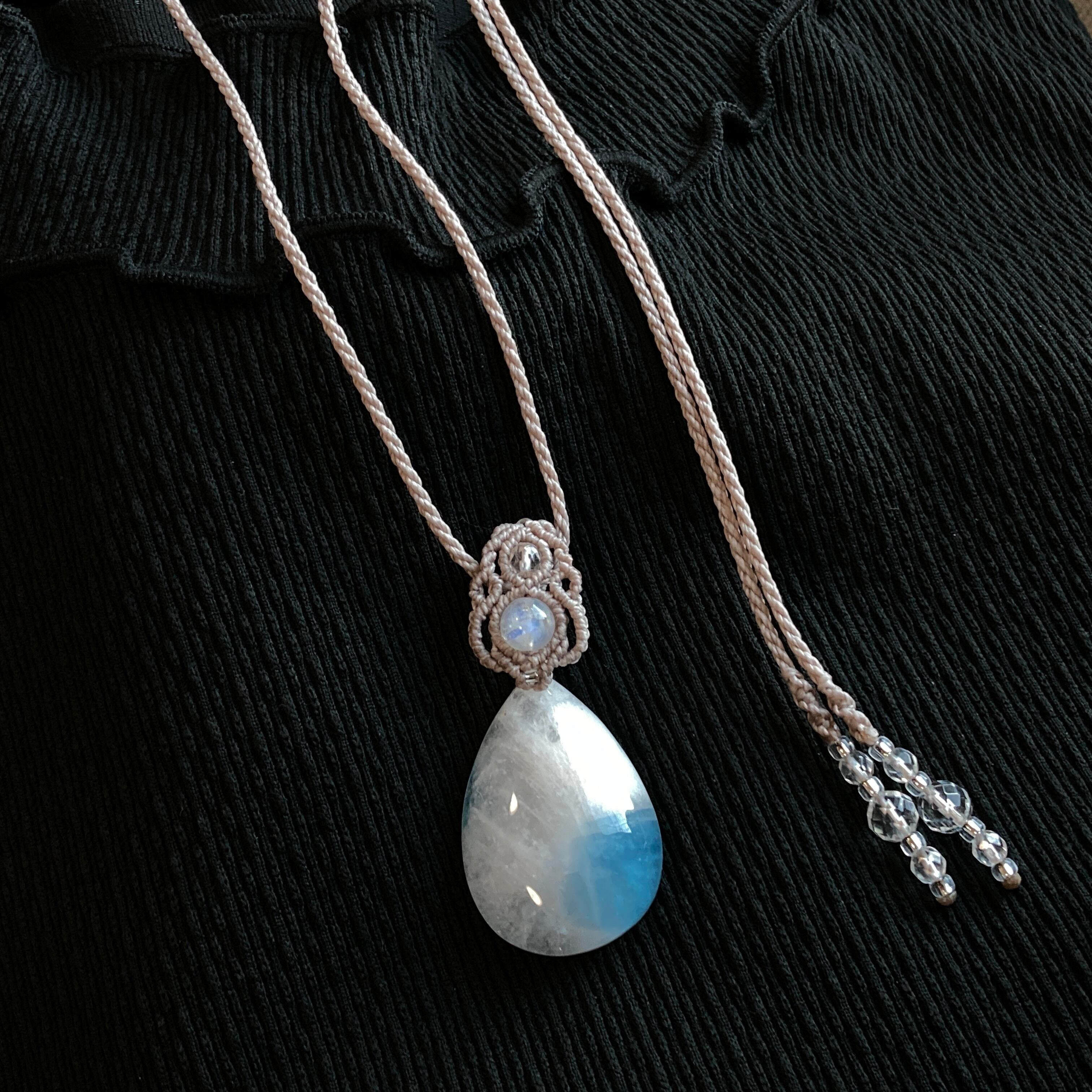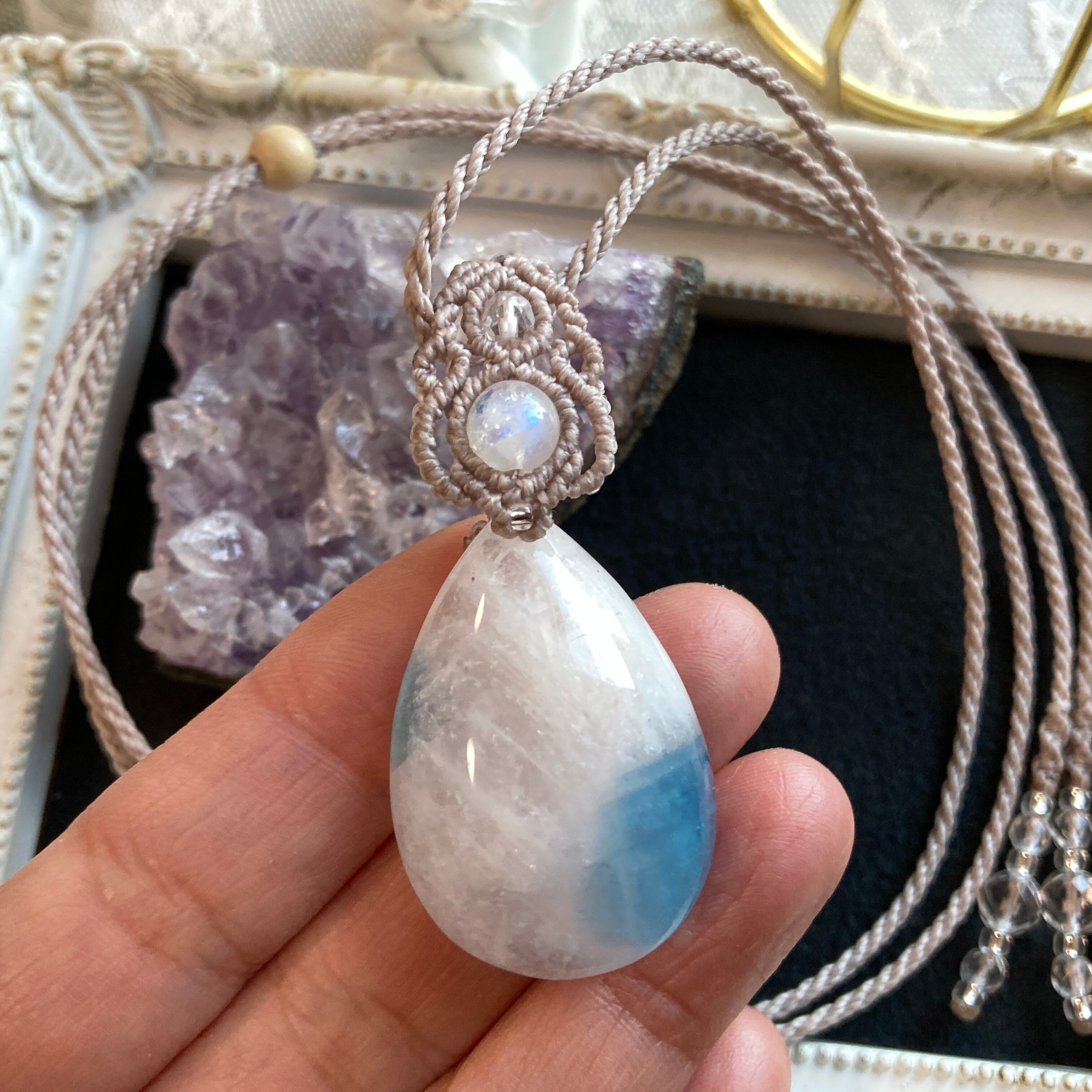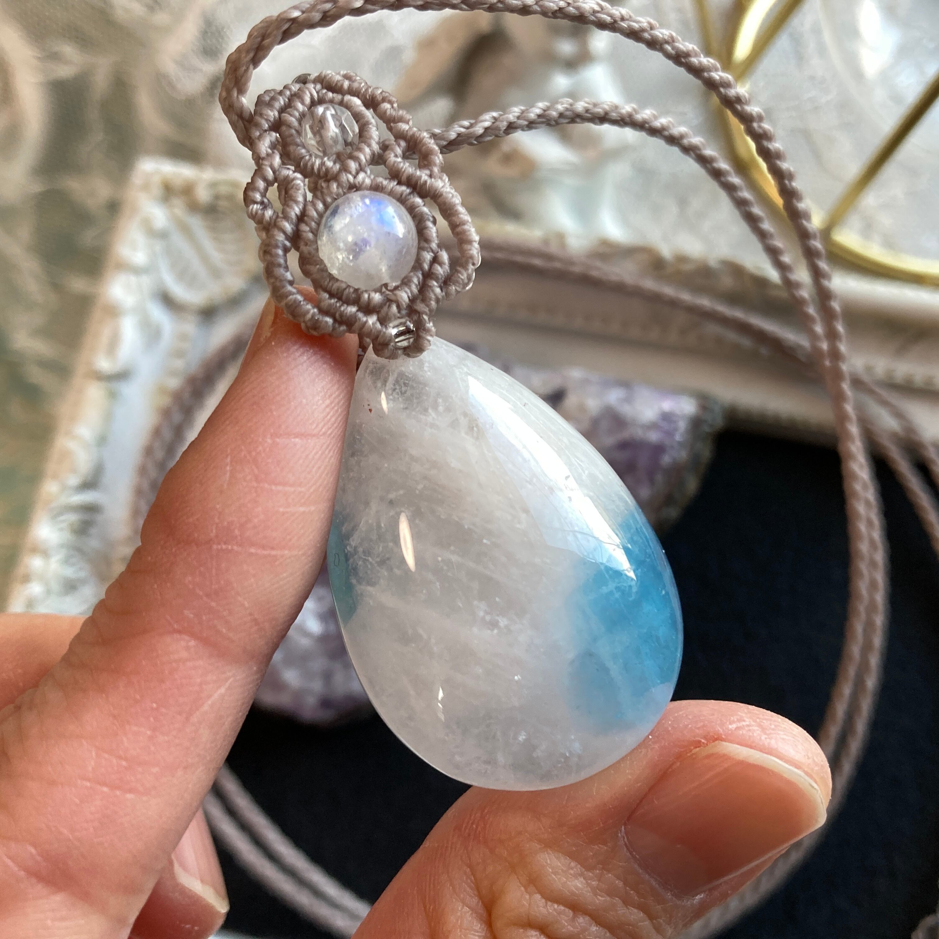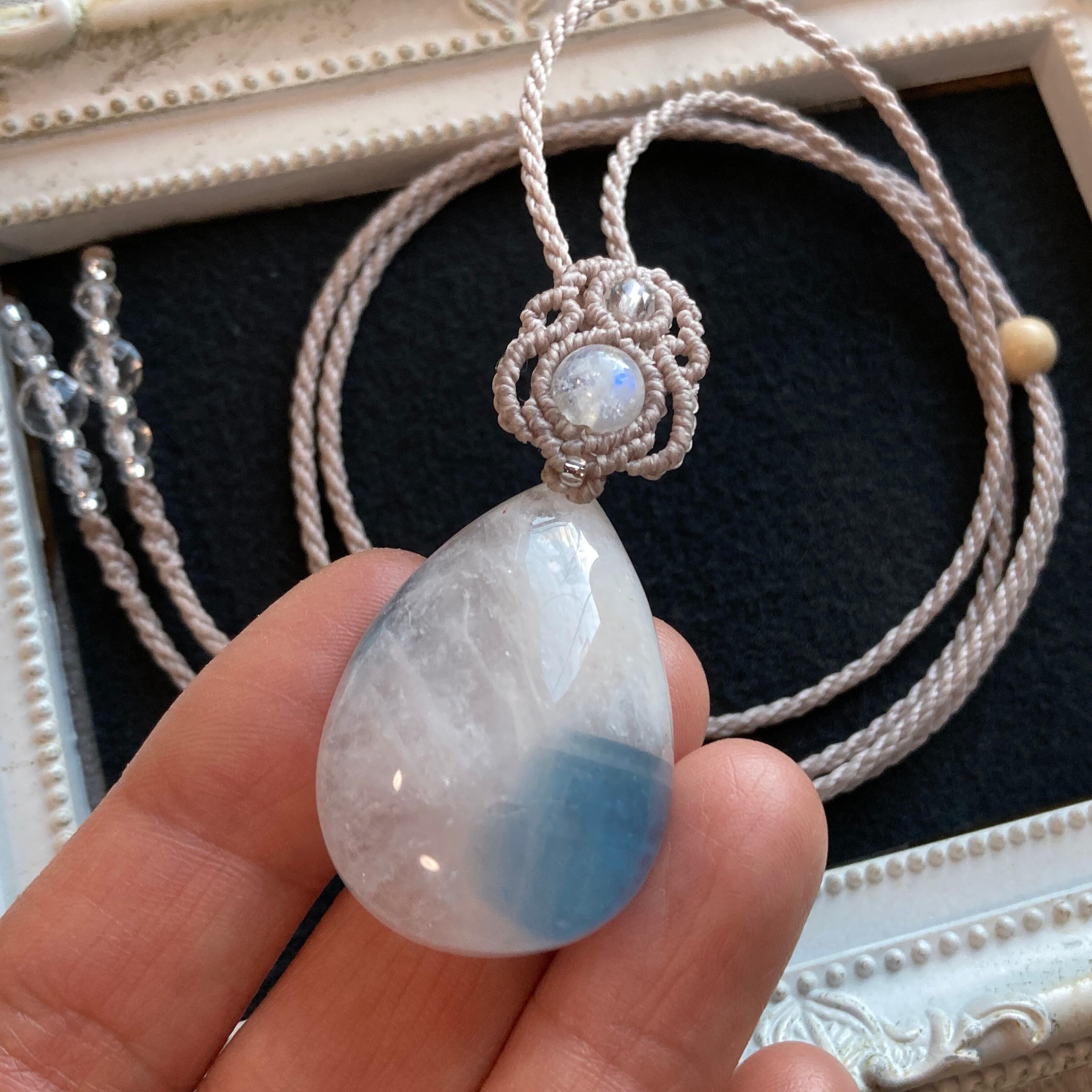 アクアマリンインクォーツ(シリカ母岩つきアクアマリン)ライトカラー⭐︎マクラメネックレス・マクラメペンダントネックレス