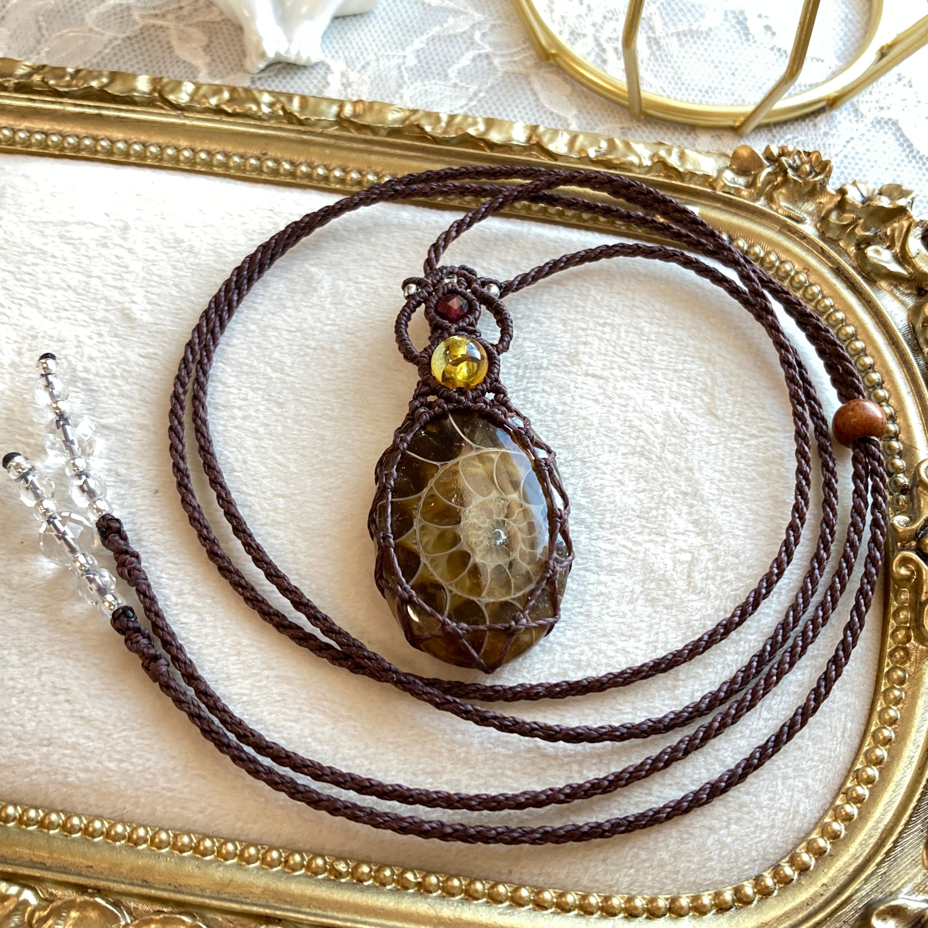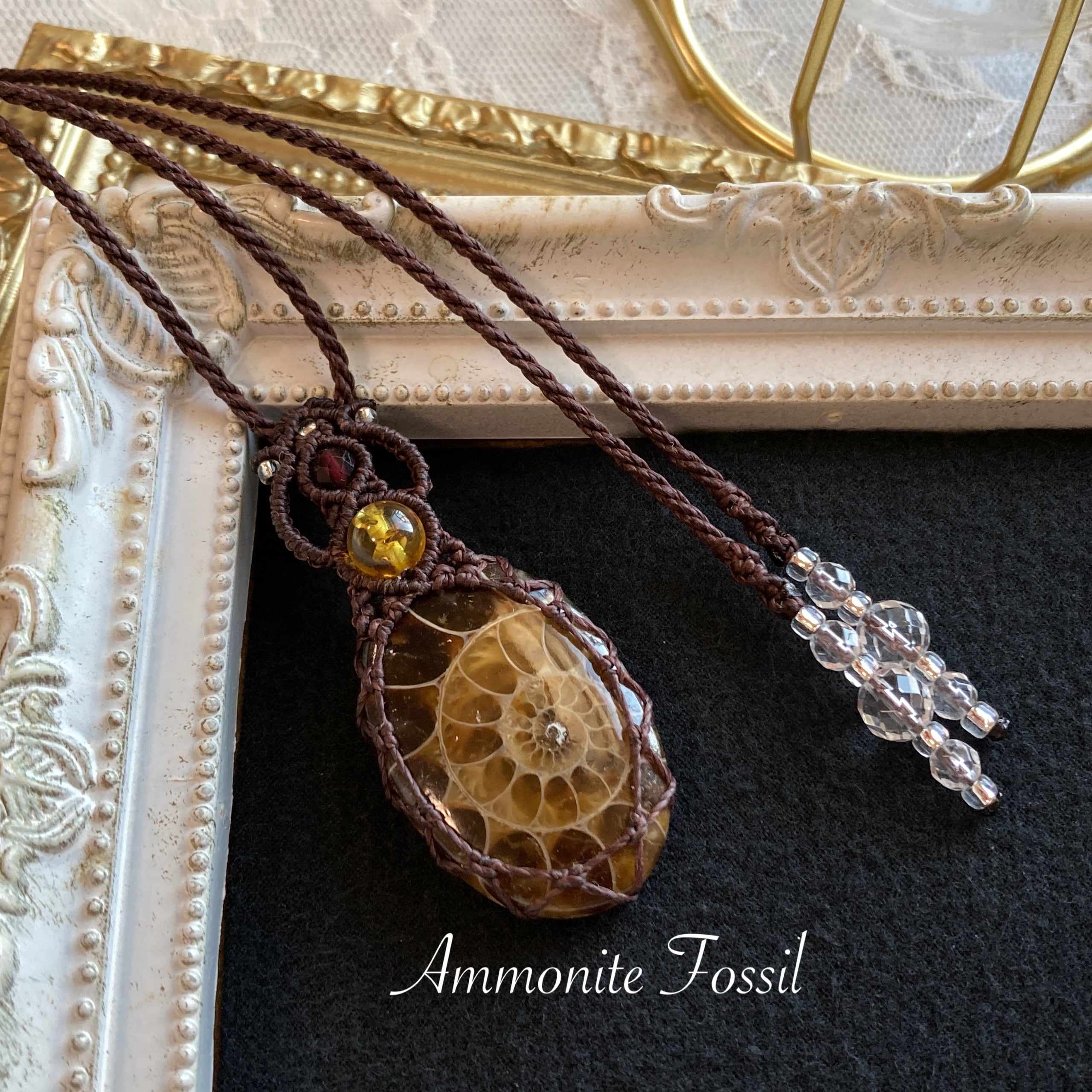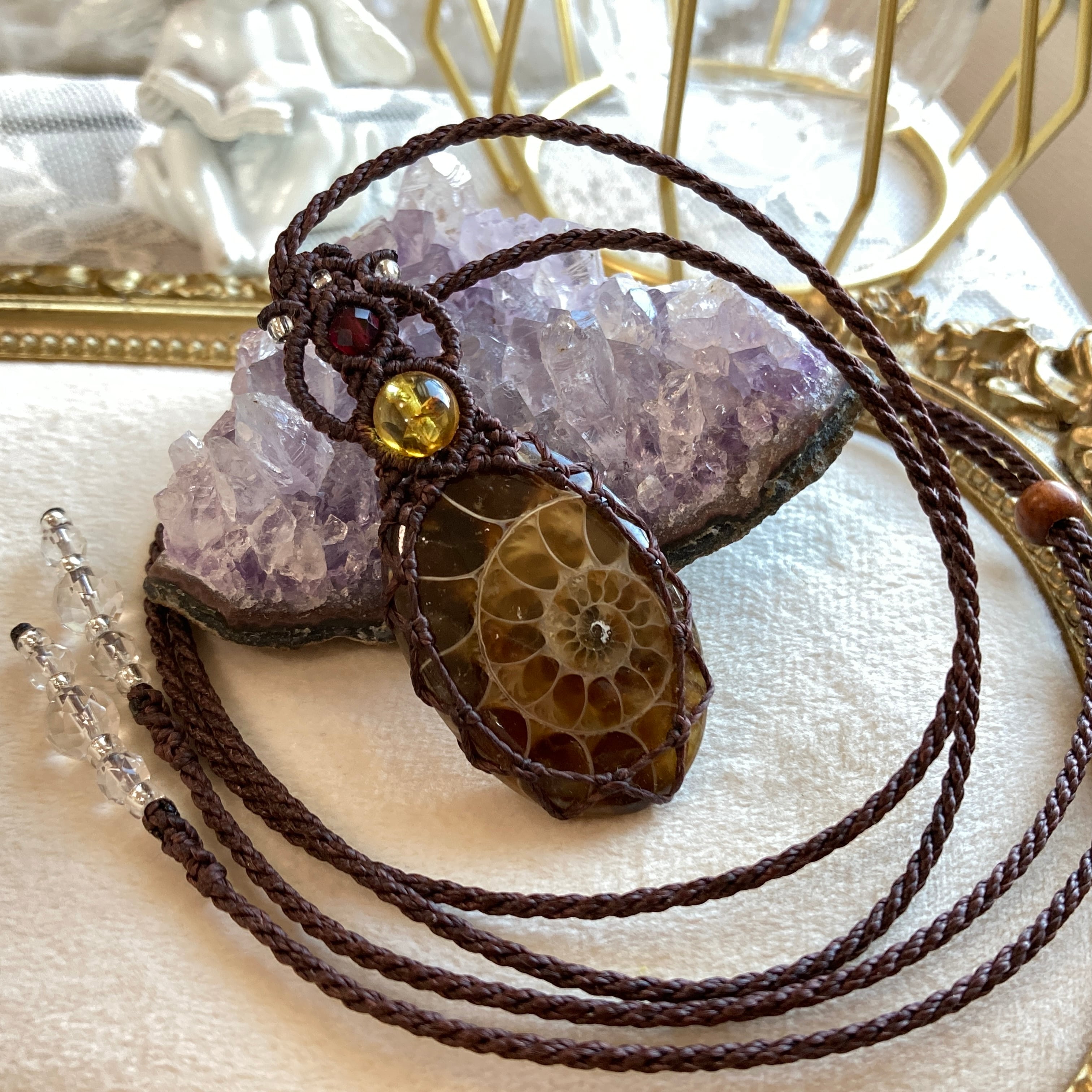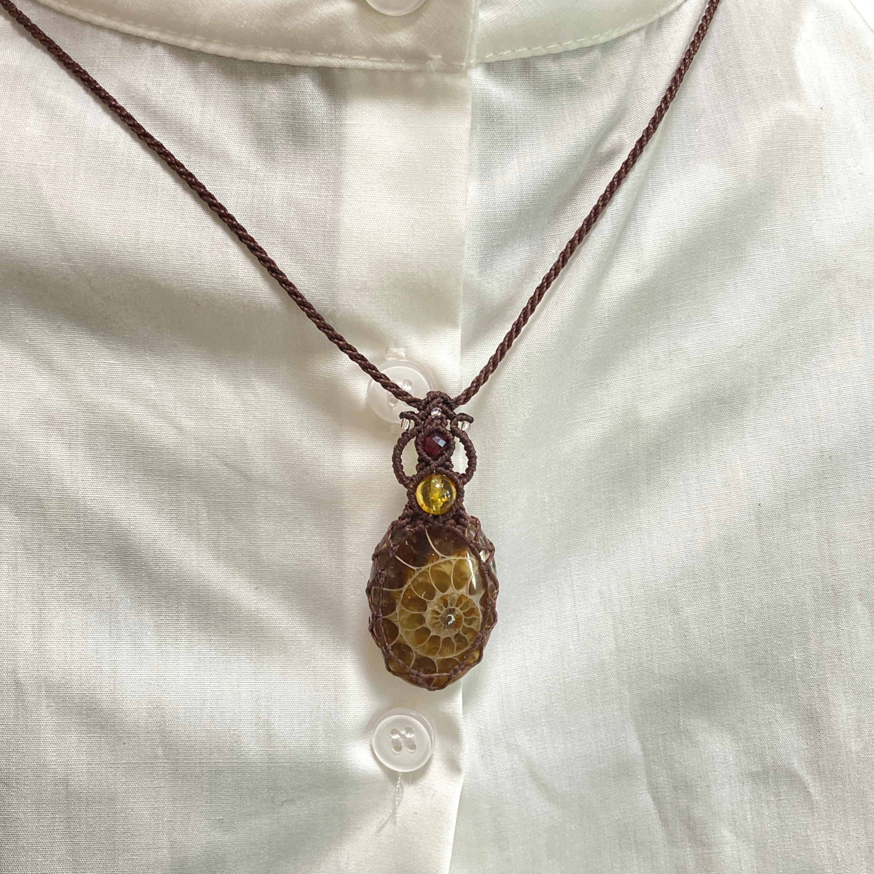 【アンモナイトマクラメネックレス】