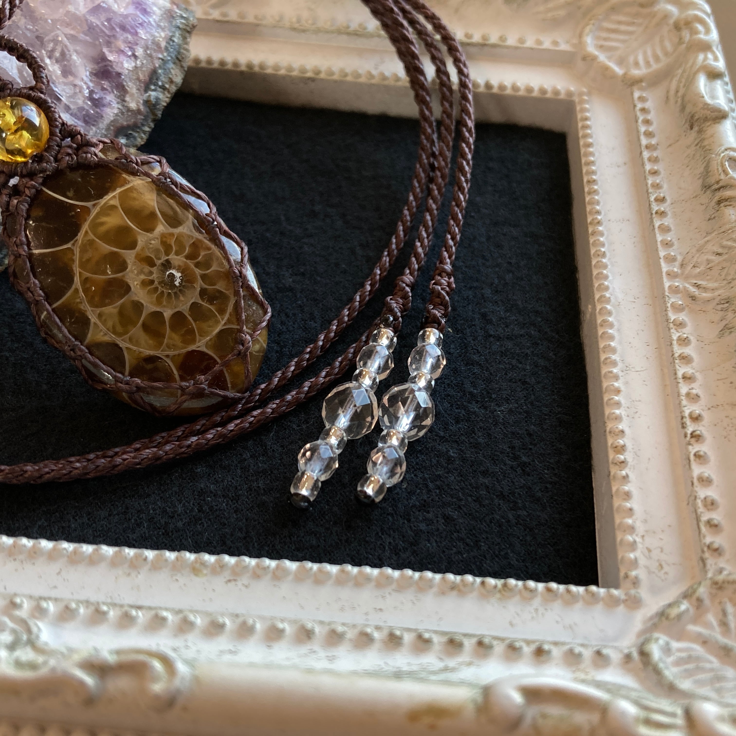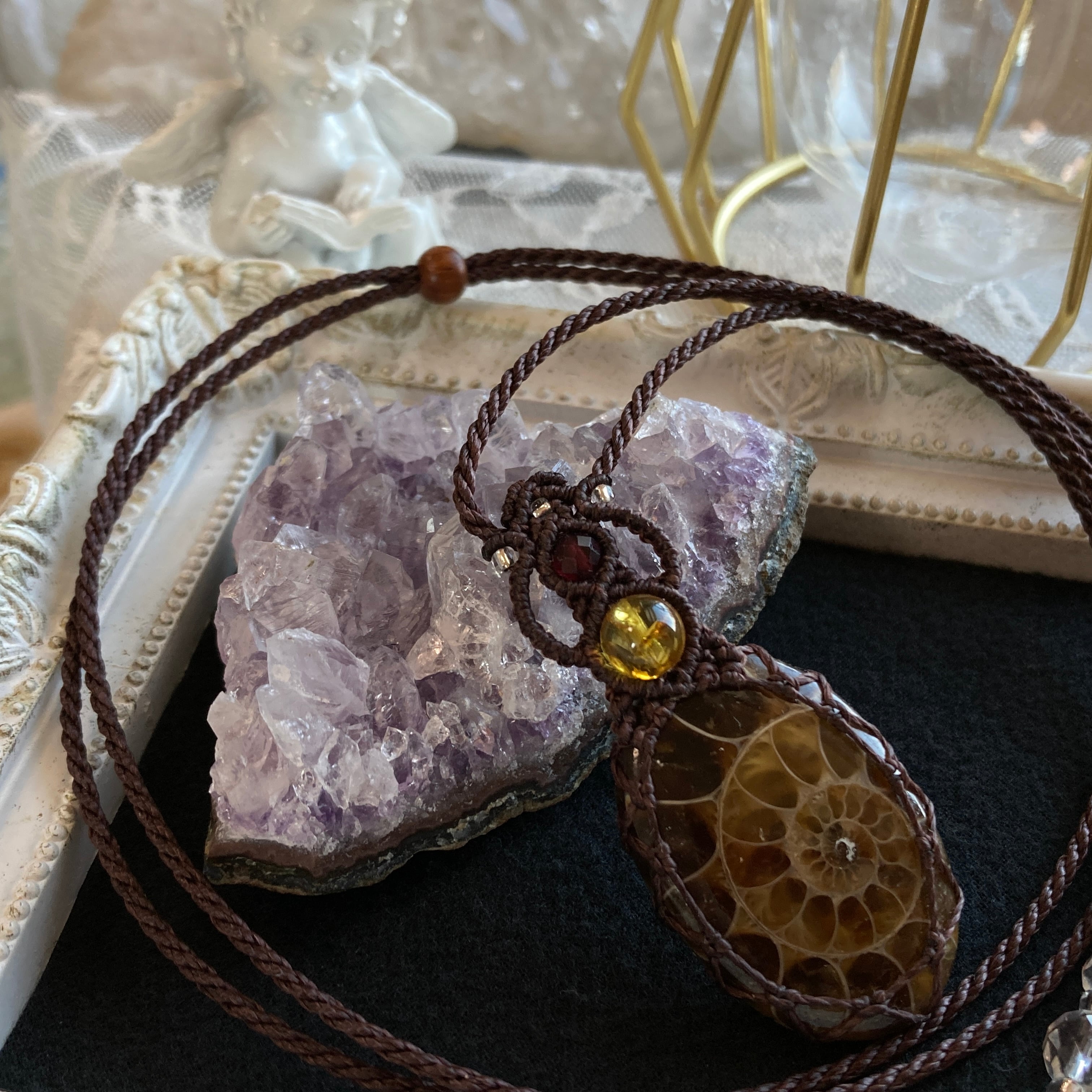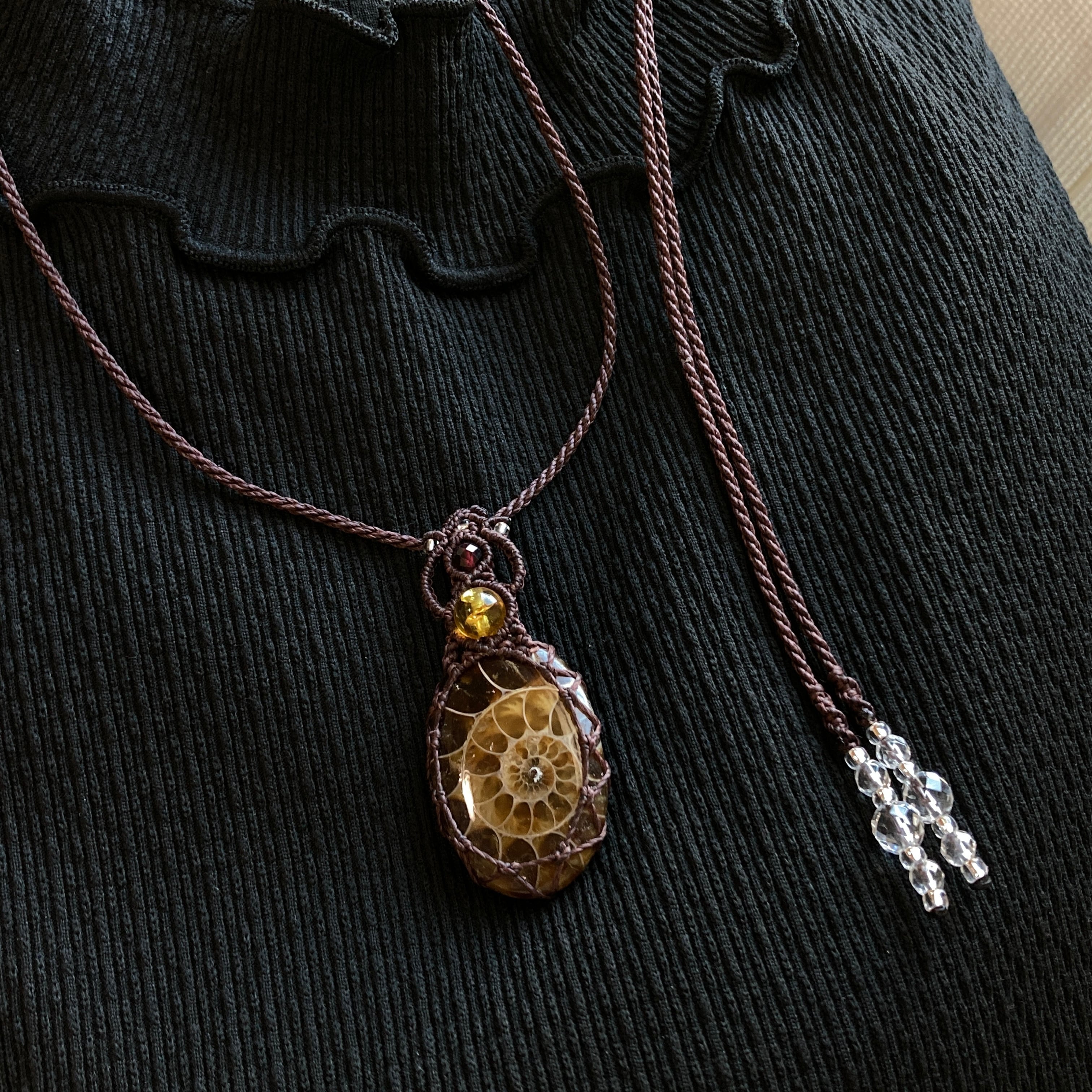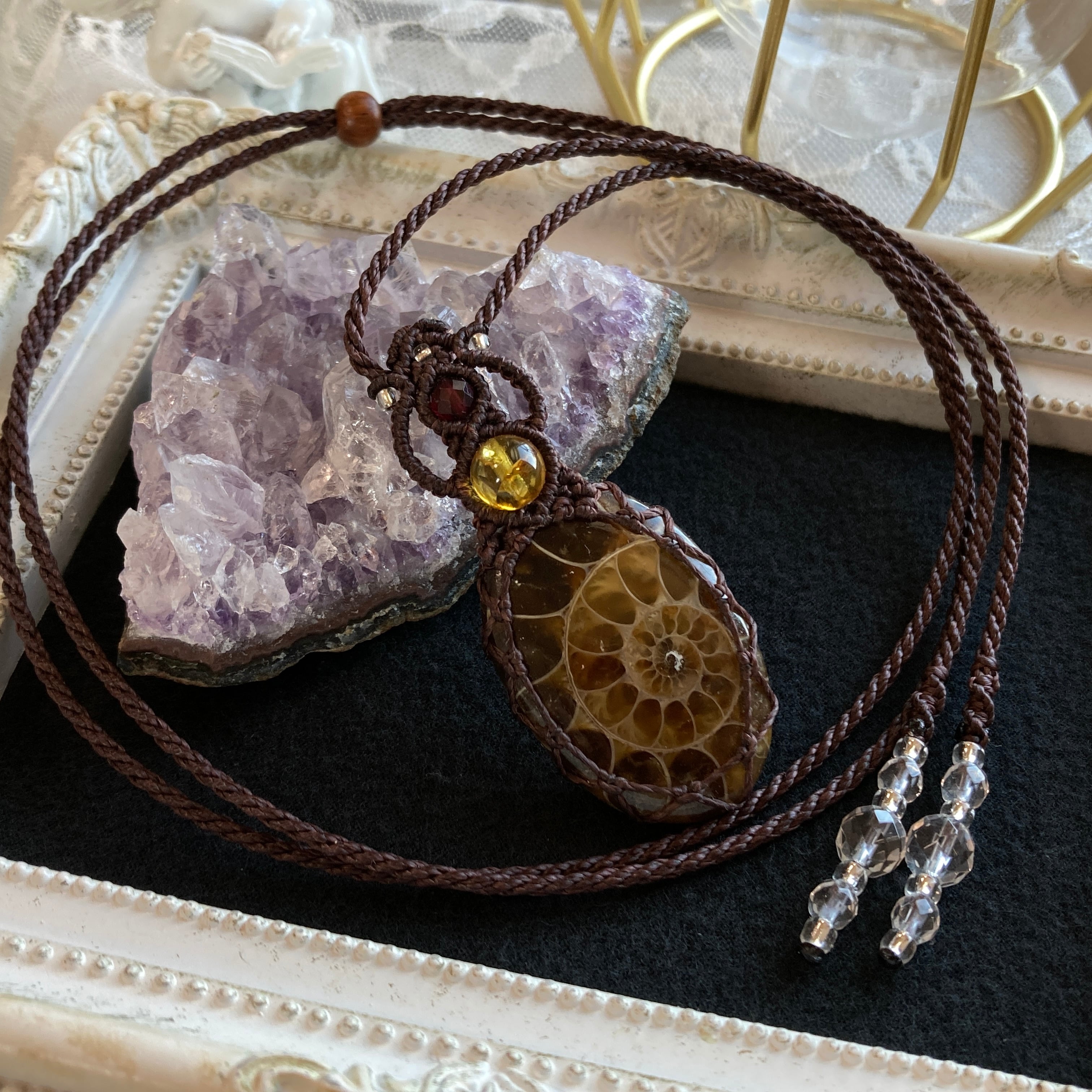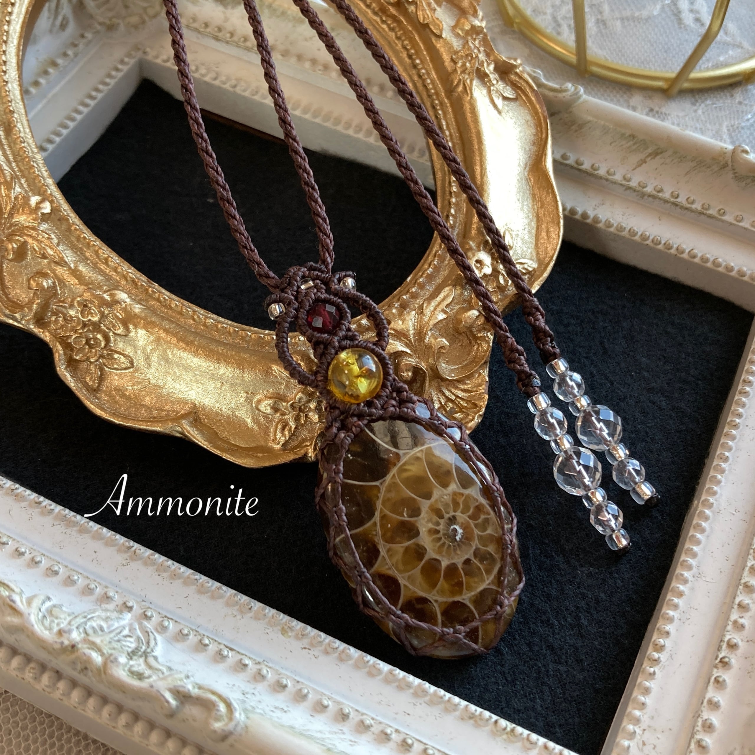 【アンモナイトマクラメネックレス】